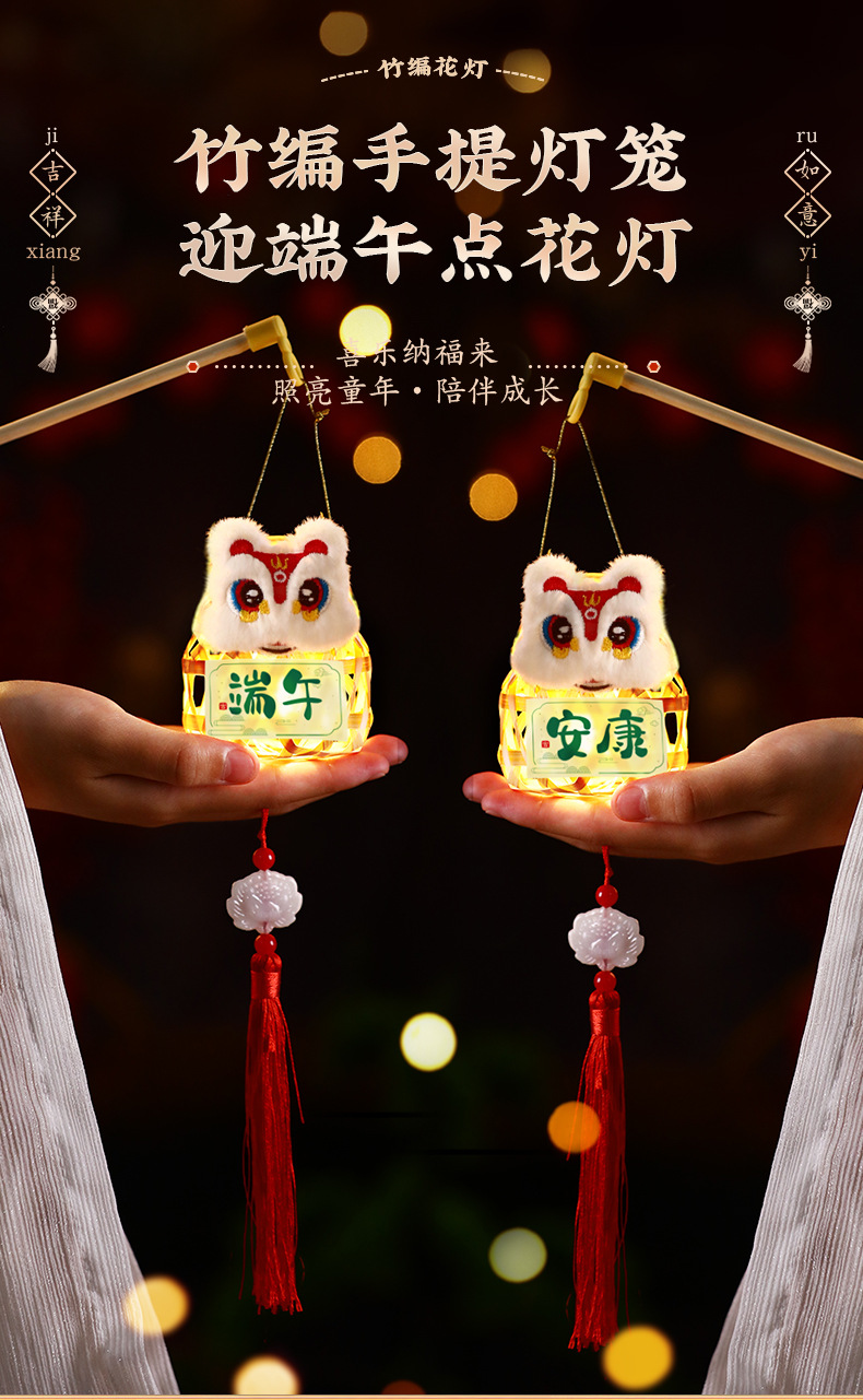 古风手提竹编灯笼端午节发光手工diy成品迷你材料包儿童花灯汉服