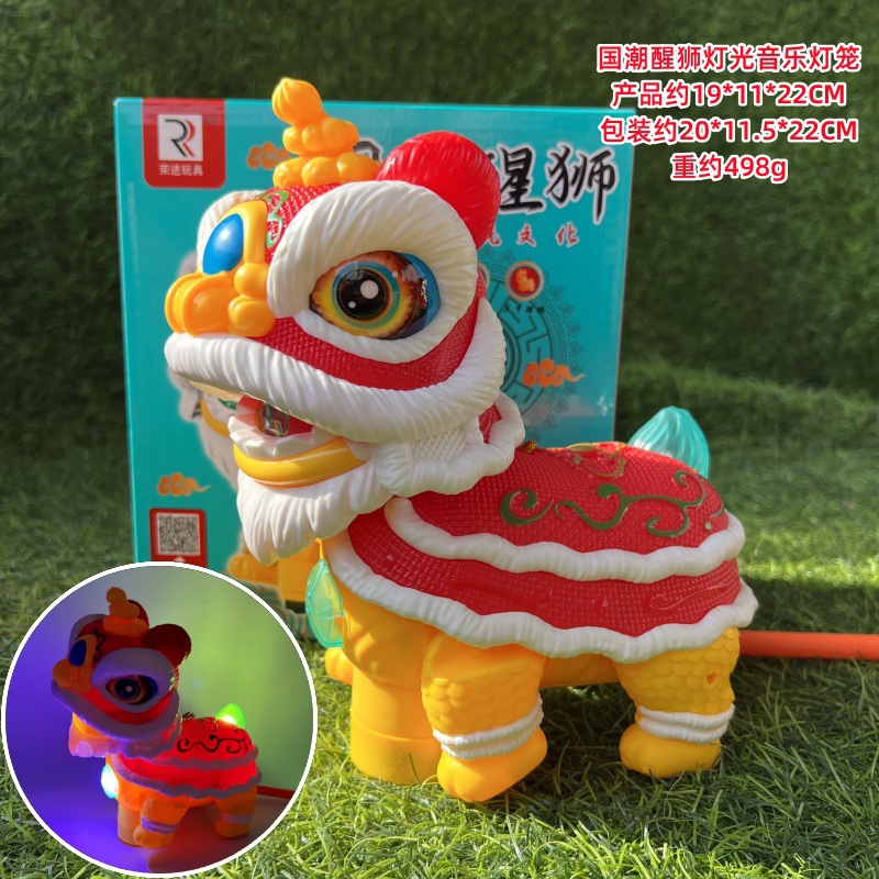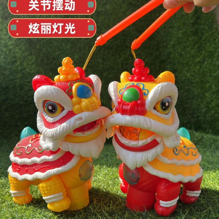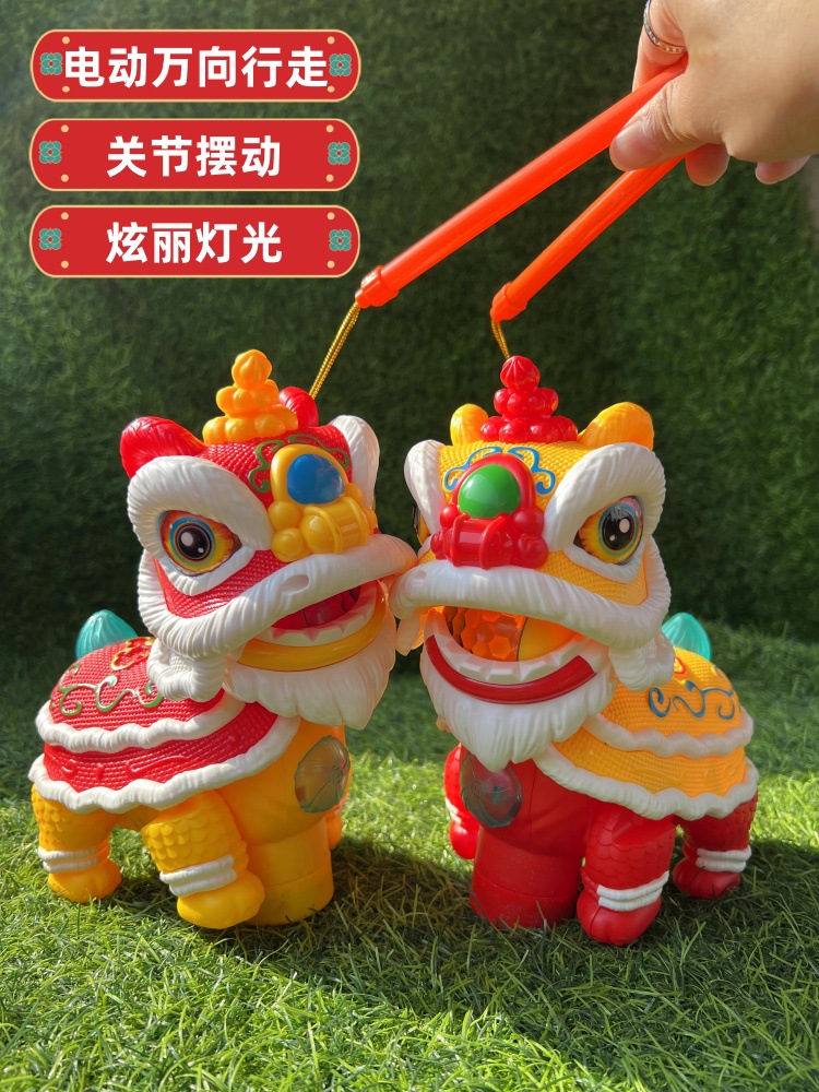 新年元宵节儿童喜庆国潮醒狮炫彩花灯宝宝发光音乐电动舞狮灯笼