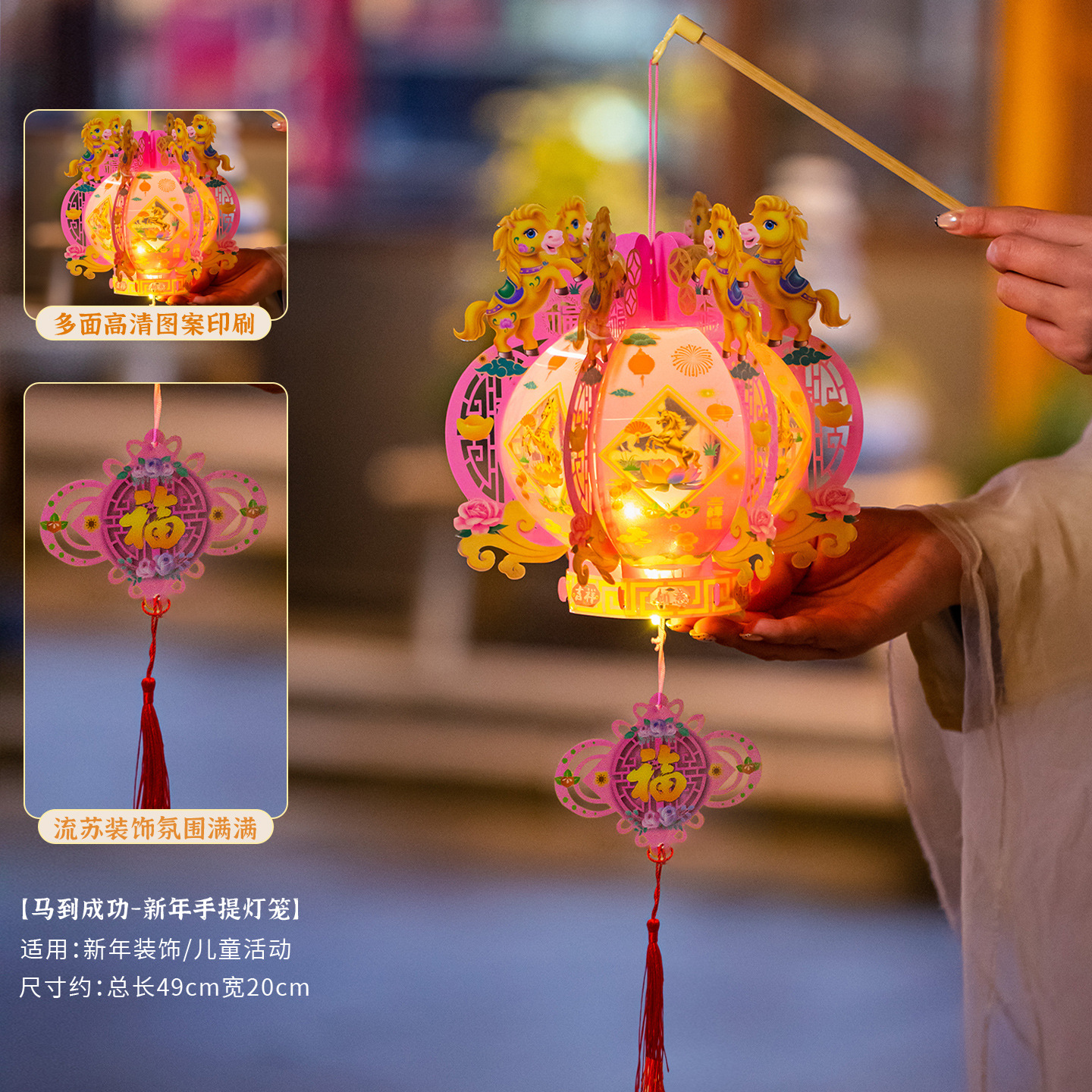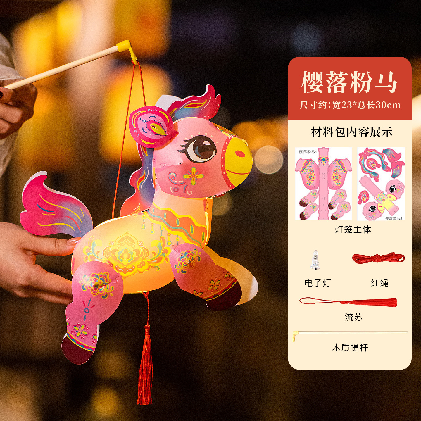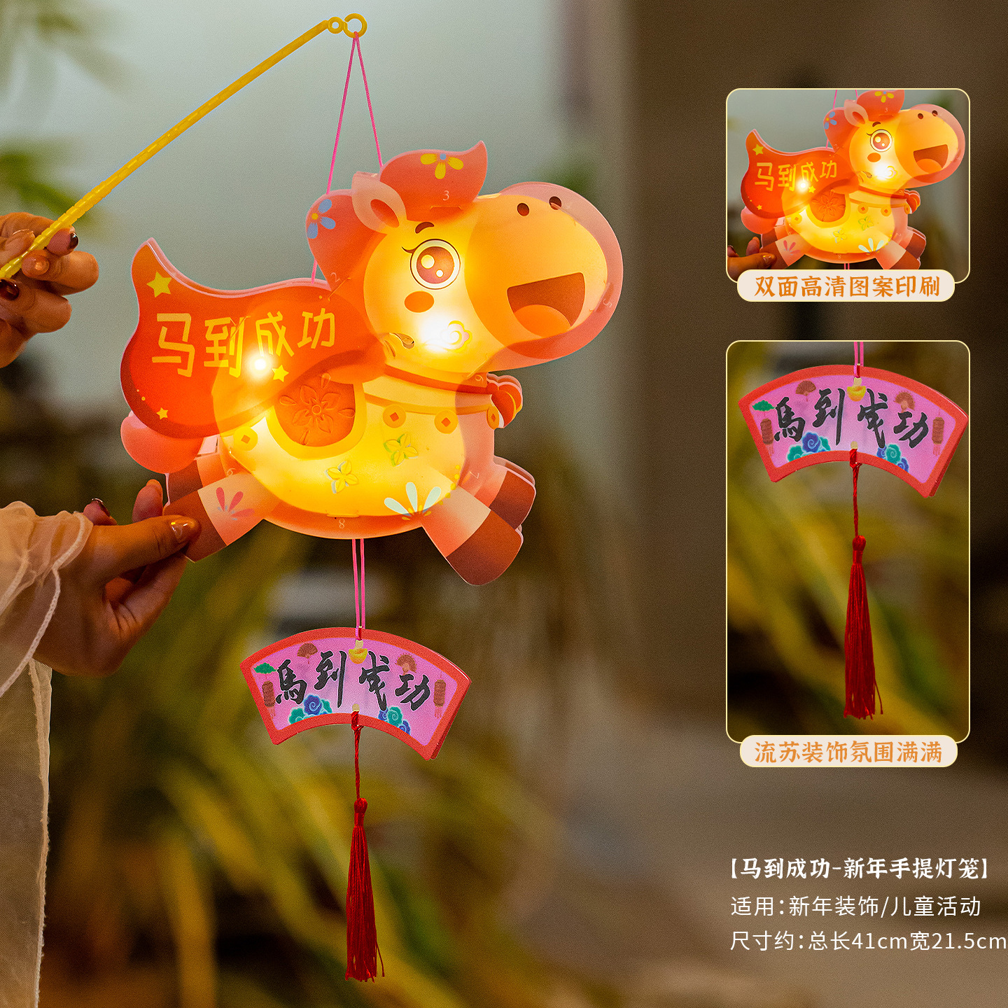 2026马年新年灯笼儿童手工diy幼儿园手提发光元宵花灯新款小马灯