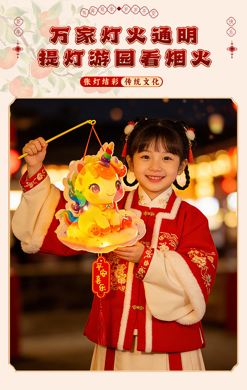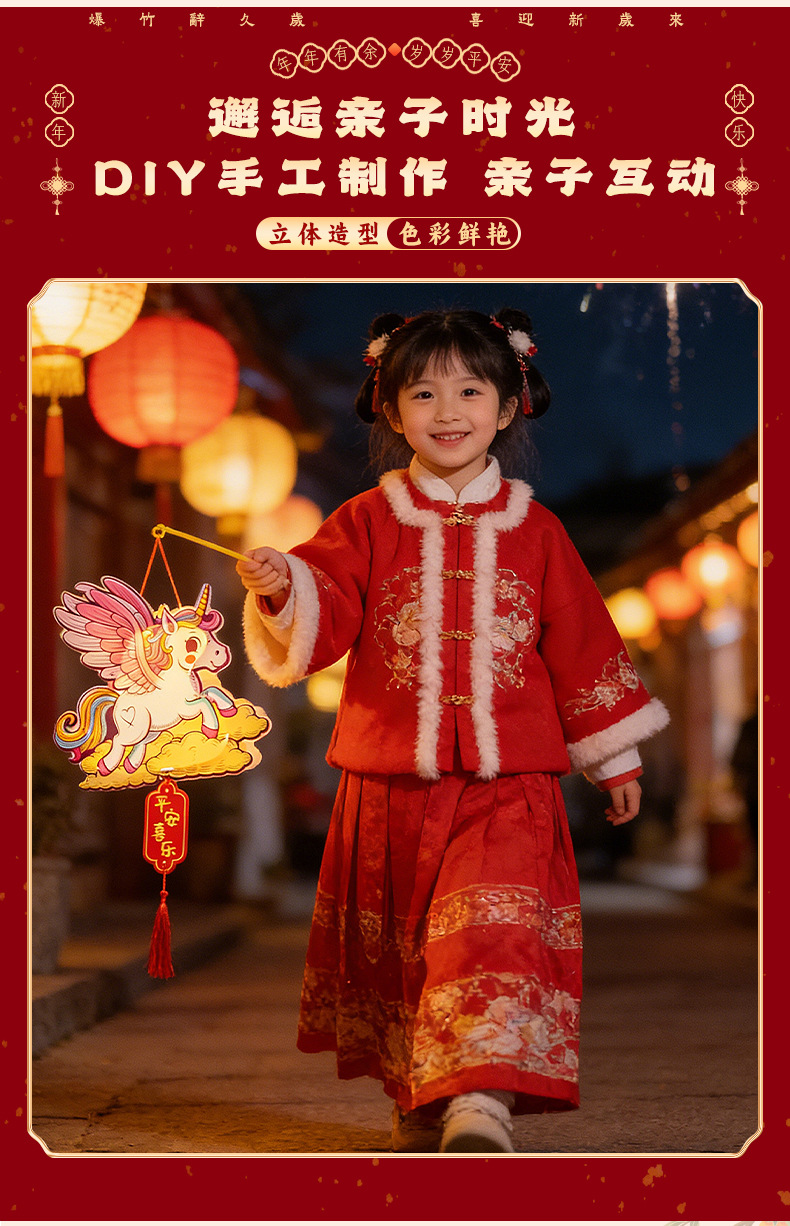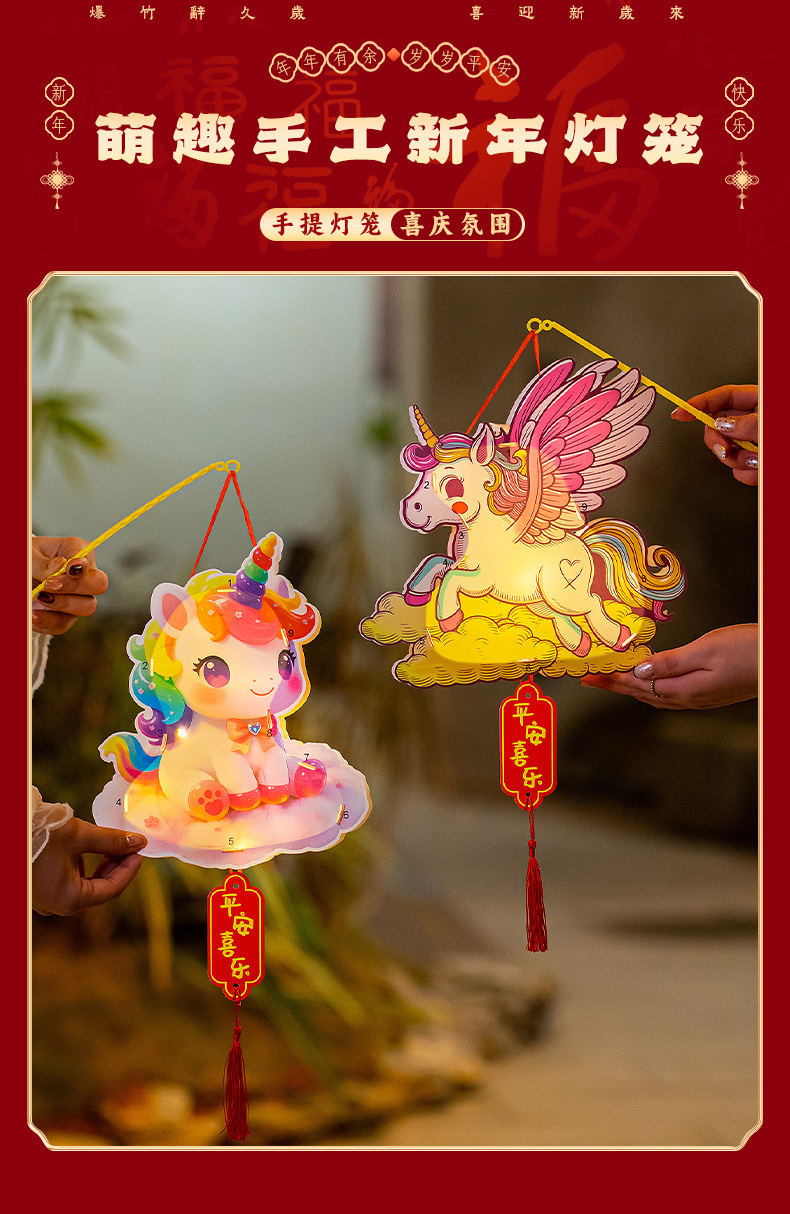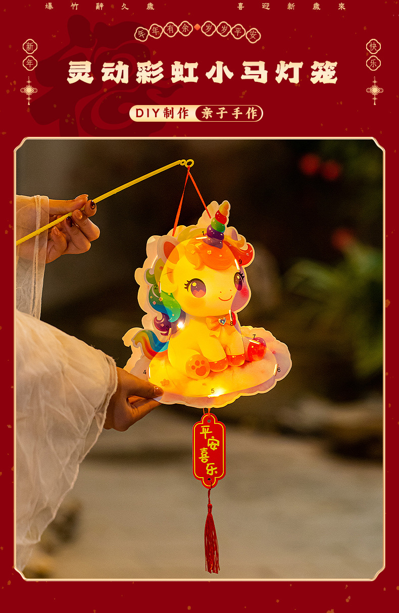 2026马年新年灯笼儿童手工diy幼儿园手提发光元宵花灯新款小马灯