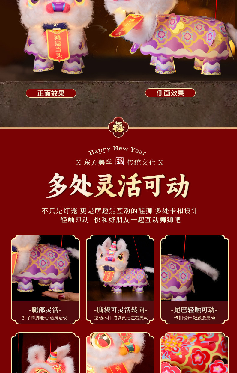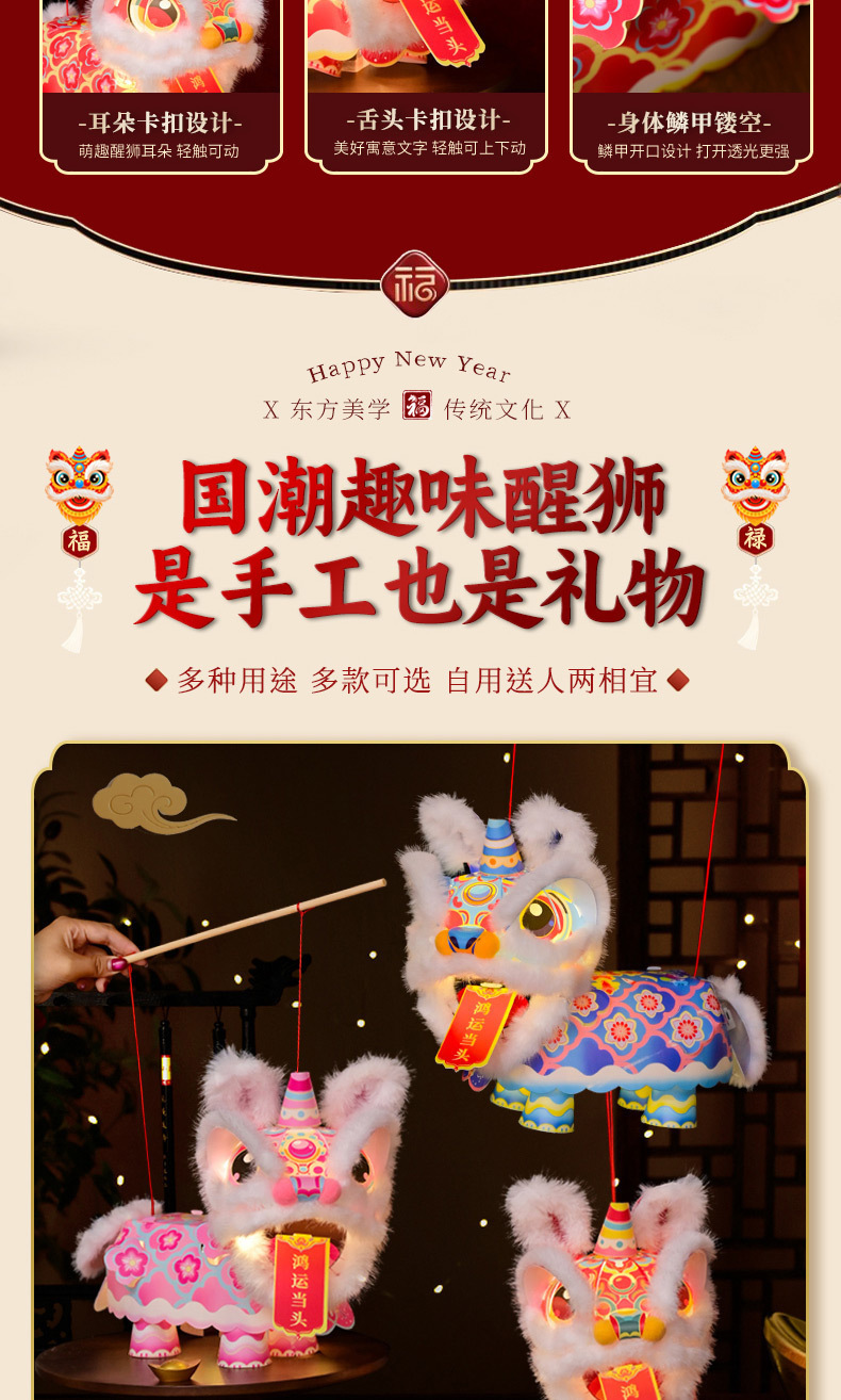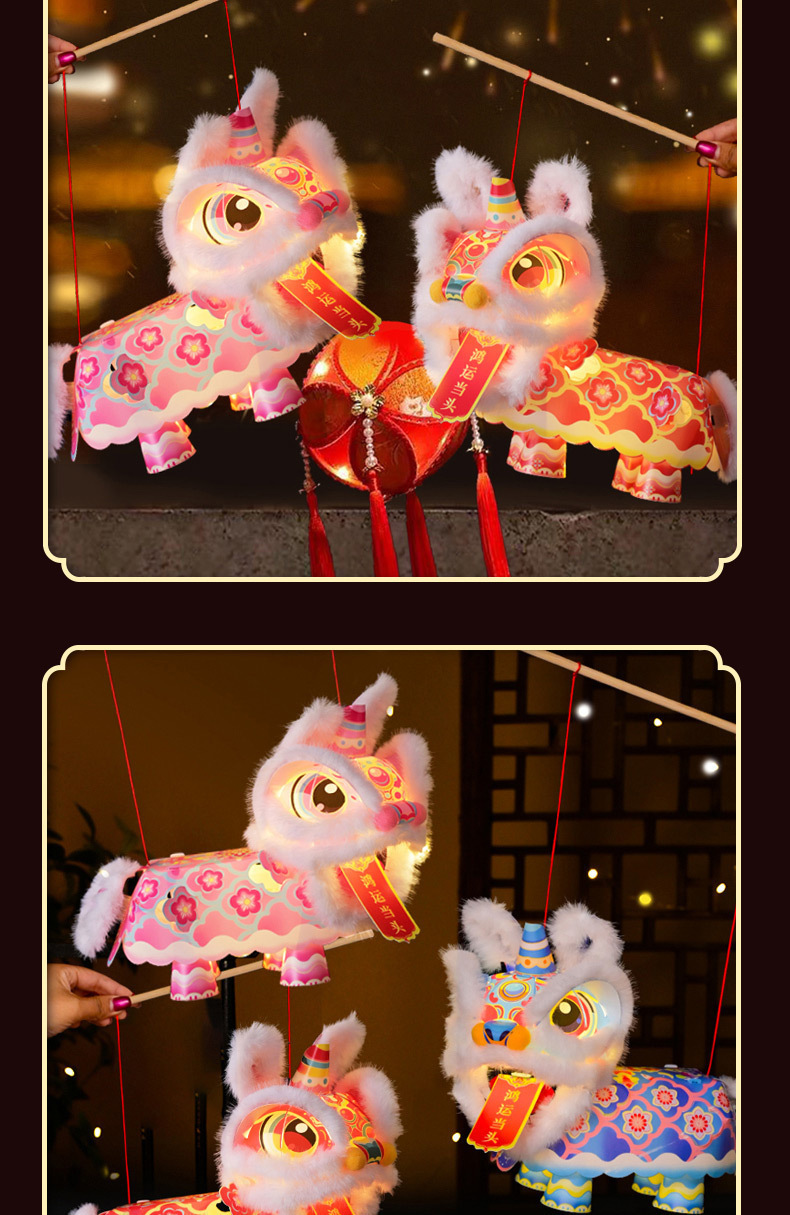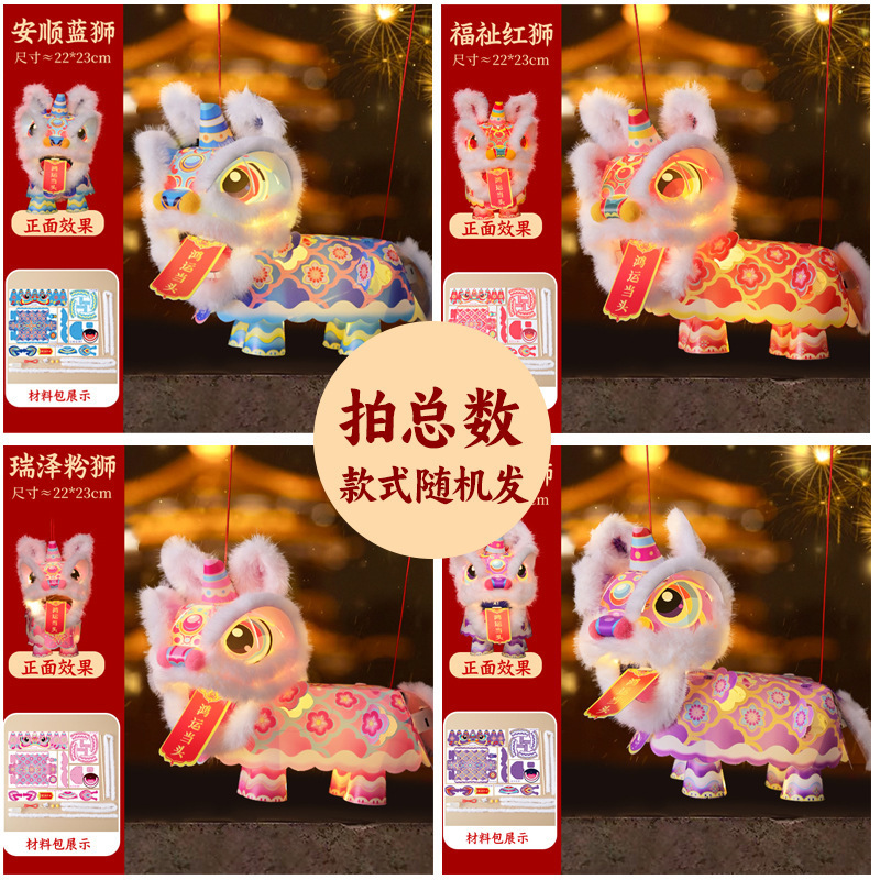 马年新年元宵节醒狮灯笼儿童手工diy手提发光舞狮子花灯过年摆摊
