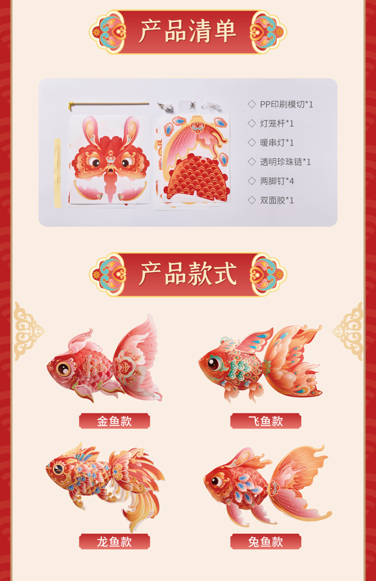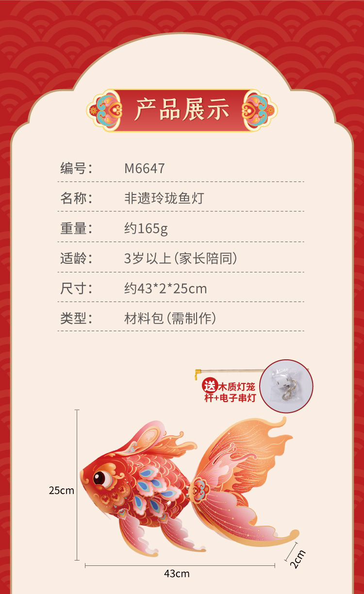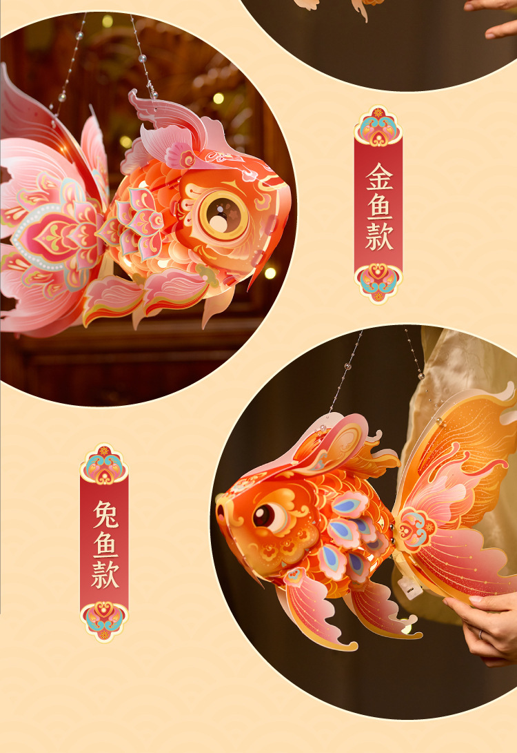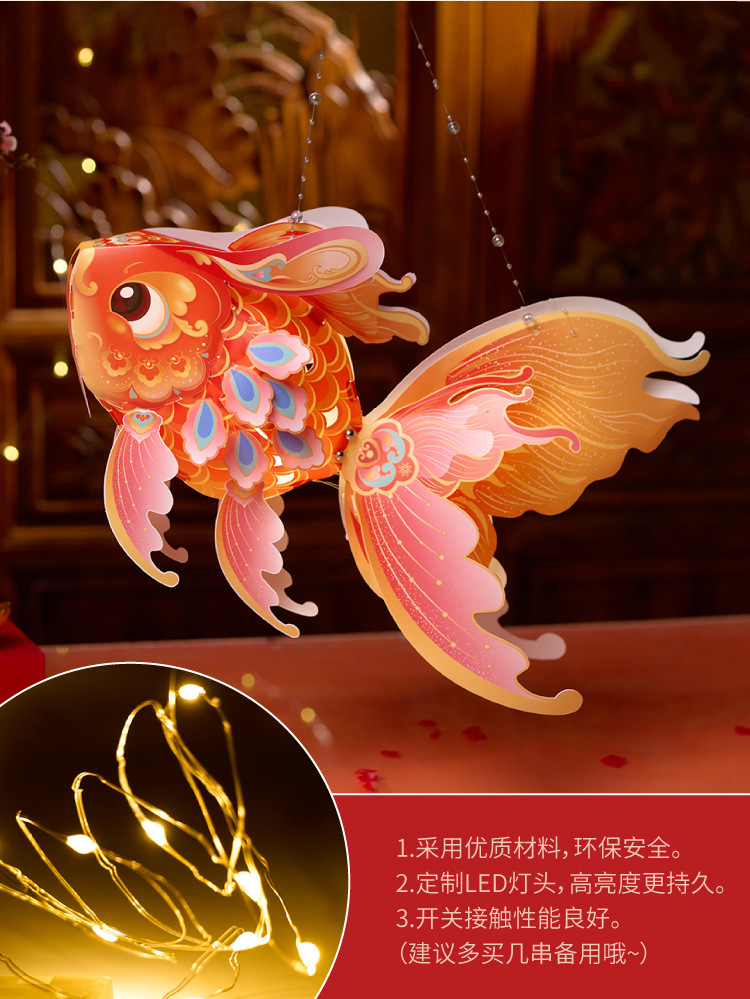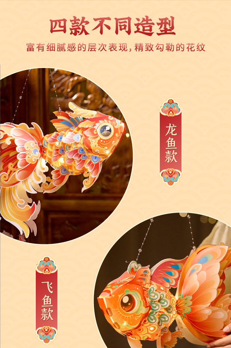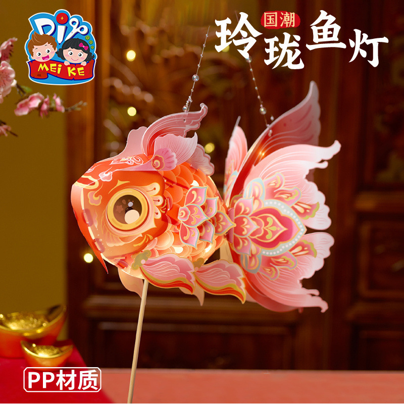 马年新春玲珑鱼灯手工 diy儿童动手制作材料包元宵手提发光灯笼