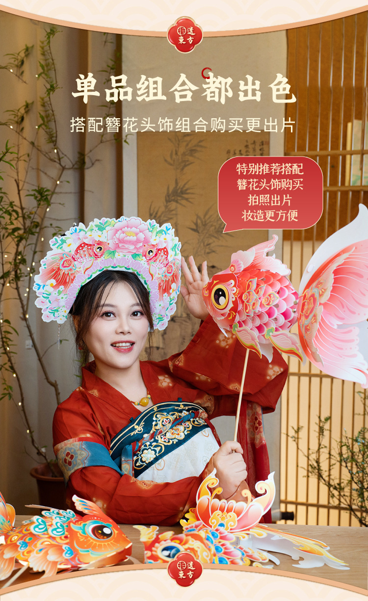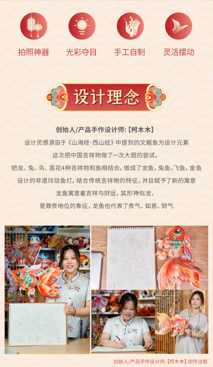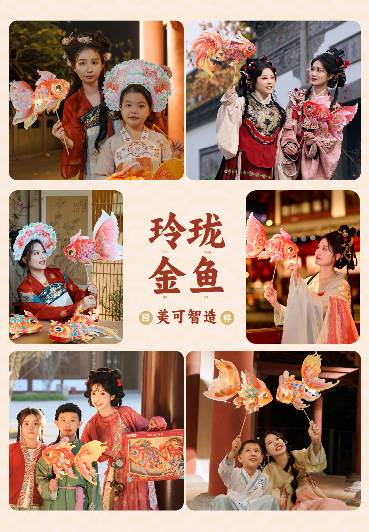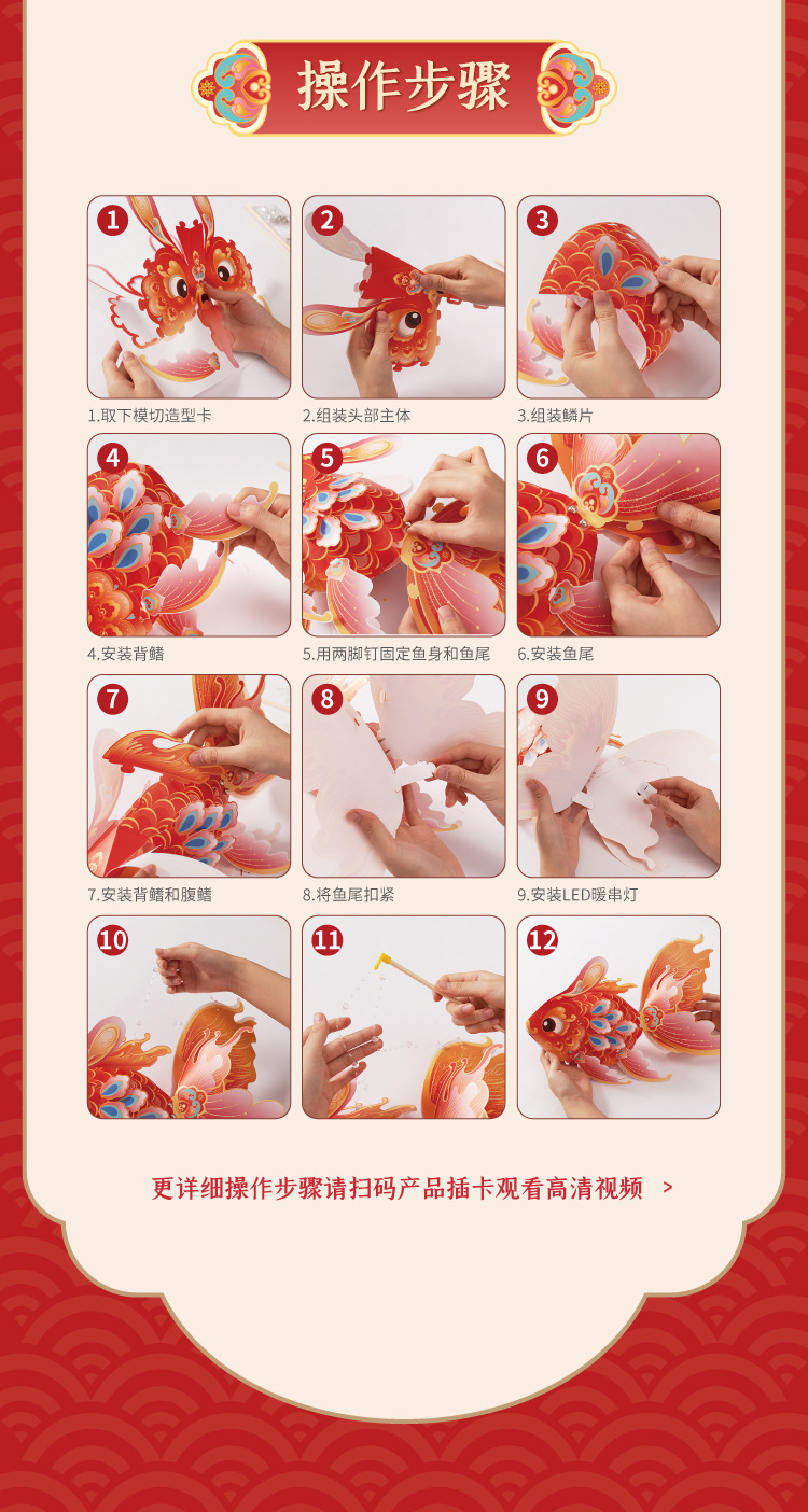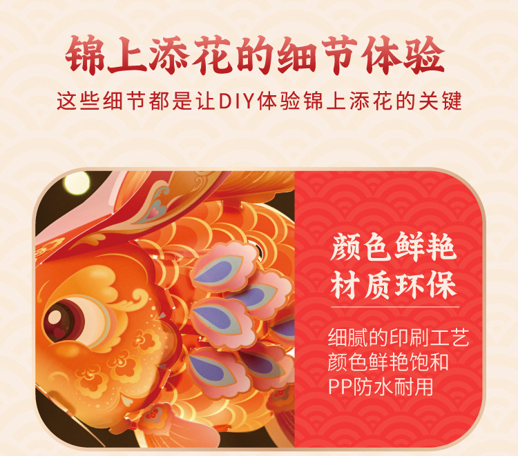 马年新春玲珑鱼灯手工 diy儿童动手制作材料包元宵手提发光灯笼