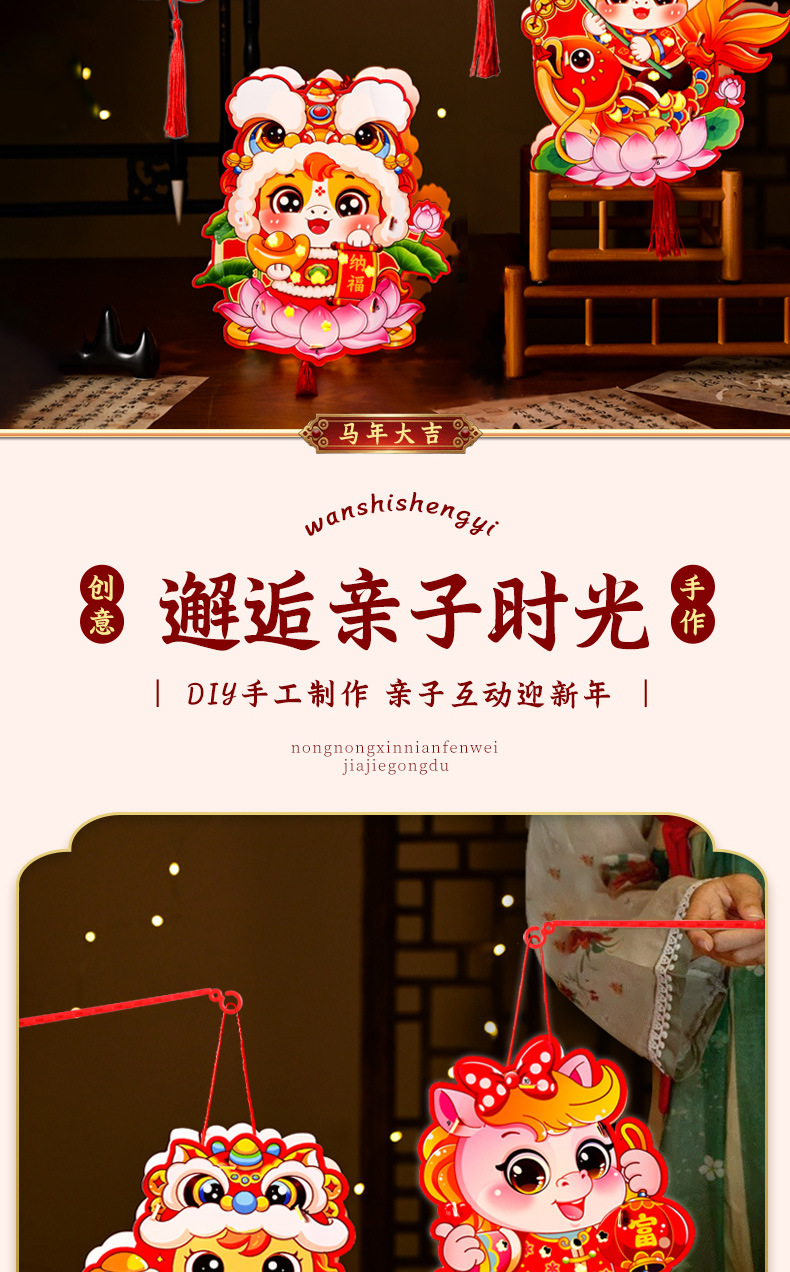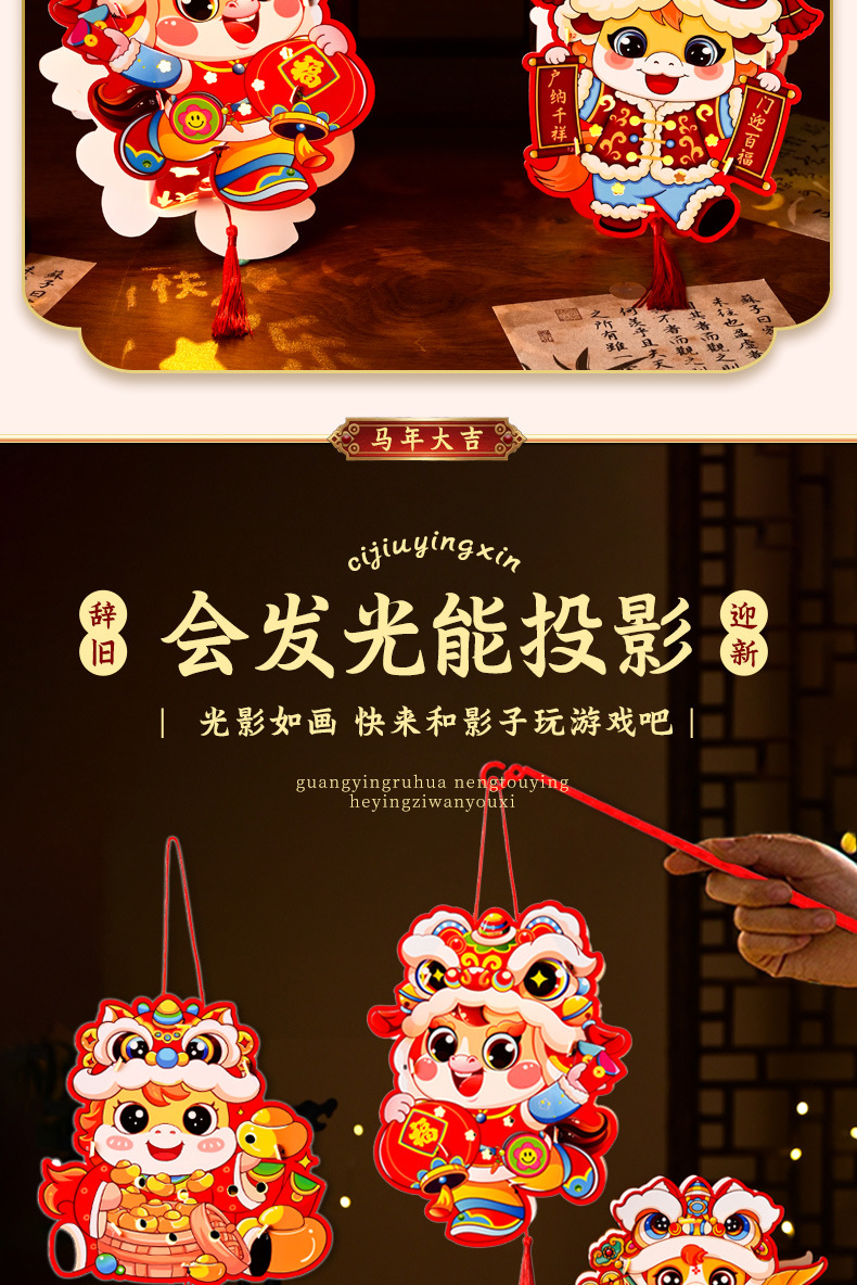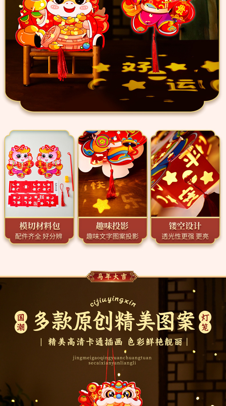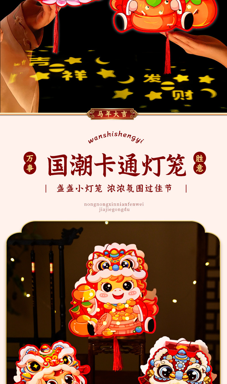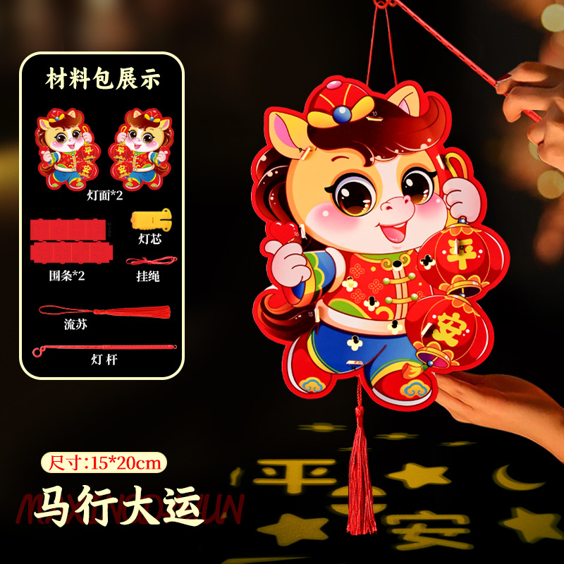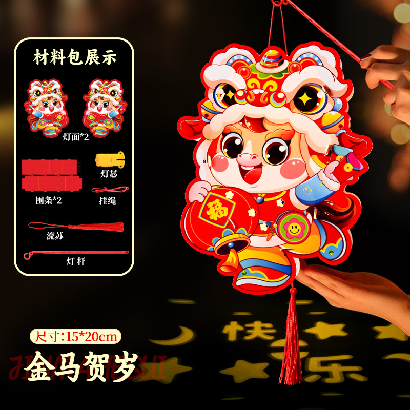 新年手工diy灯笼2026马年儿童手提幼儿园投影花灯过年摆摊小商品