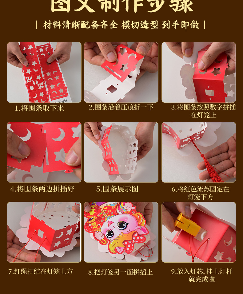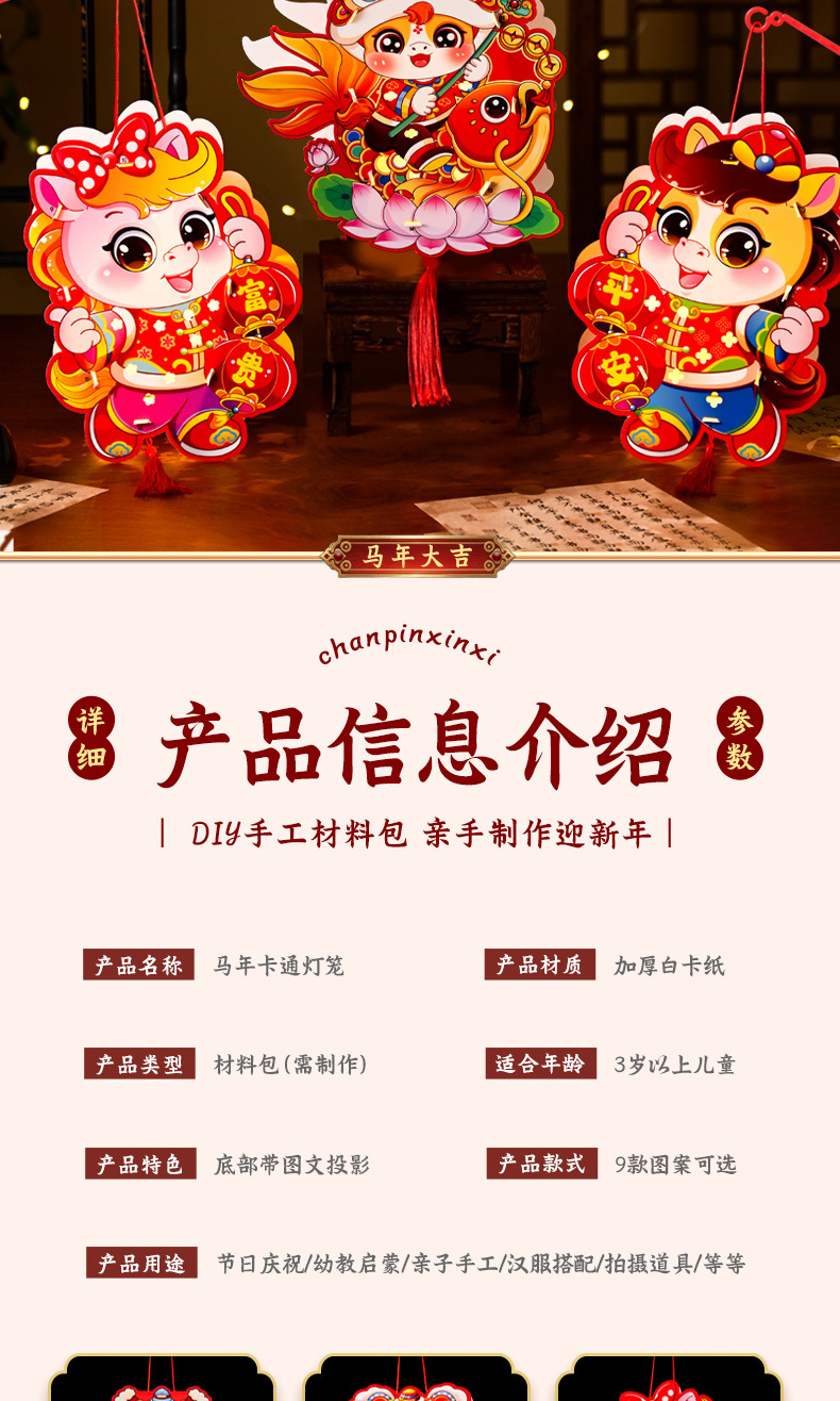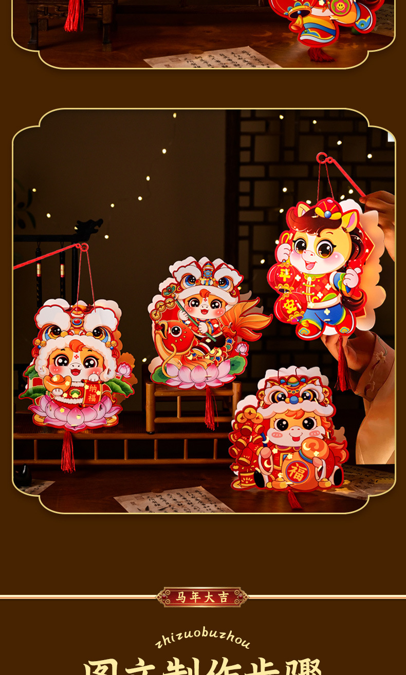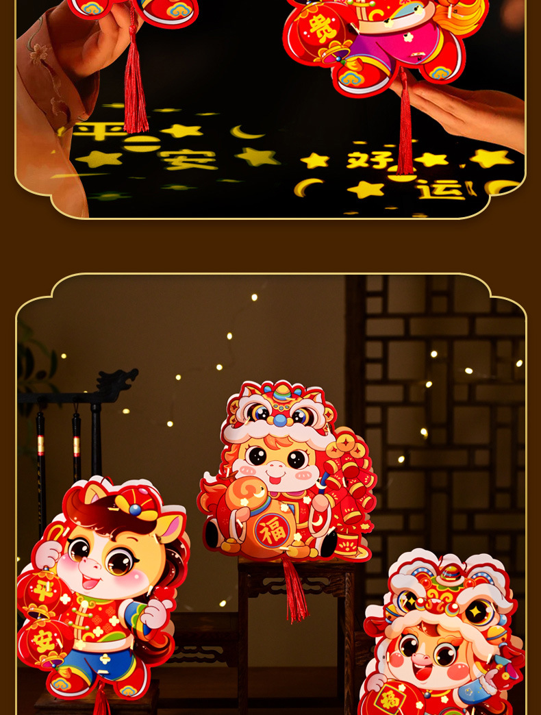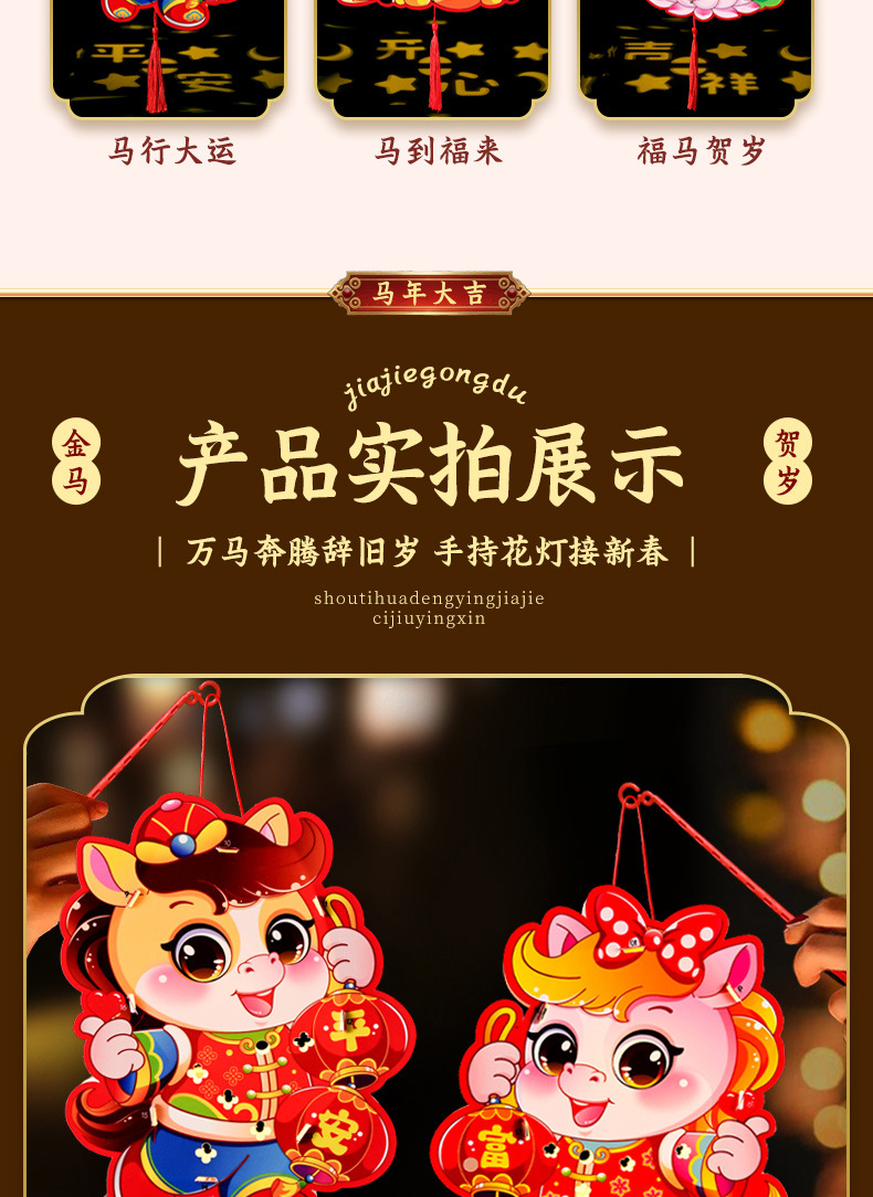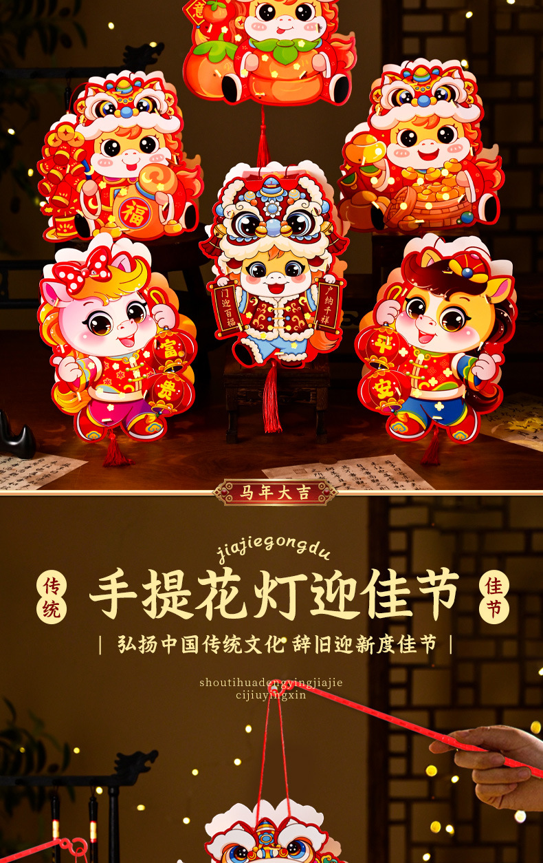 新年手工diy灯笼2026马年儿童手提幼儿园投影花灯过年摆摊小商品