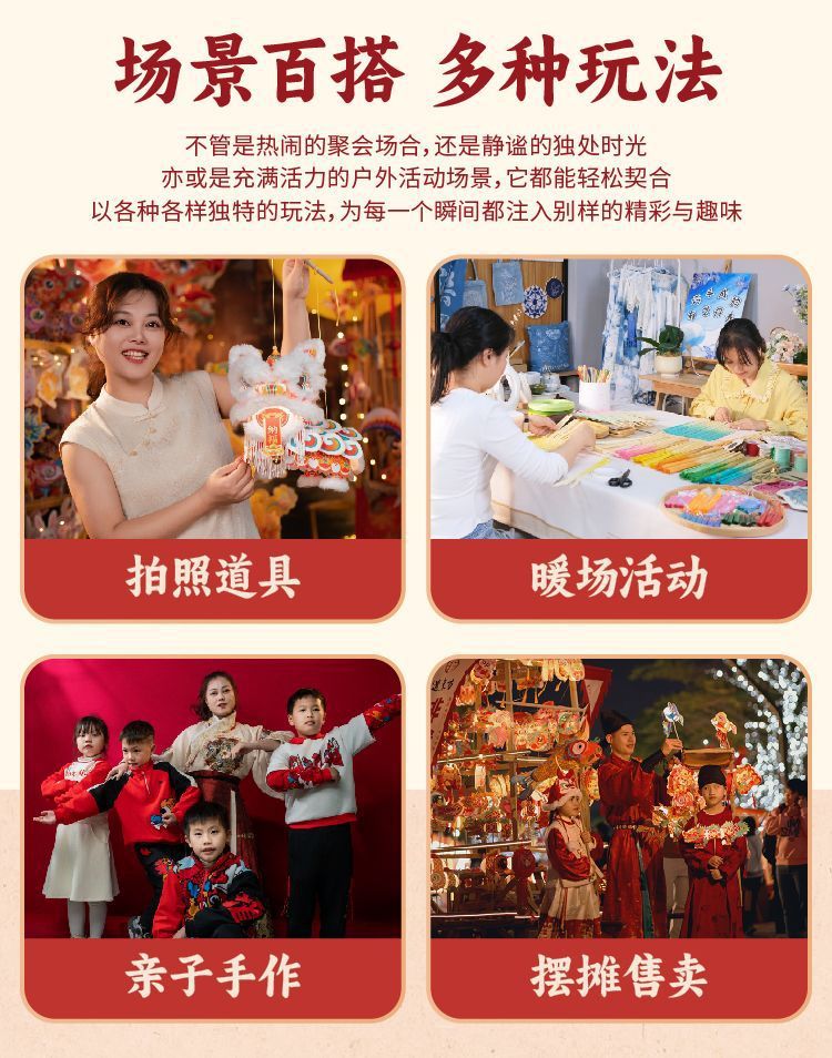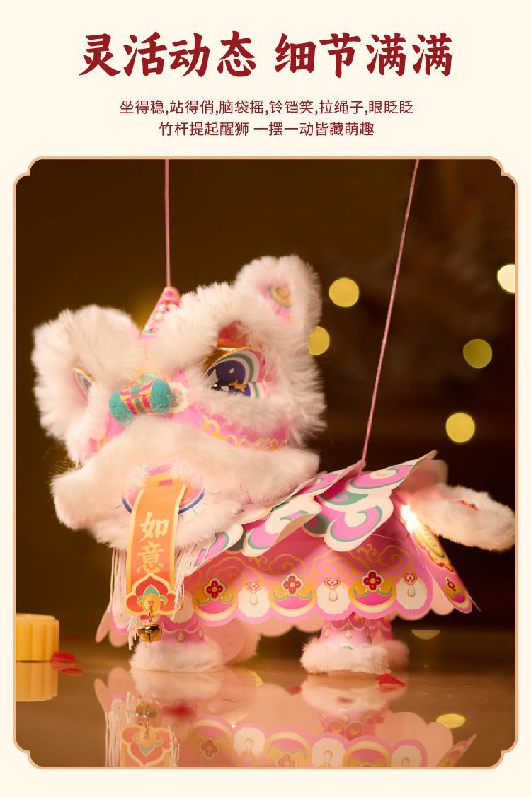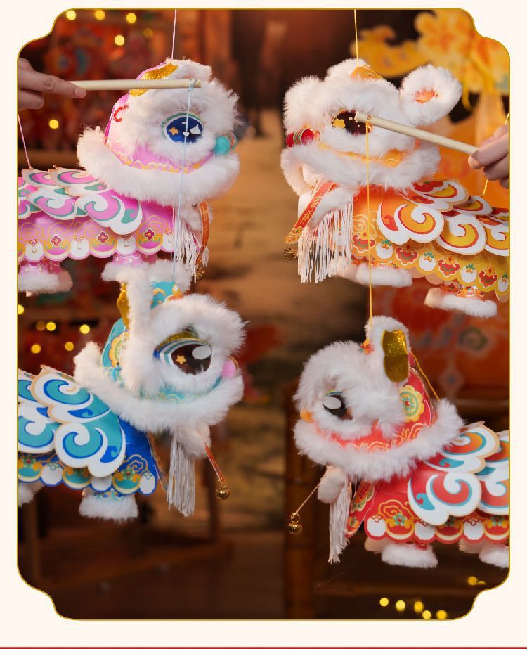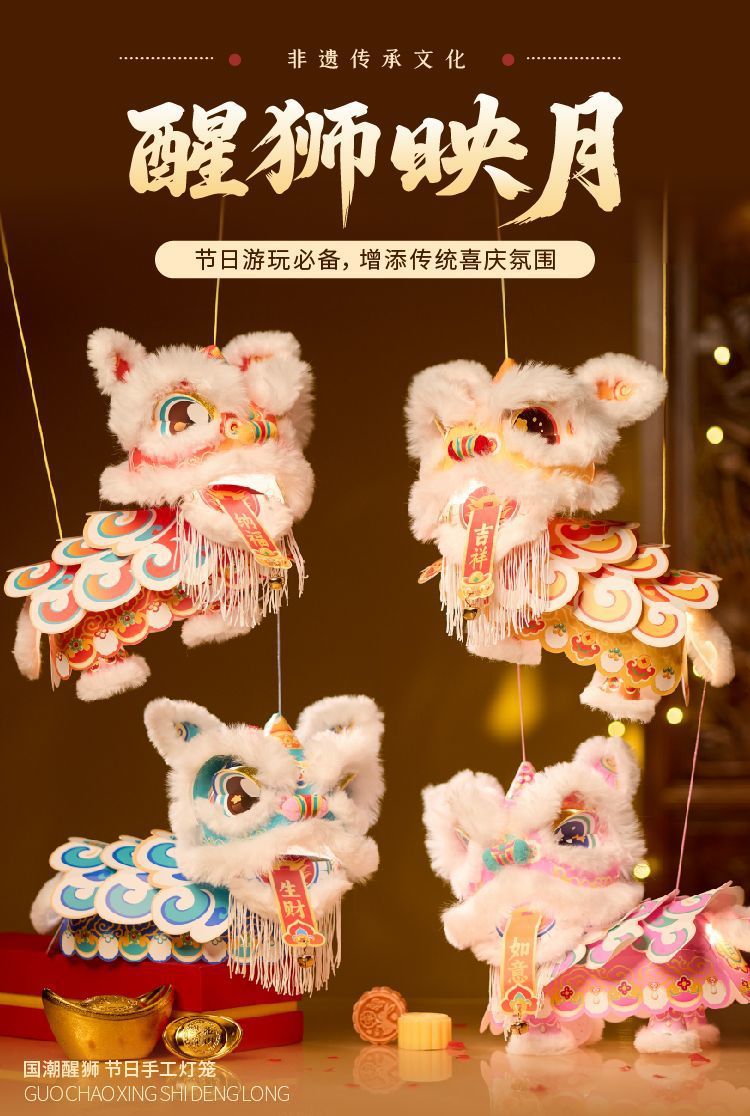 2025新款醒狮灯笼手工diy儿童手提发光花灯团建暖场活动礼
