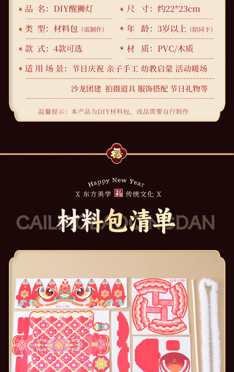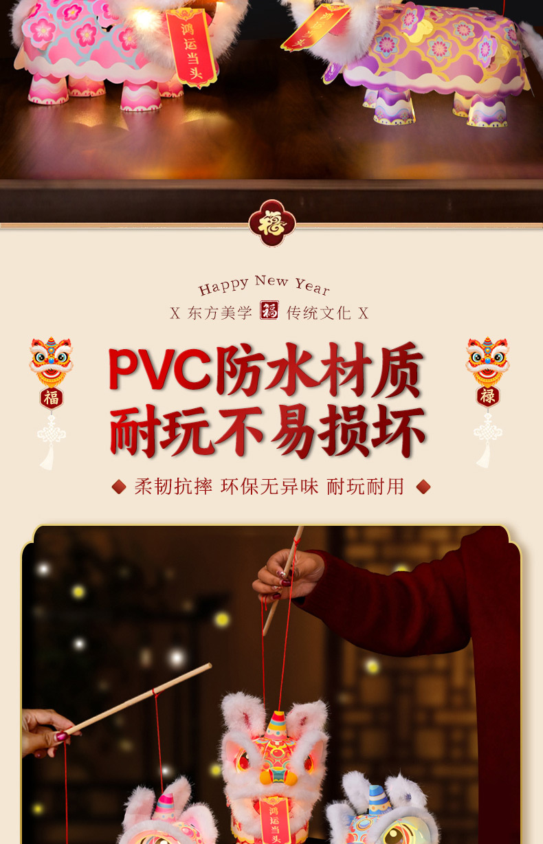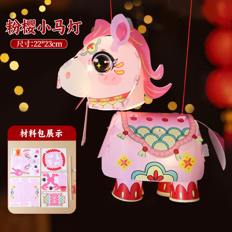 新年醒狮灯笼过年儿童手提灯手工diy材料包制作2026马年古风花灯