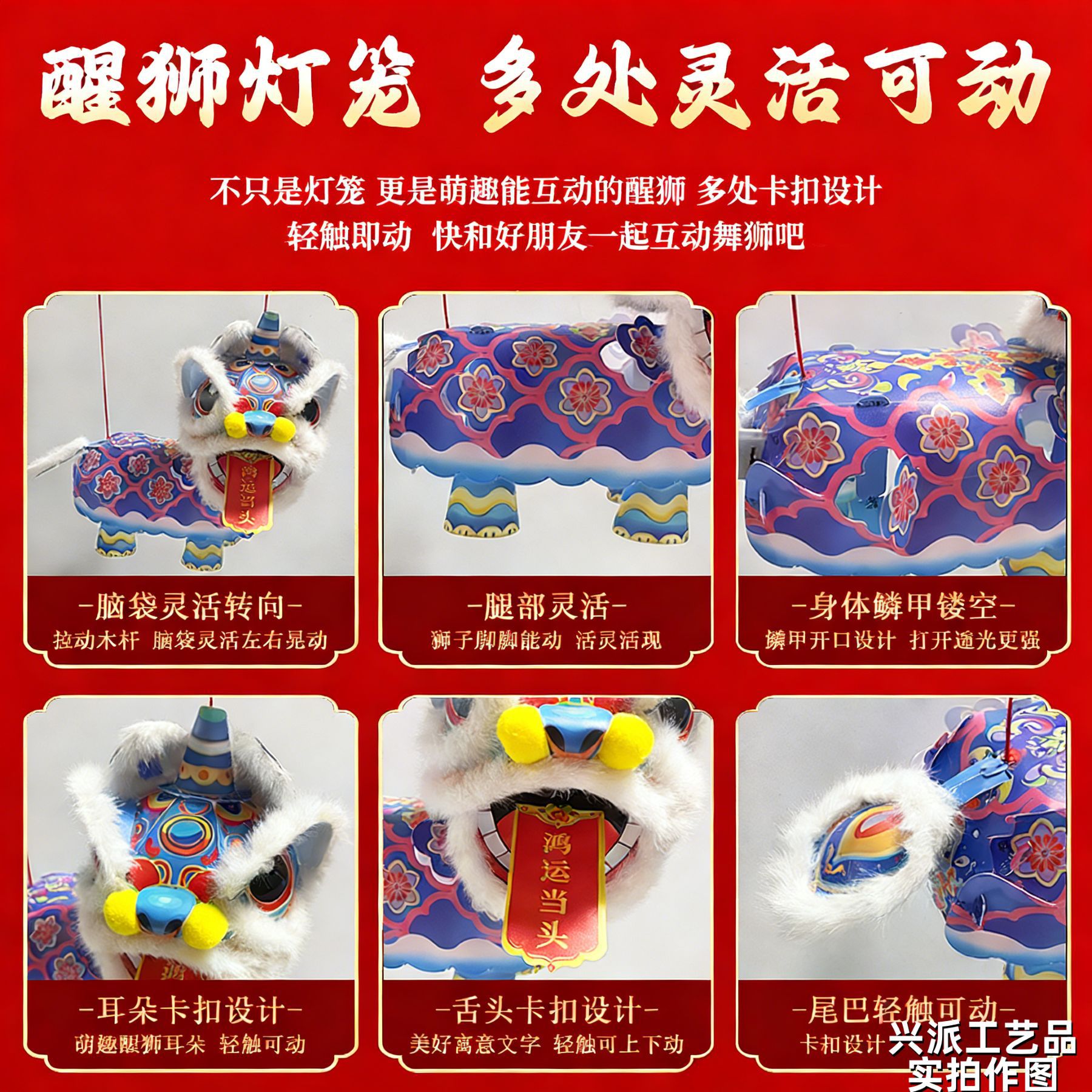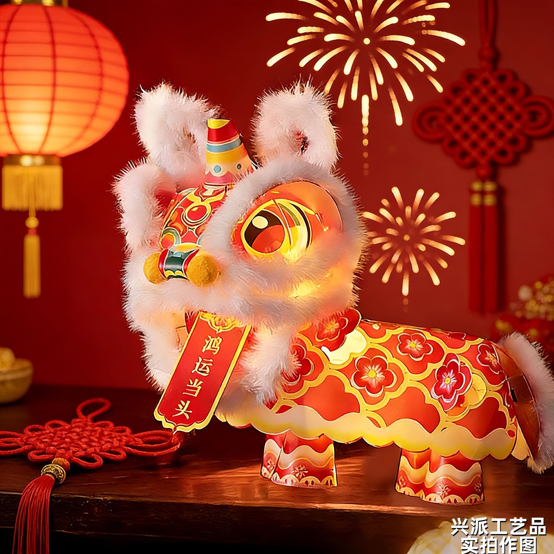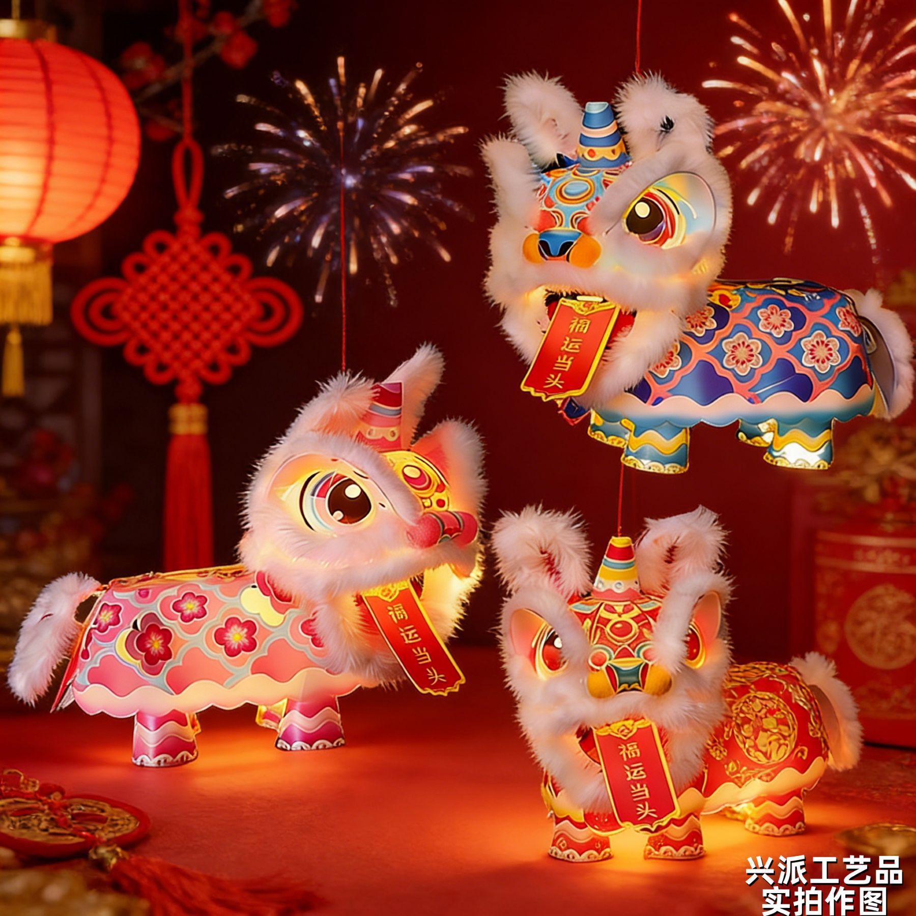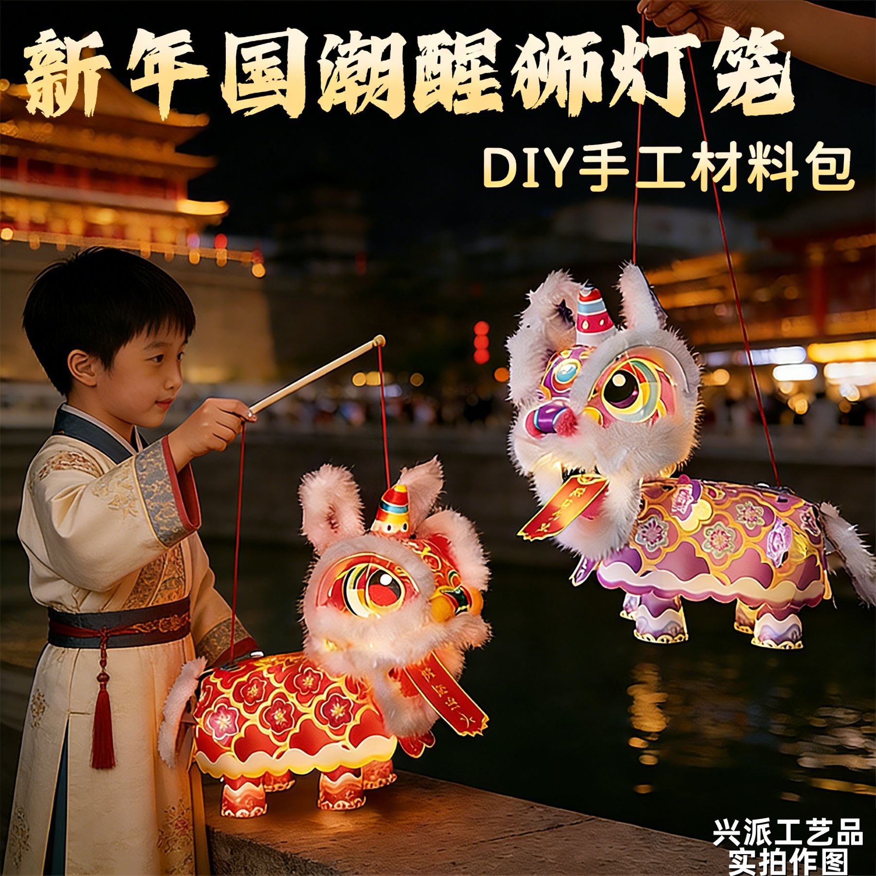 新春马年瑞宝醒狮灯笼手工DIY材料幼儿园古风花灯舞狮手提玩偶灯