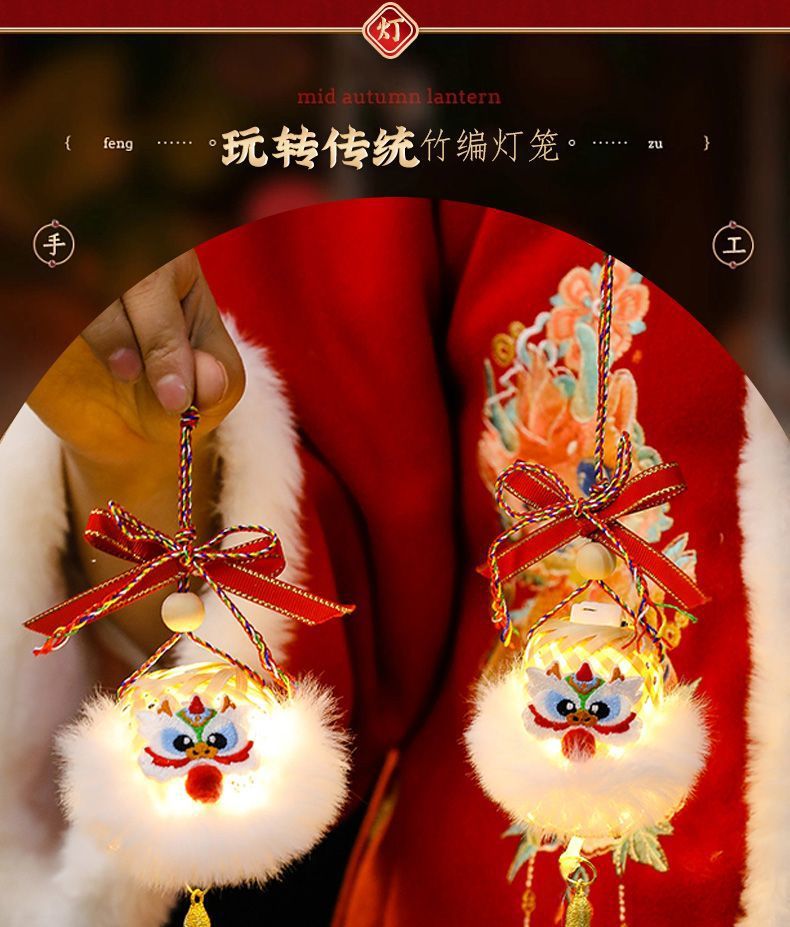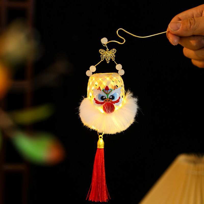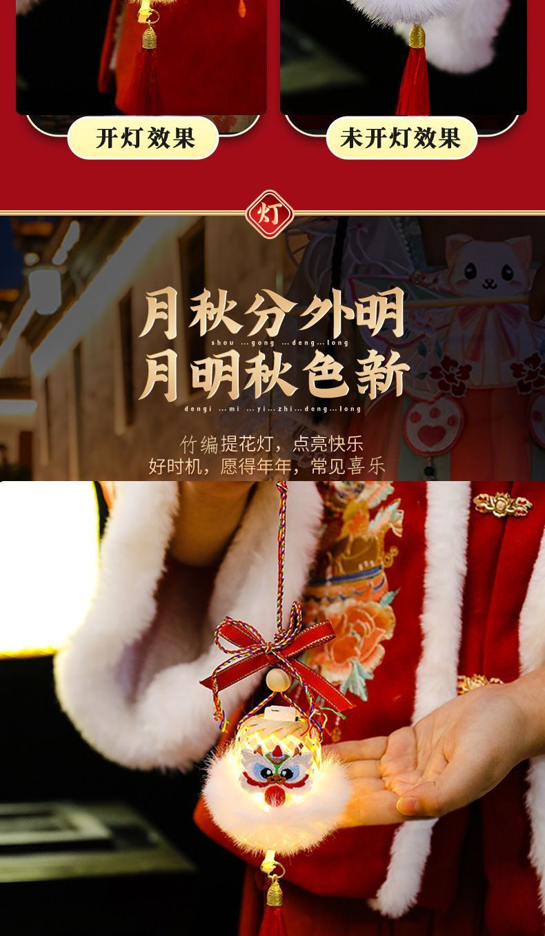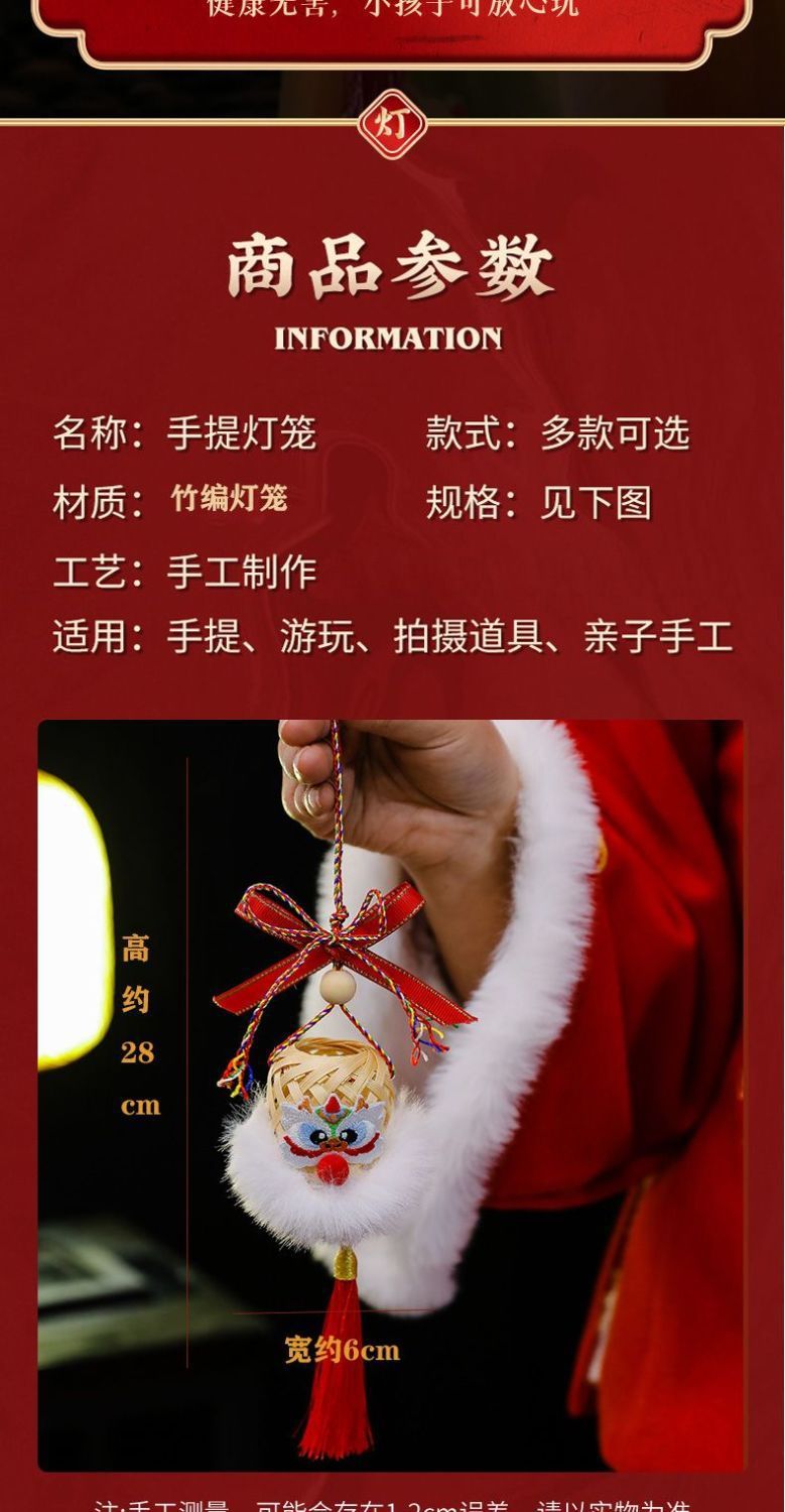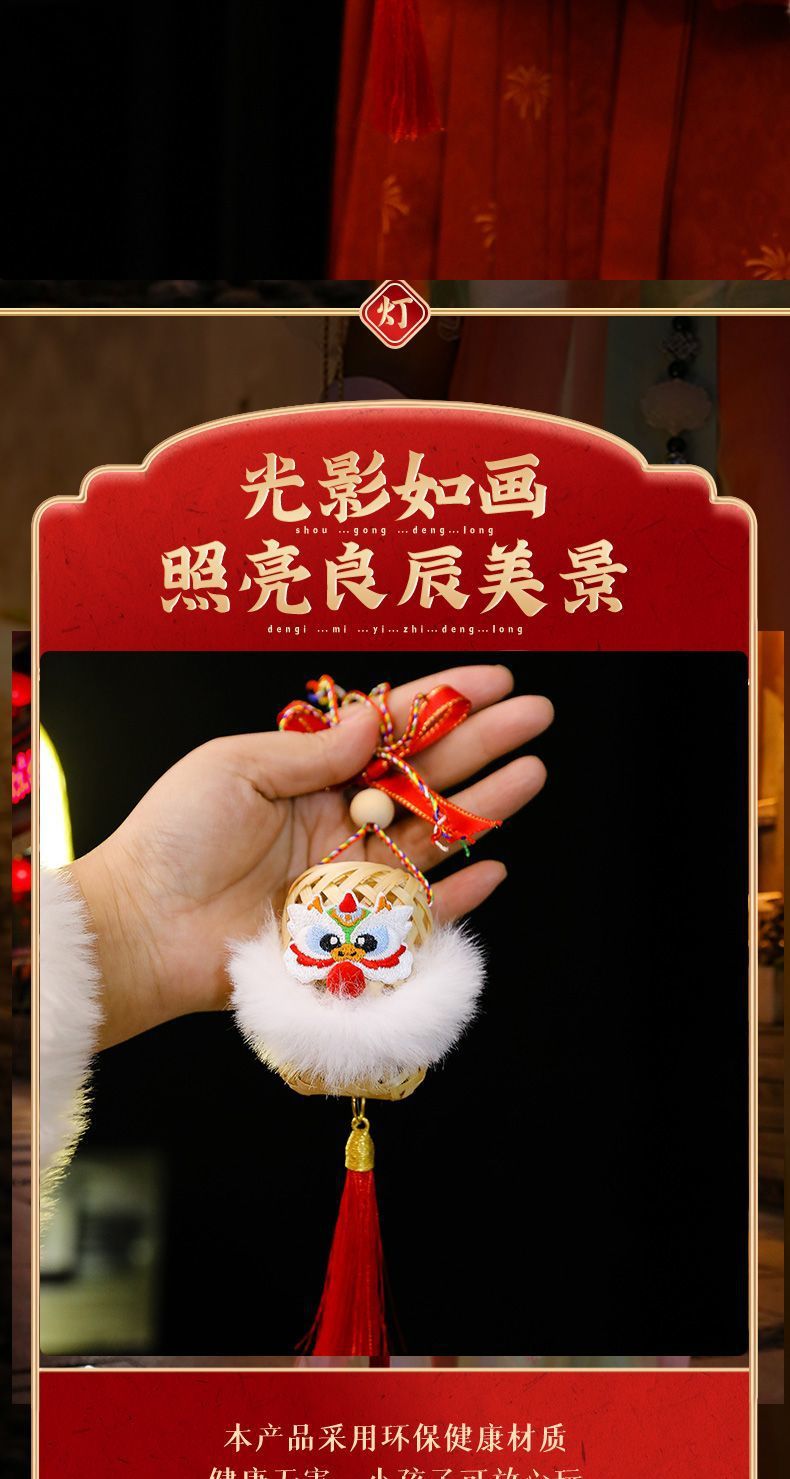 2025新年灯笼儿童手提竹编发光玩具灯元宵节花灯国潮刺绣醒狮挂件