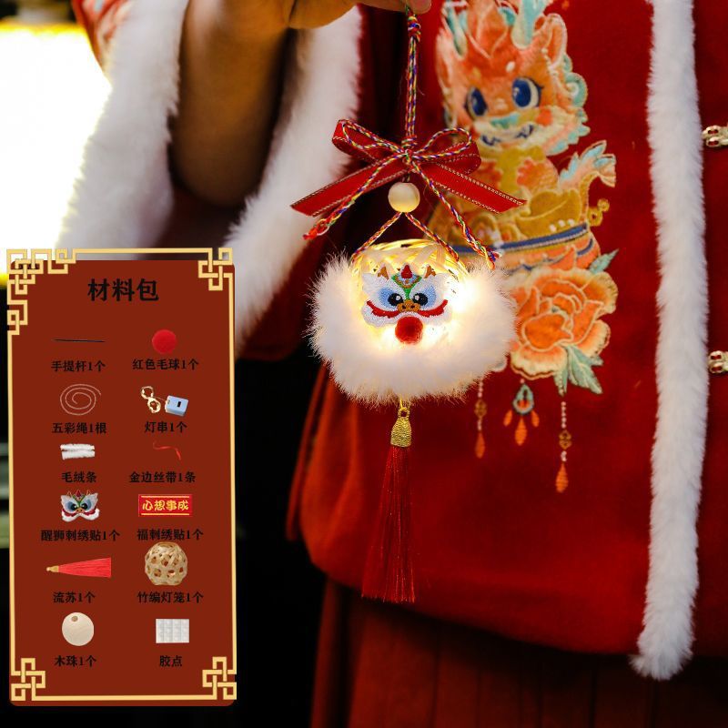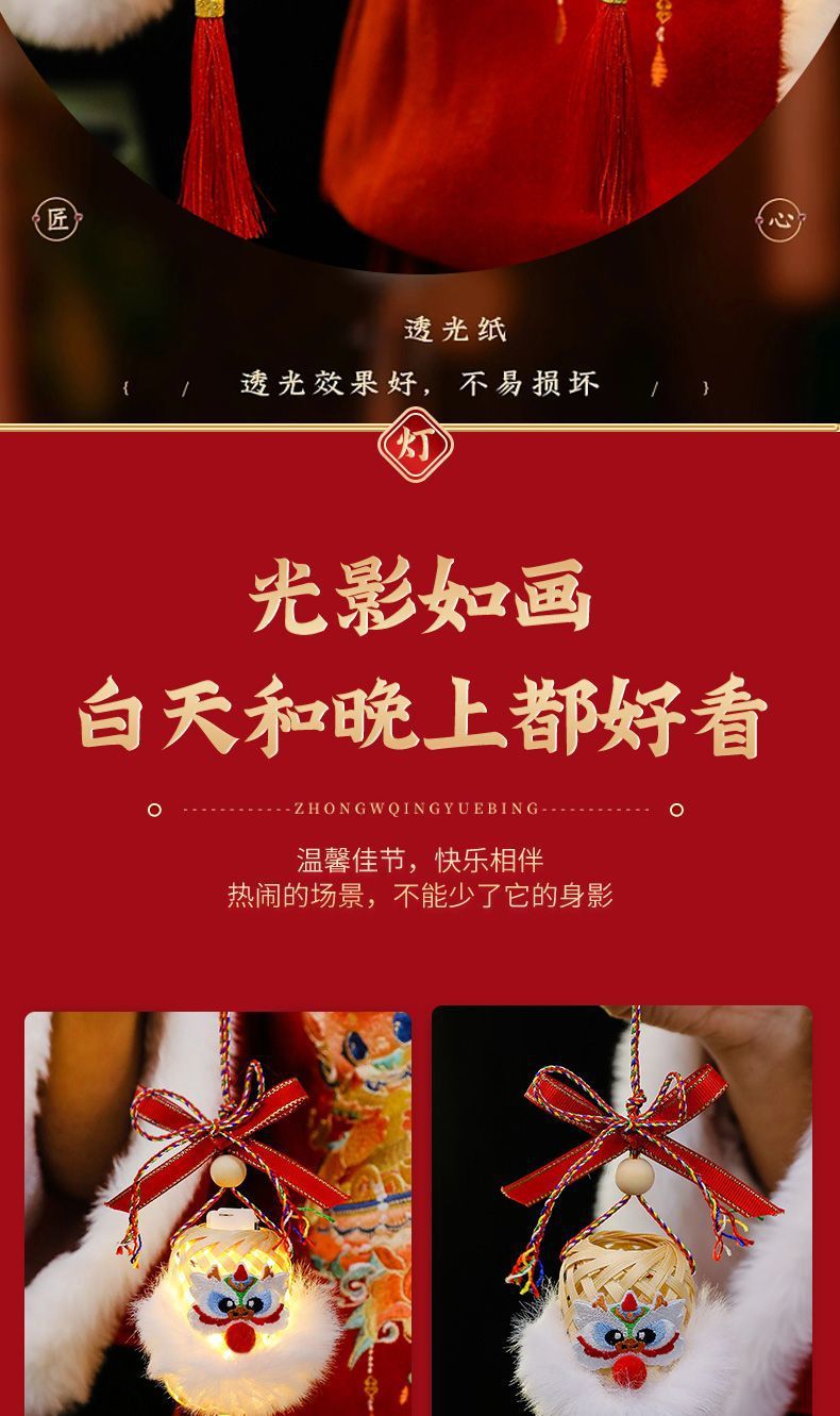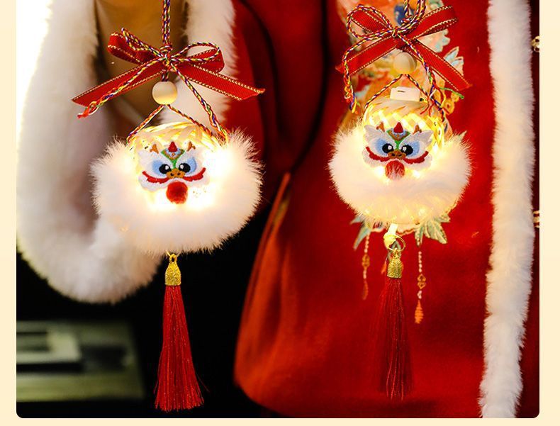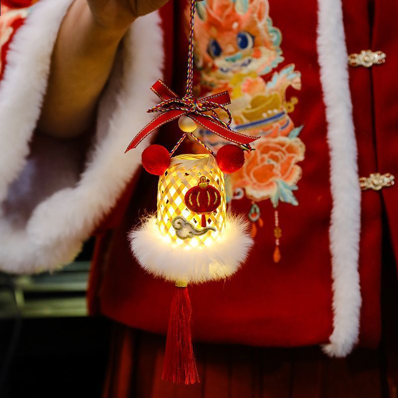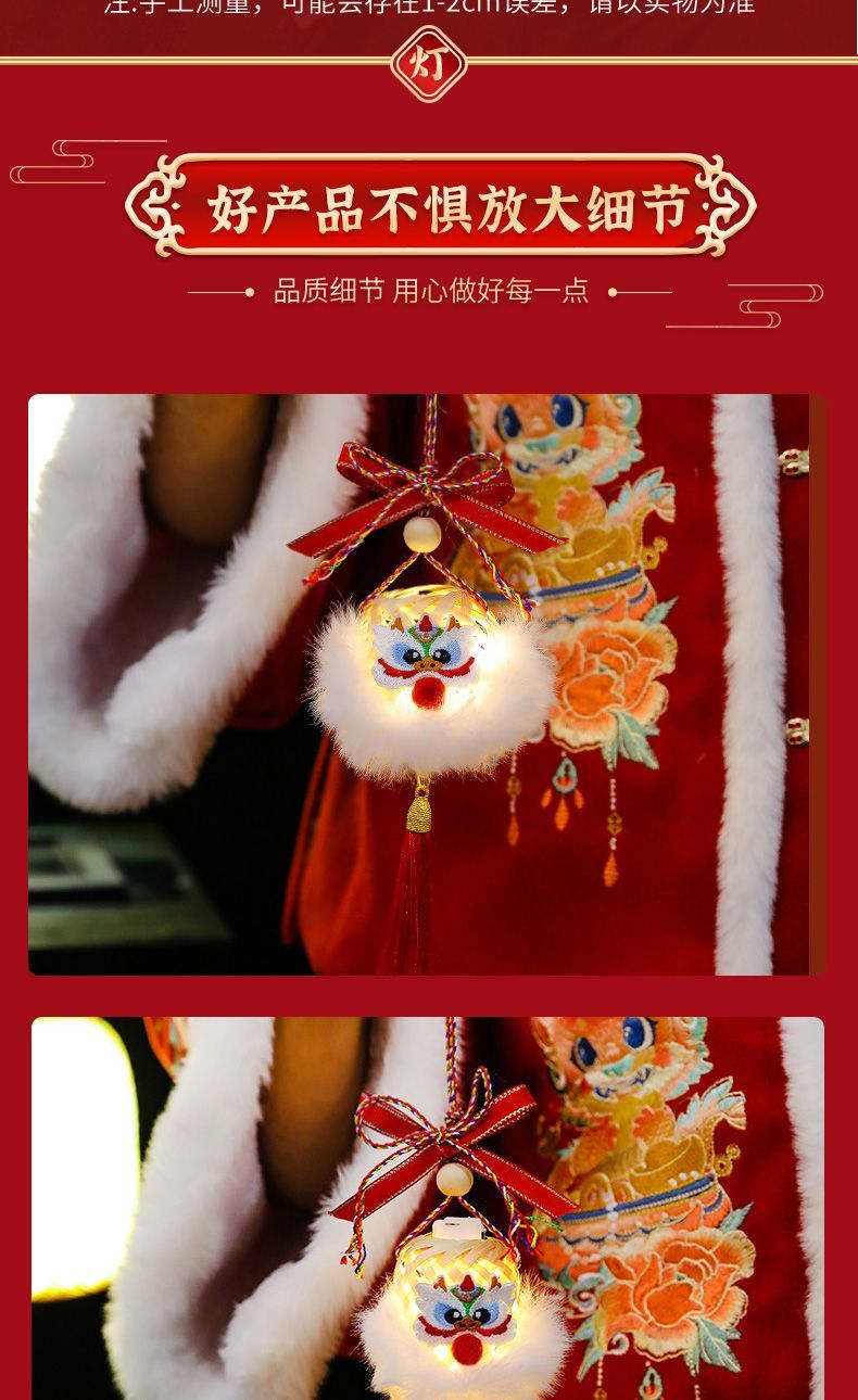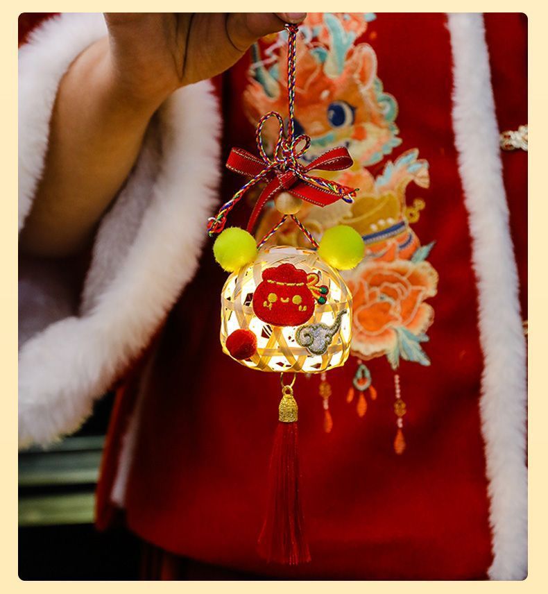 2025新年灯笼儿童手提竹编发光玩具灯元宵节花灯国潮刺绣醒狮挂件