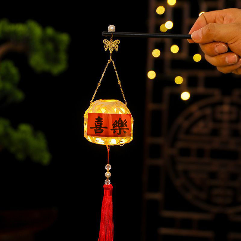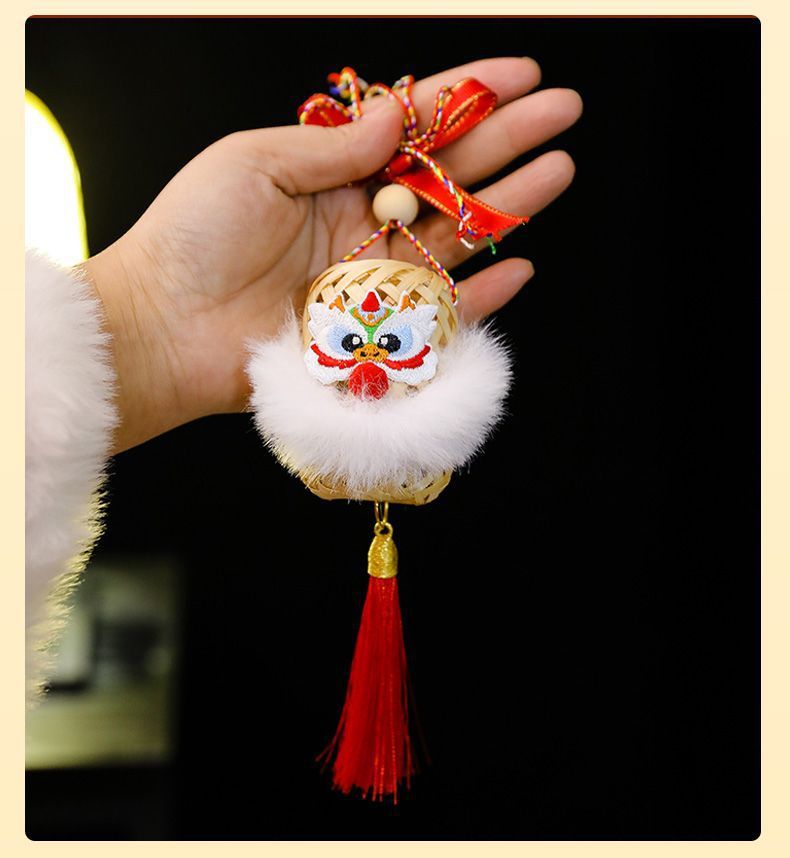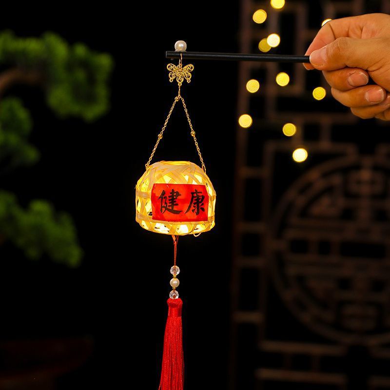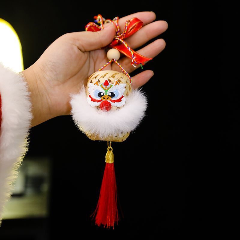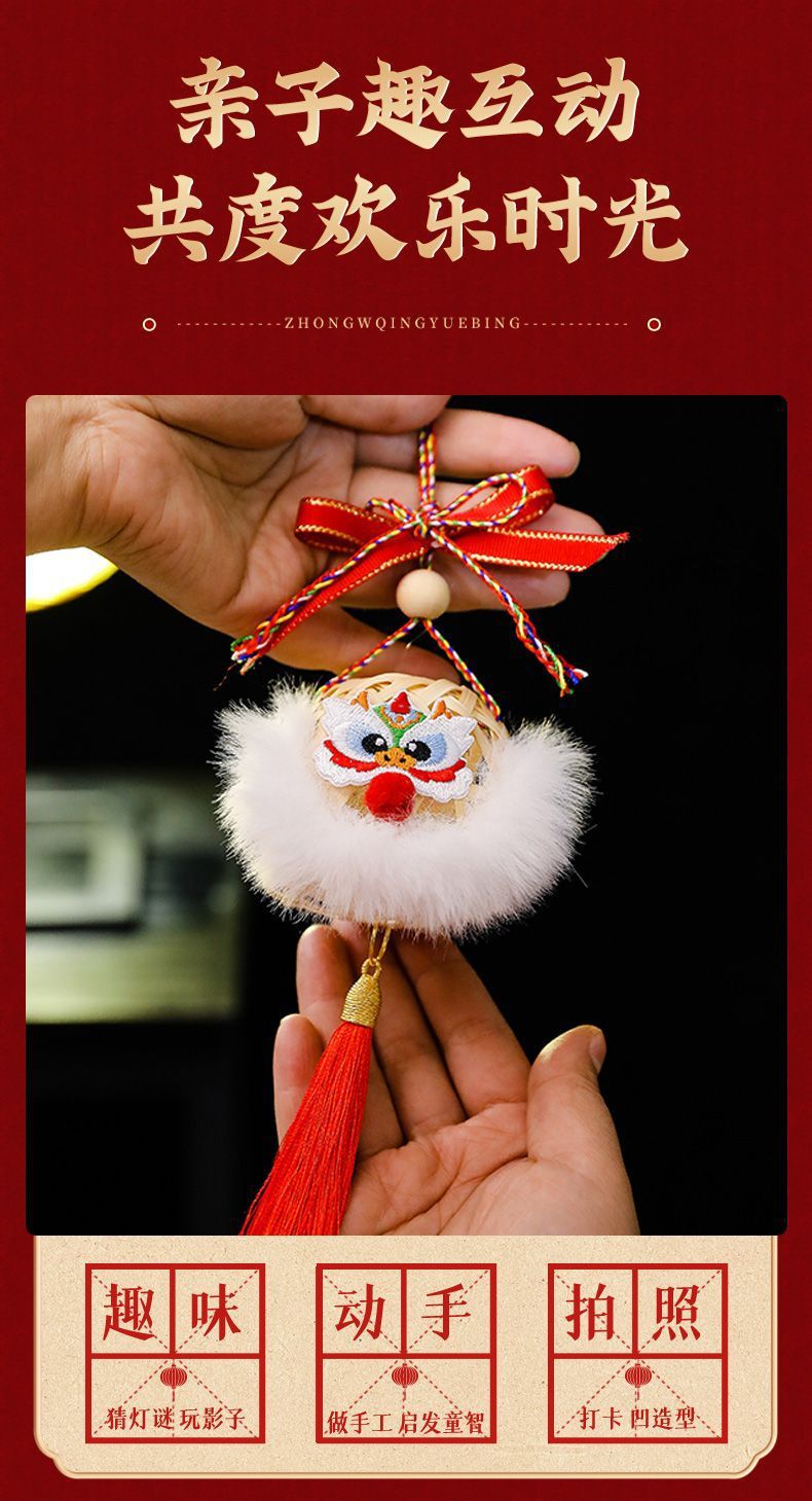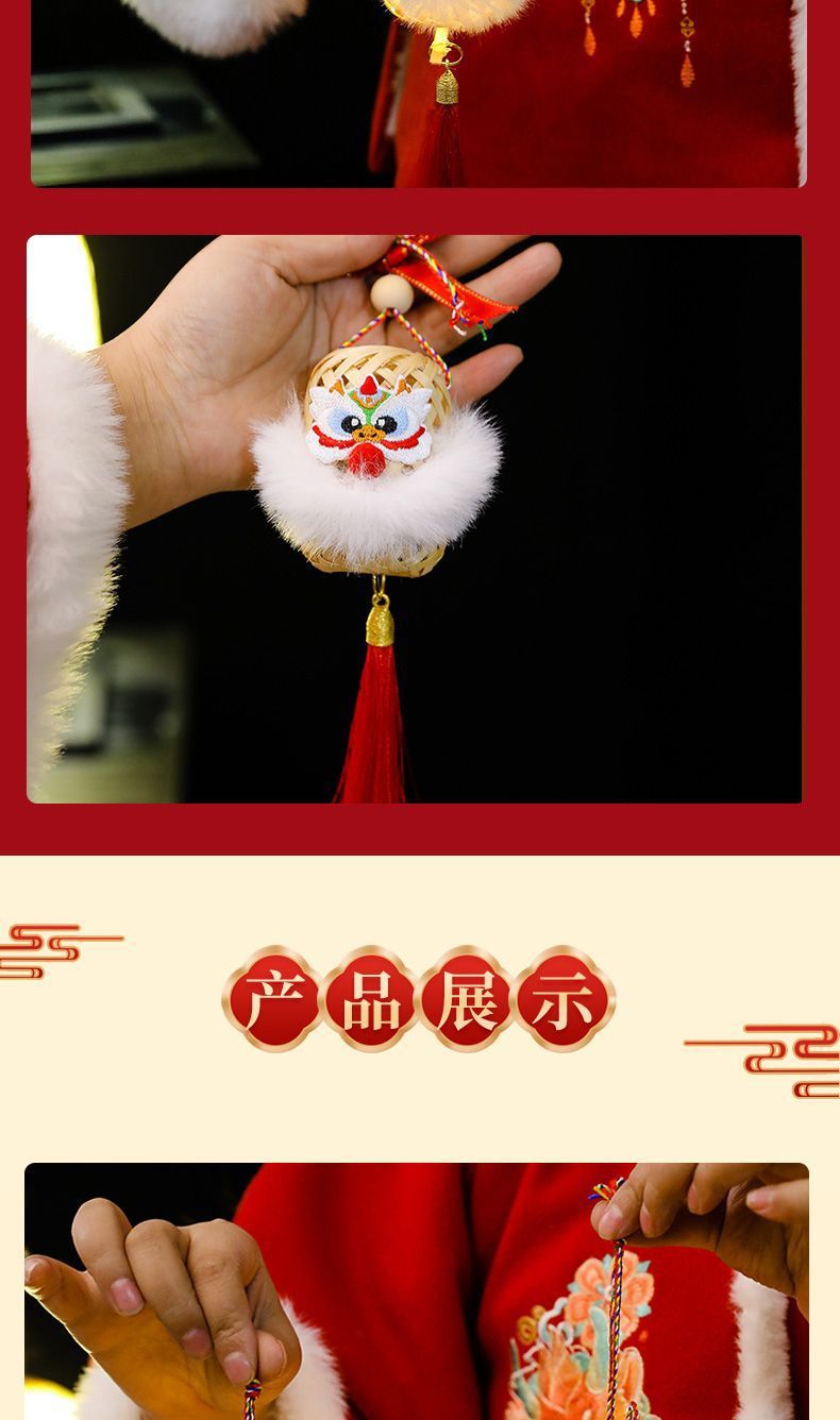 2025新年灯笼儿童手提竹编发光玩具灯元宵节花灯国潮刺绣醒狮挂件