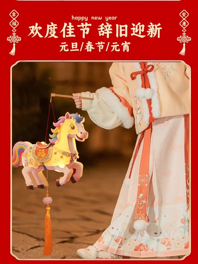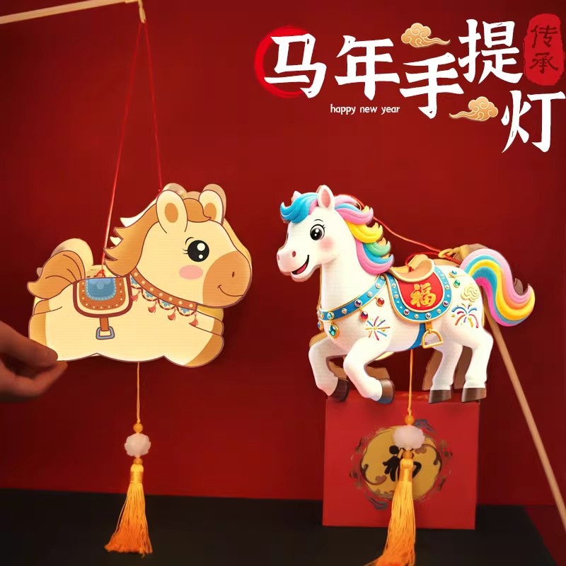 2026马年新年手提灯笼卡通马手工DIY材料包元旦元宵儿童节日活动