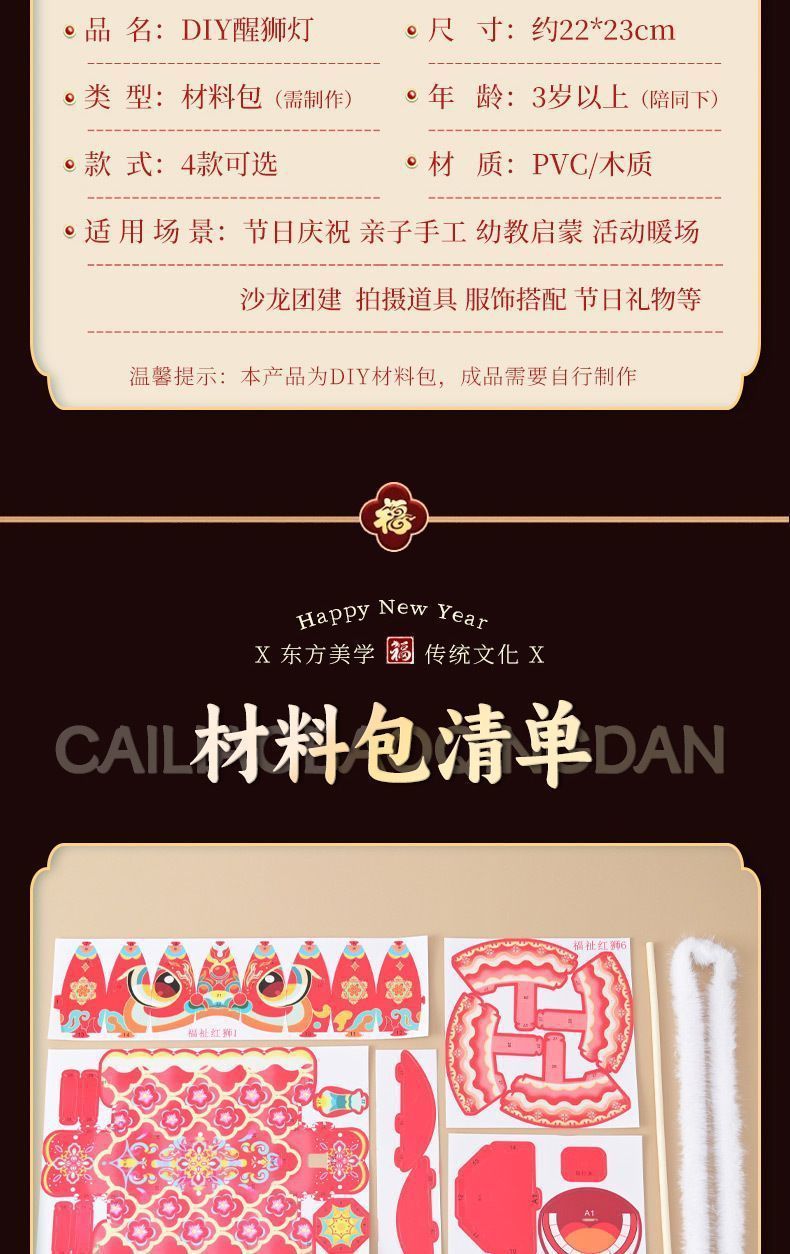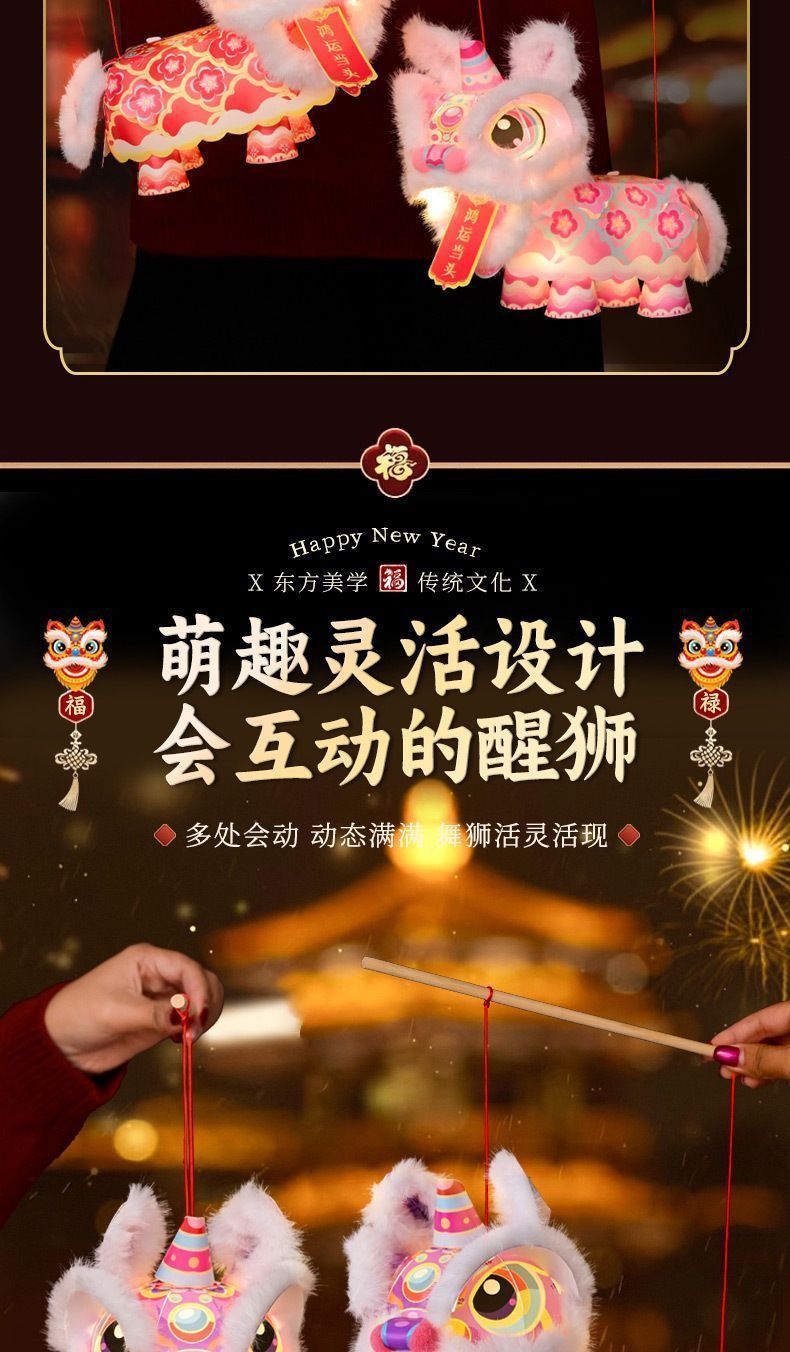 2026新年元旦爆款diy灯笼幼儿园手提灯笼灯儿童舞狮灯笼材料包