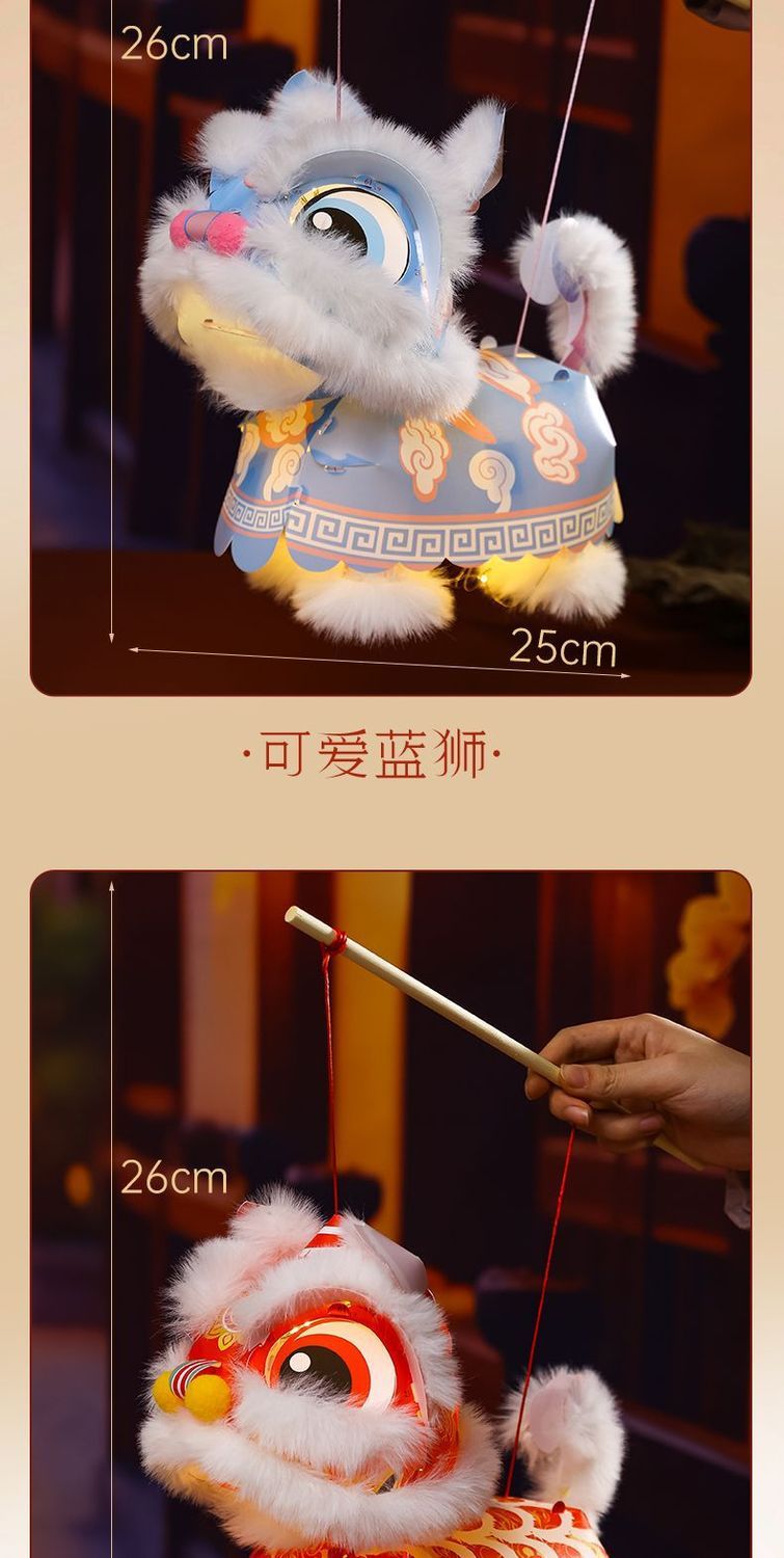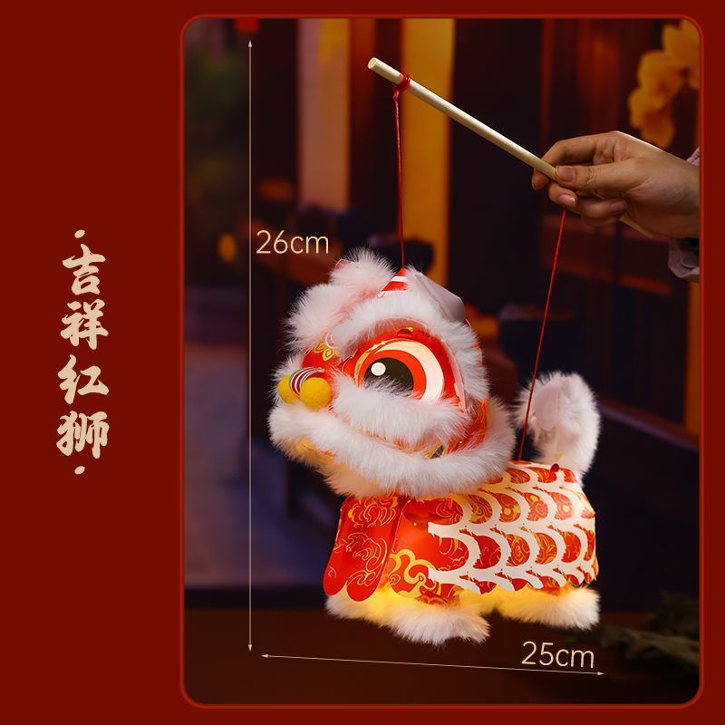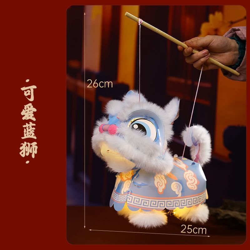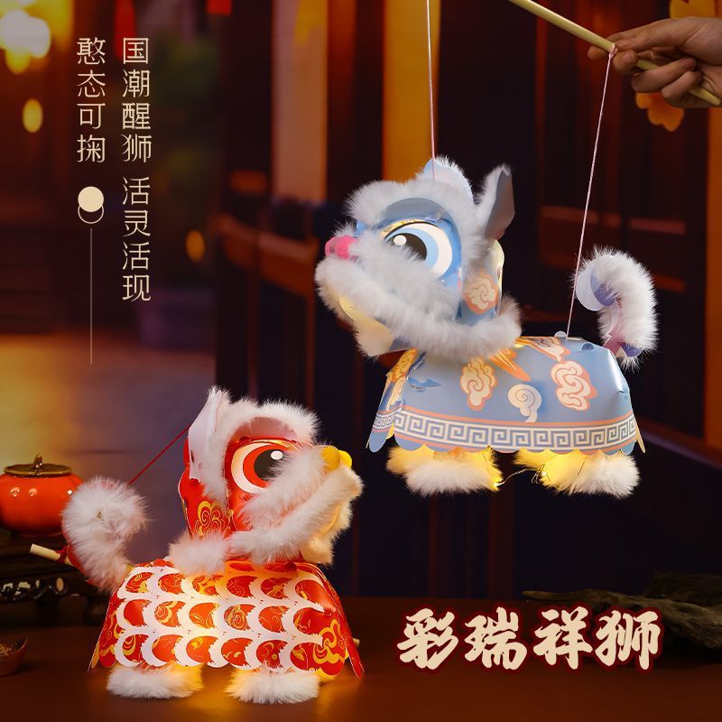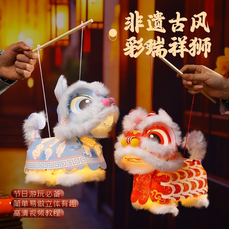 新年醒狮灯笼手工diy材料发光手提灯2026新款过年幼儿园儿童花灯
