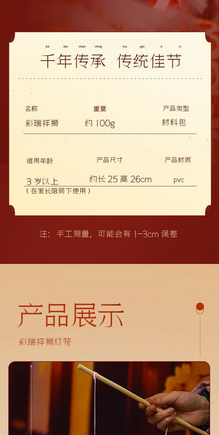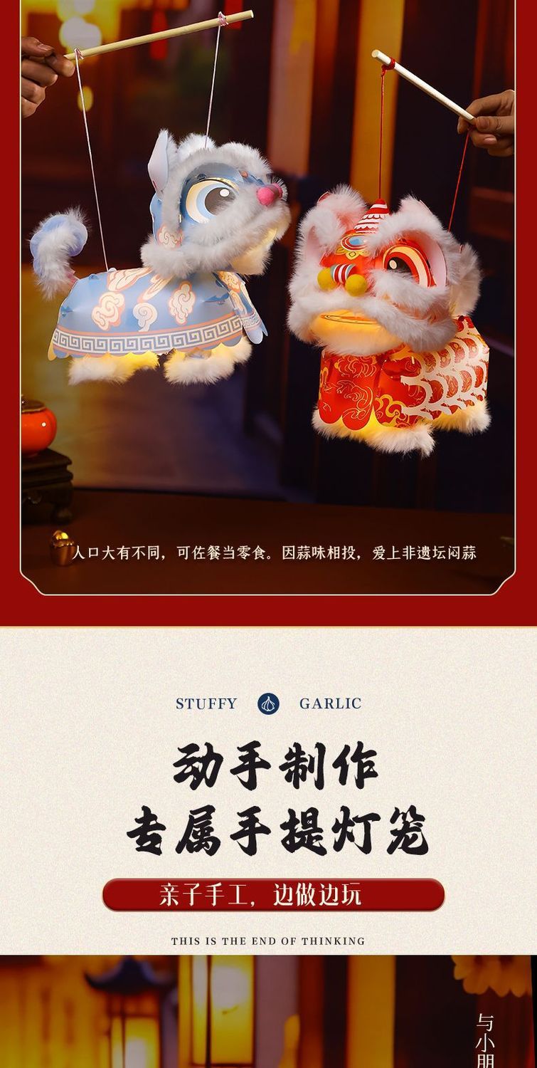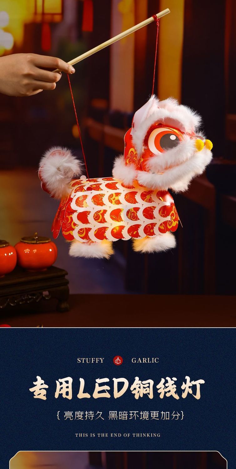 新年醒狮灯笼手工diy材料发光手提灯2026新款过年幼儿园儿童花灯