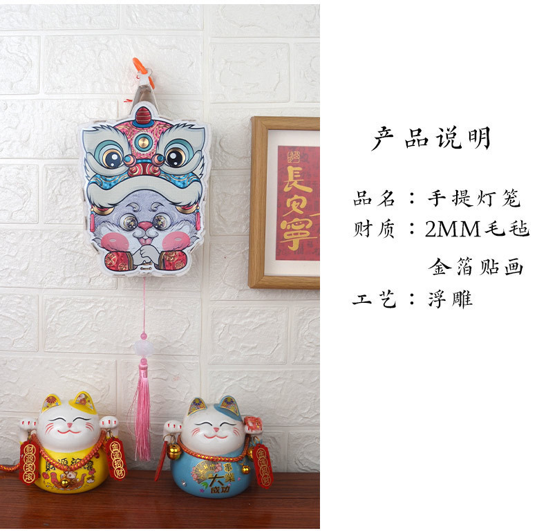 儿童手提灯笼diy幼儿园小学生手工兔子花灯毛毡国潮醒狮中秋元宵