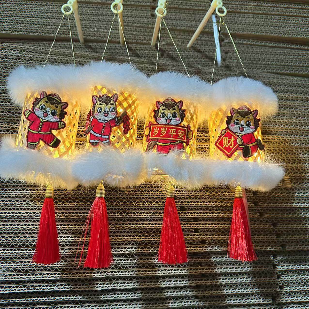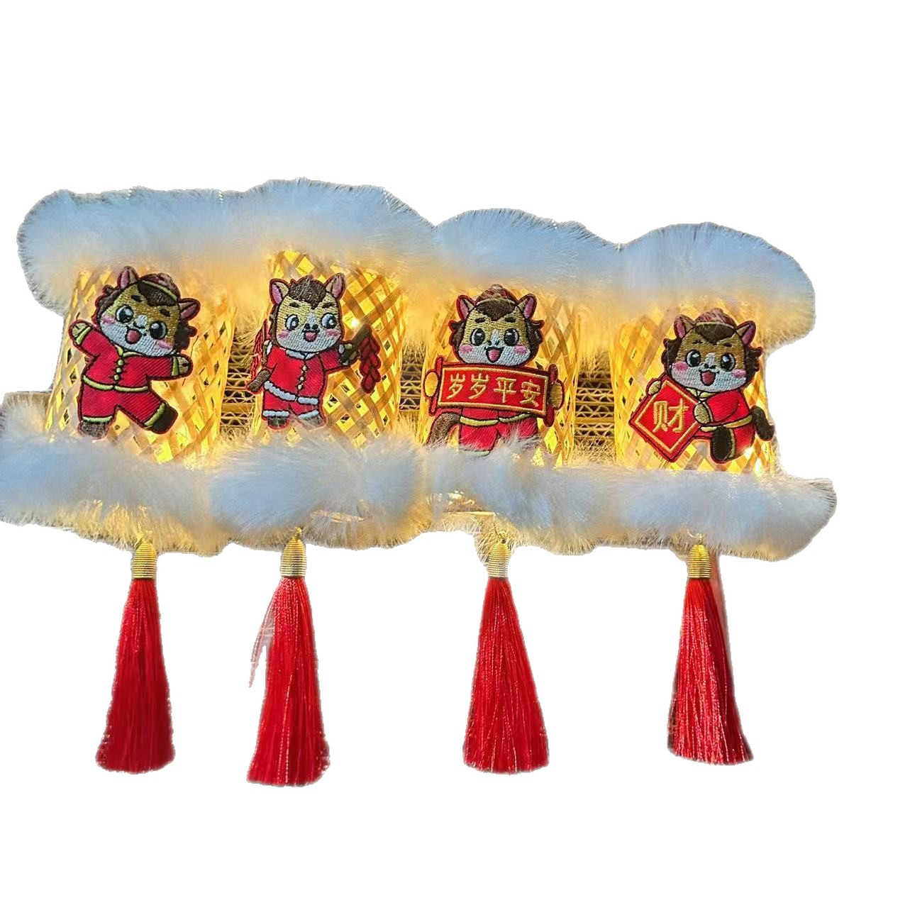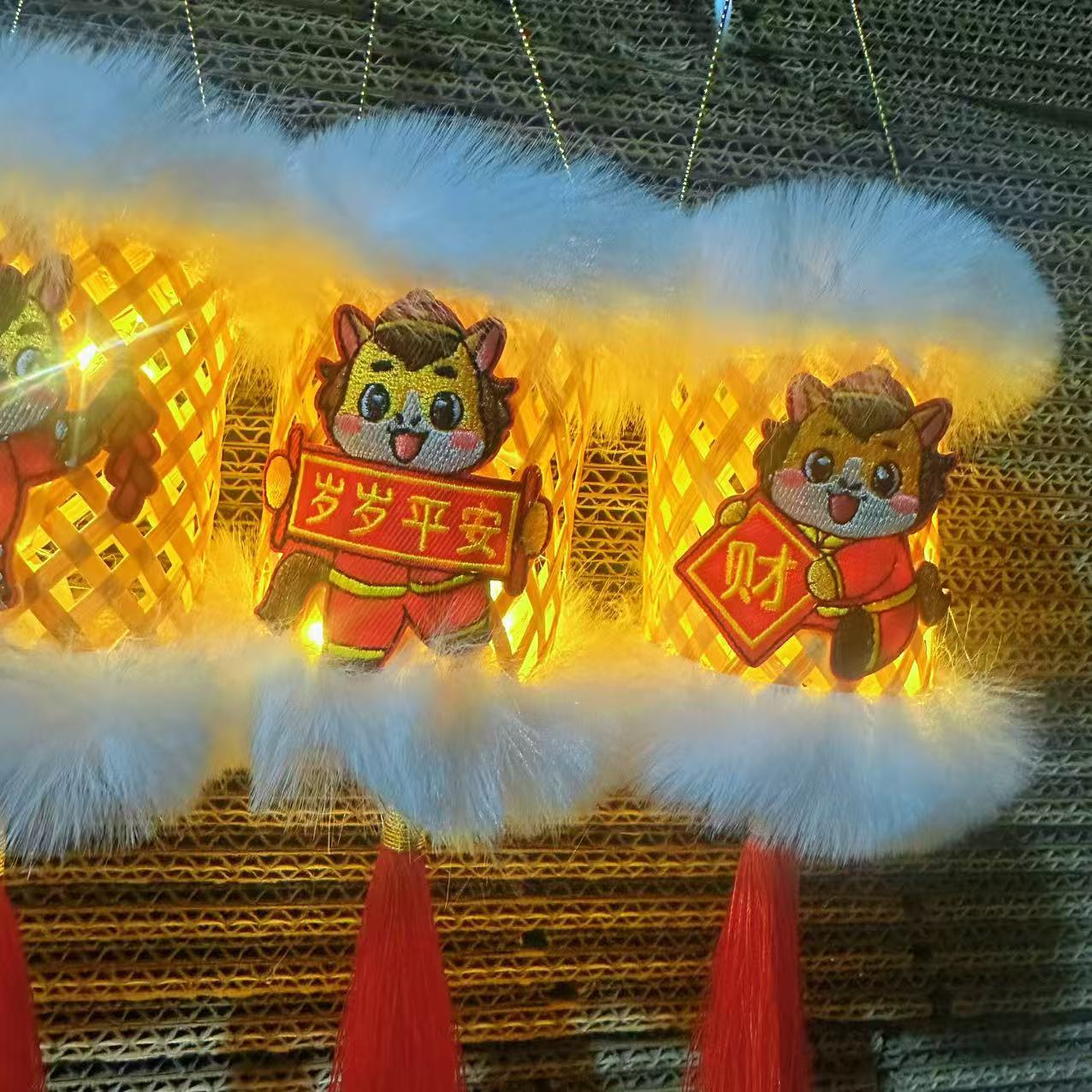 2026马年春节手提竹编灯笼儿童创意手工发光醒狮花灯过年宫灯批发