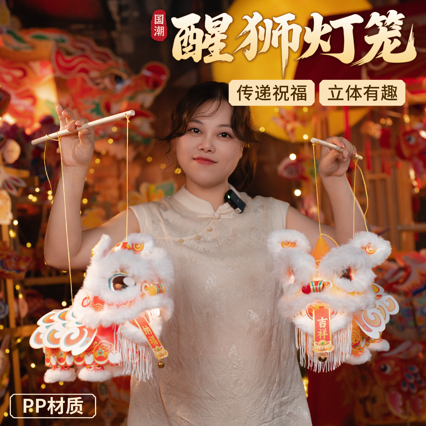醒狮灯笼春节过年卖的手工发光灯笼儿童diy制作新年花灯批发摆摊