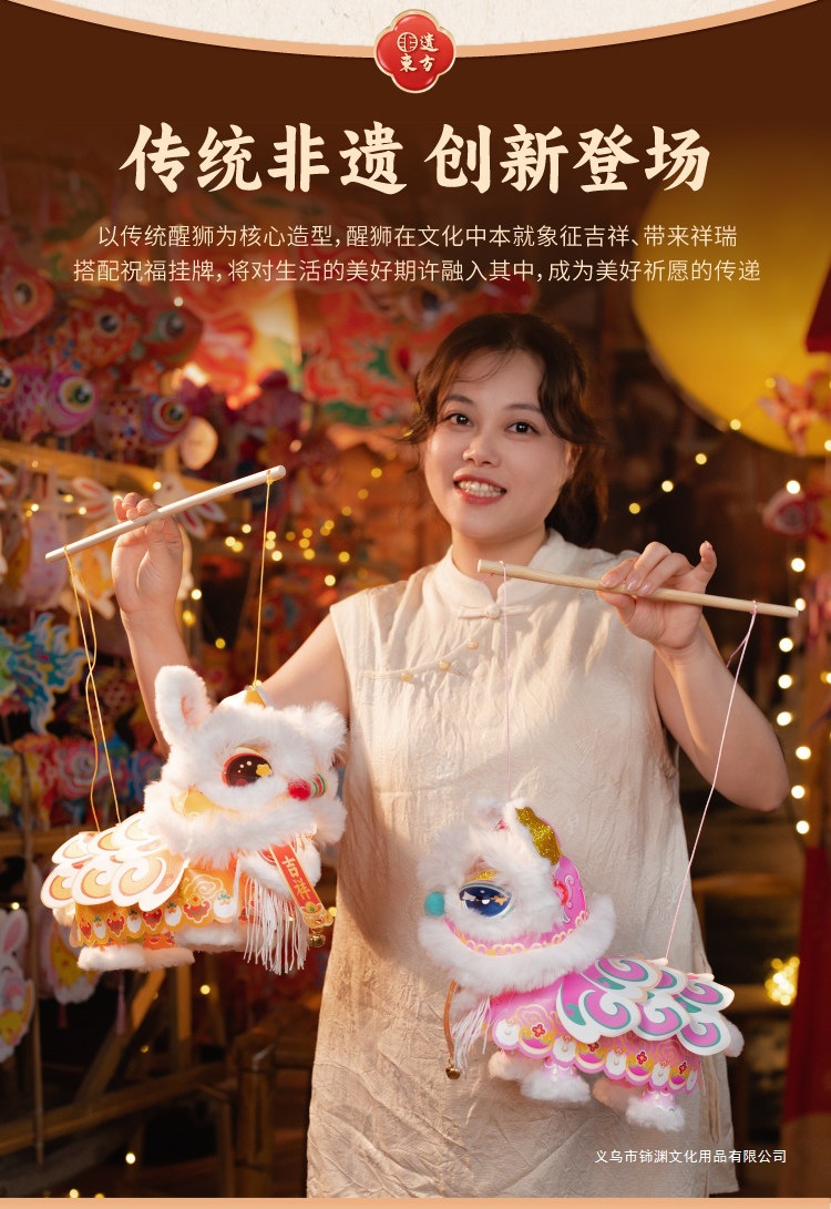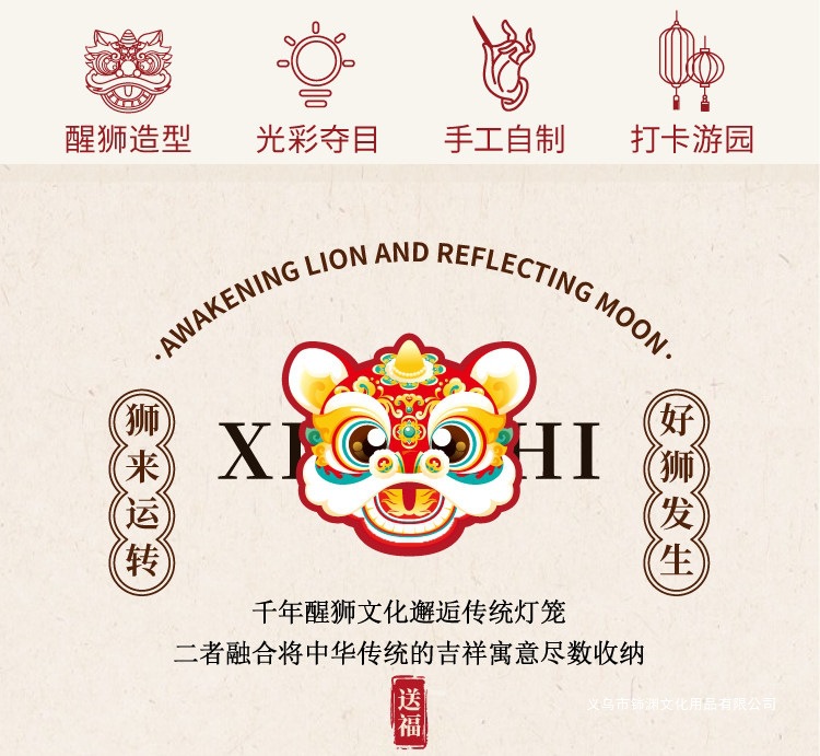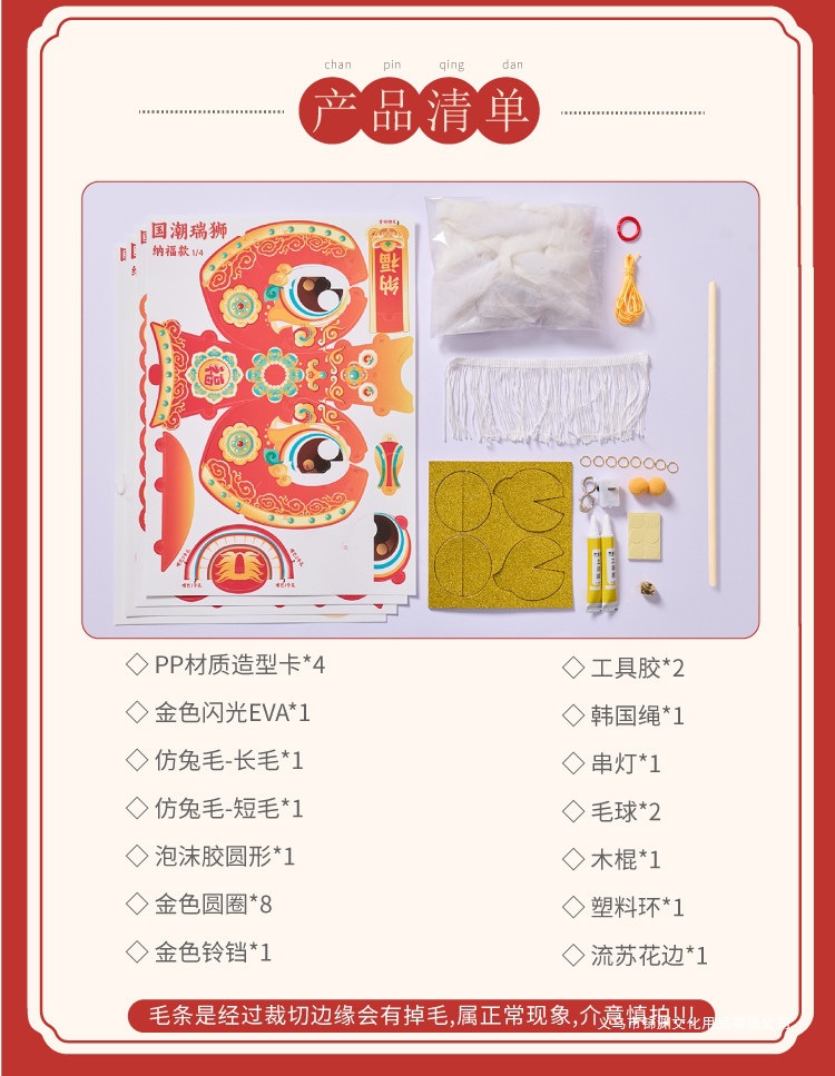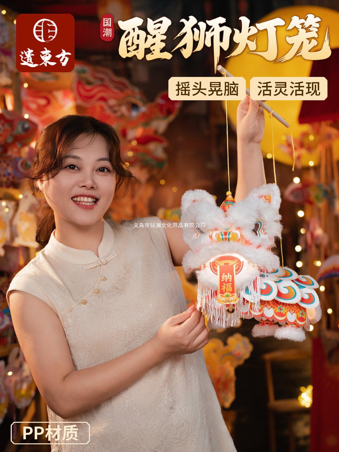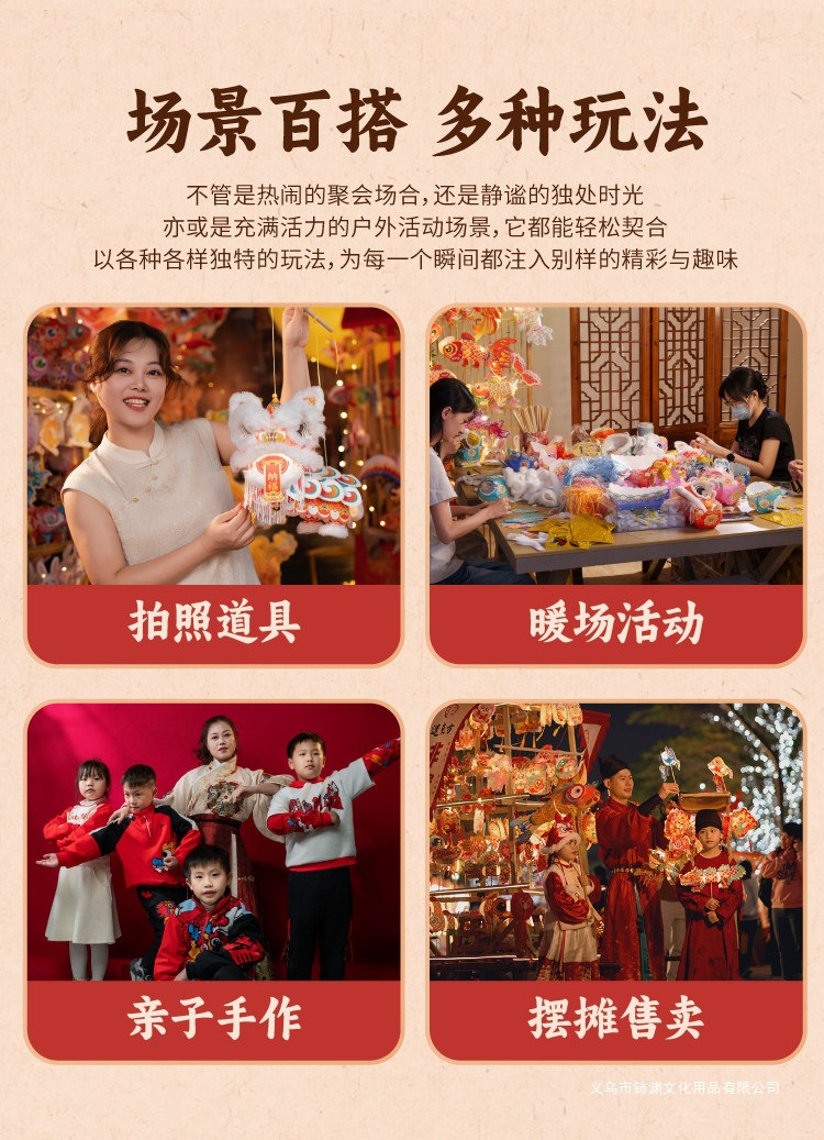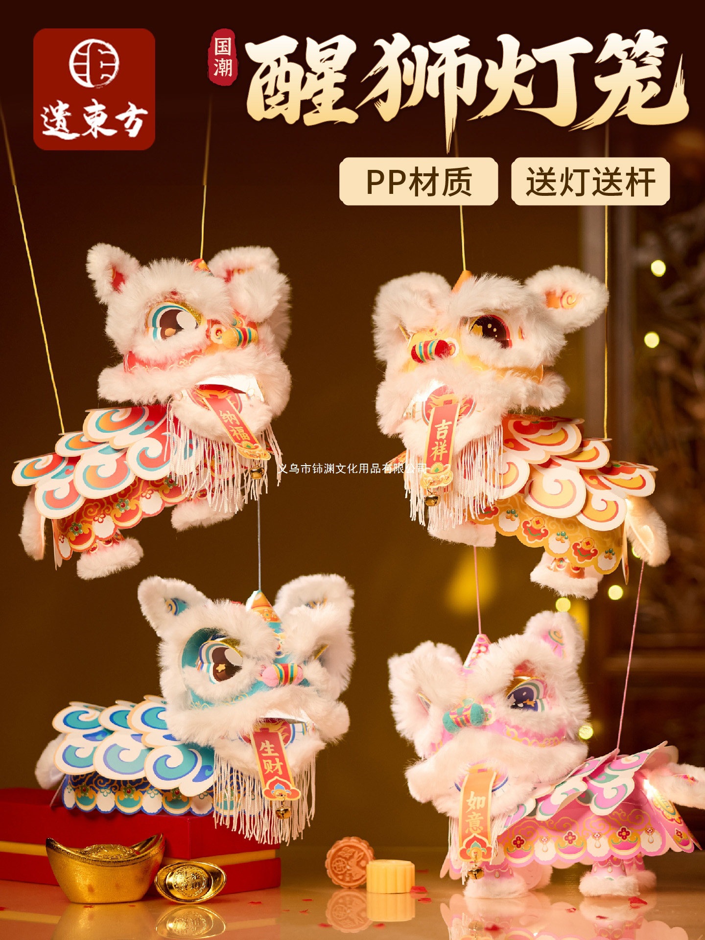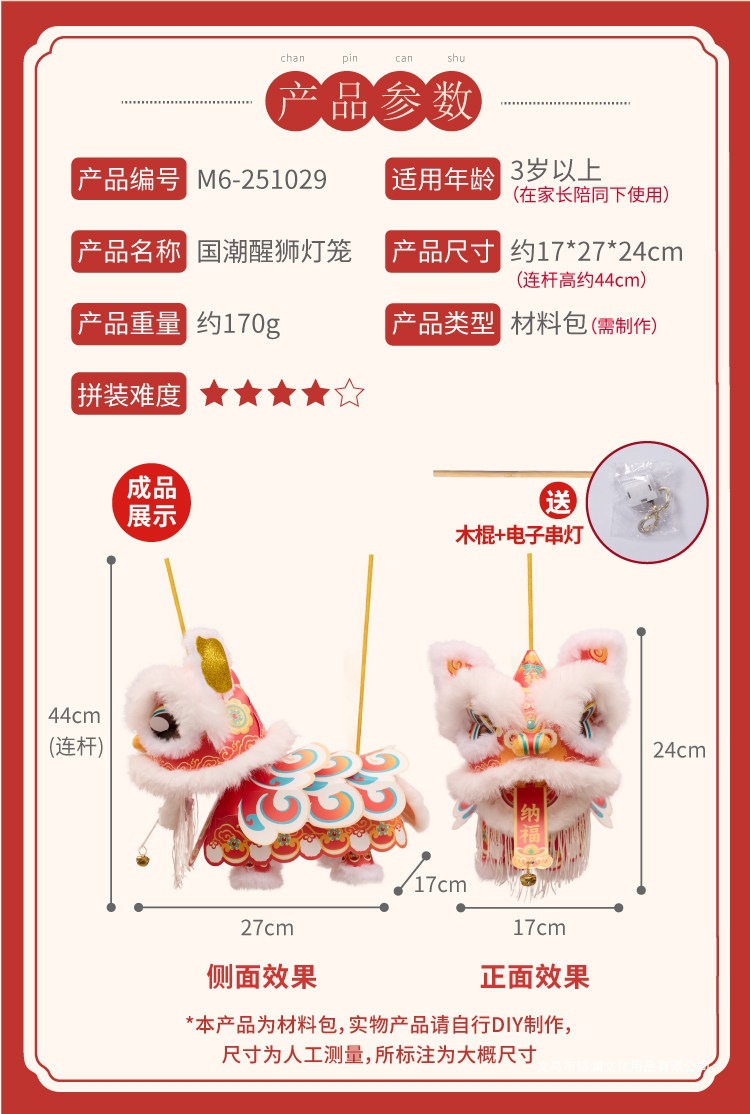新年春节马年元旦国潮醒狮灯笼手工diy儿童制作材料狮子花灯2026