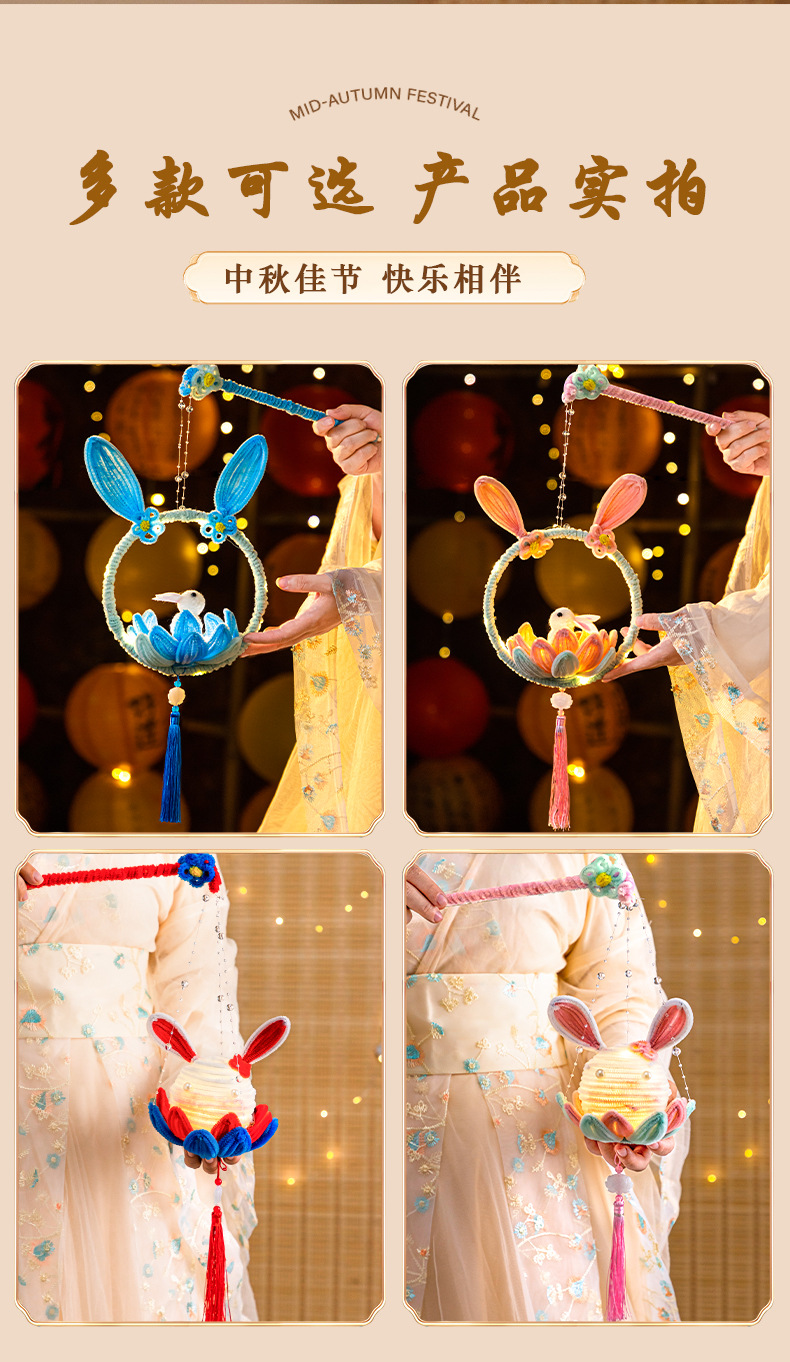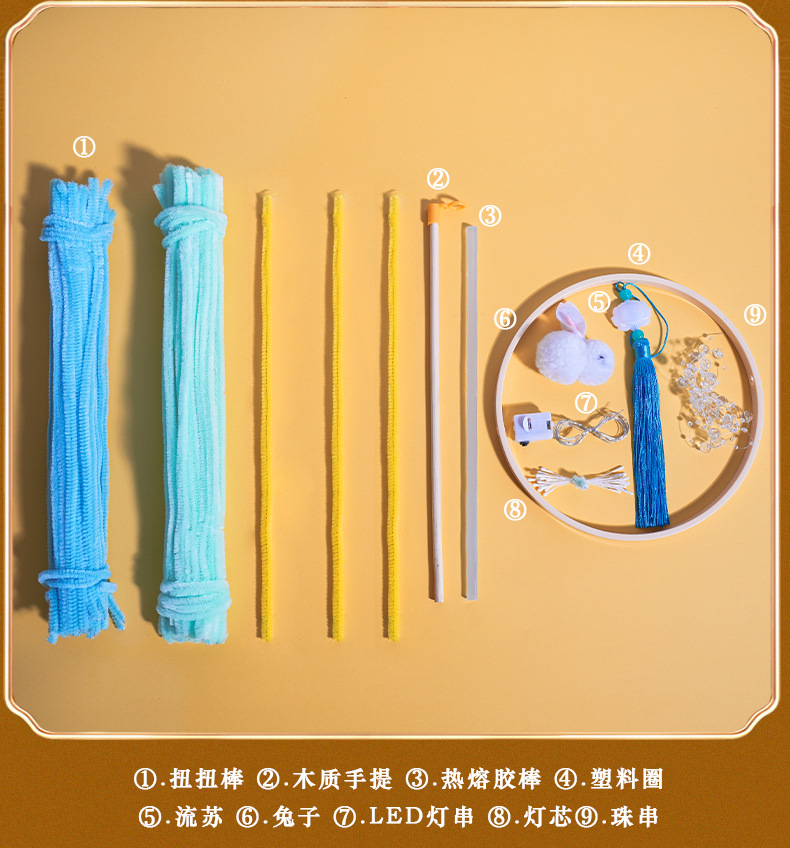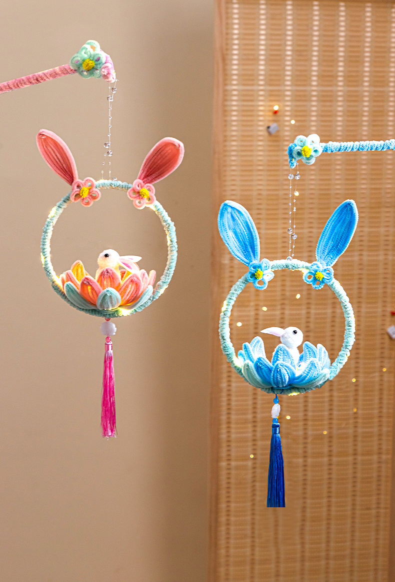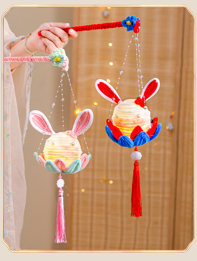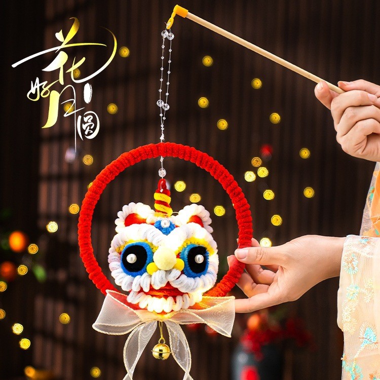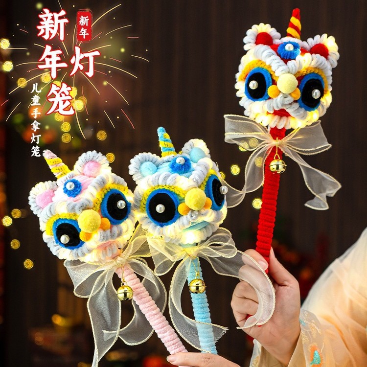 新年灯笼醒狮手工diy材料包小朋友儿童活动手提兔子扭扭棒花灯