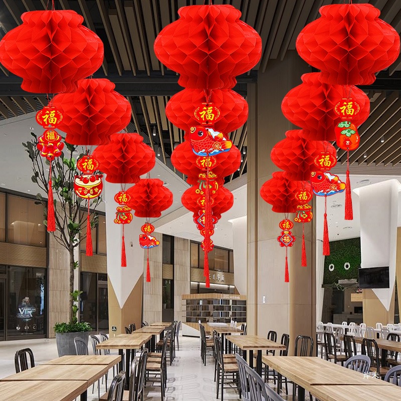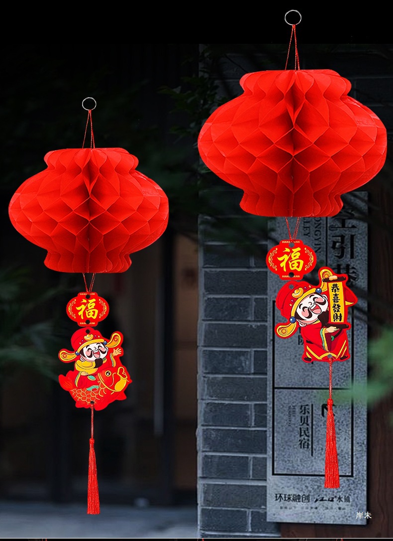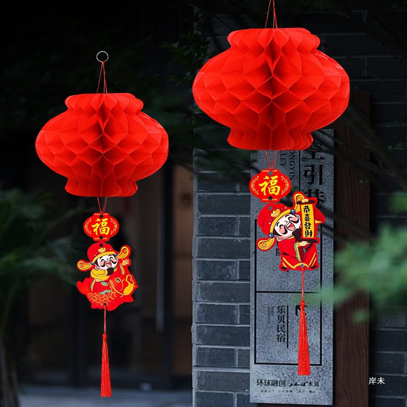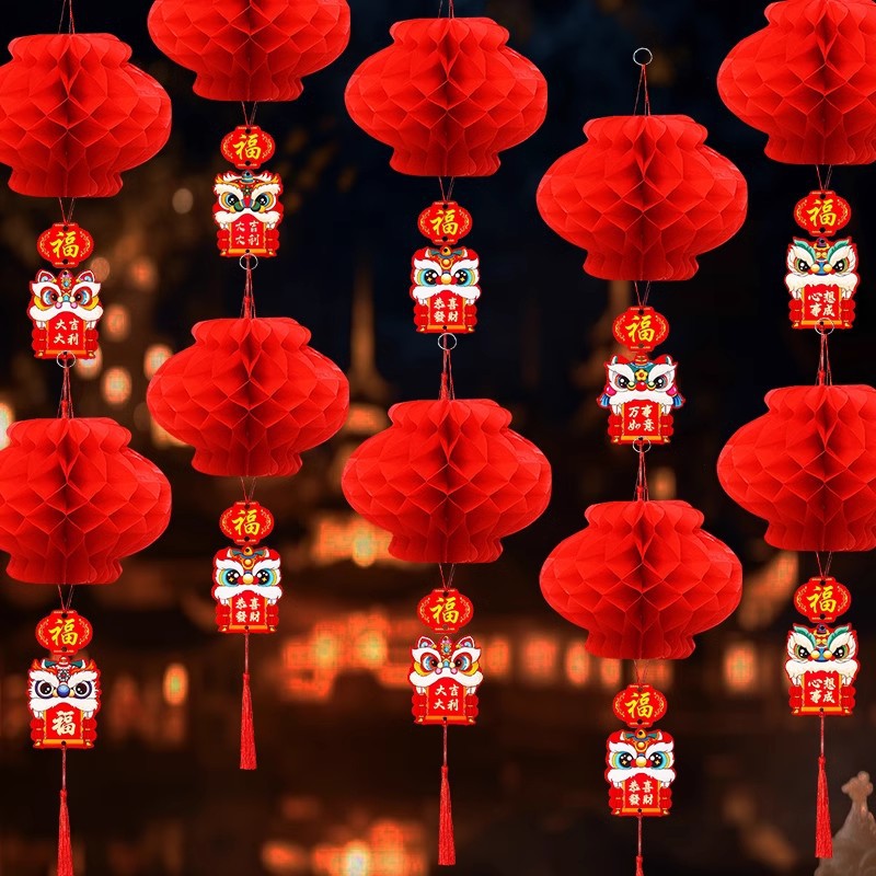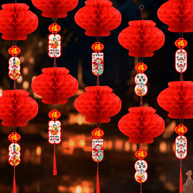 新年喜庆红色纸灯笼装饰2026新款结婚蜂窝挂饰装饰挂件小灯笼布置
