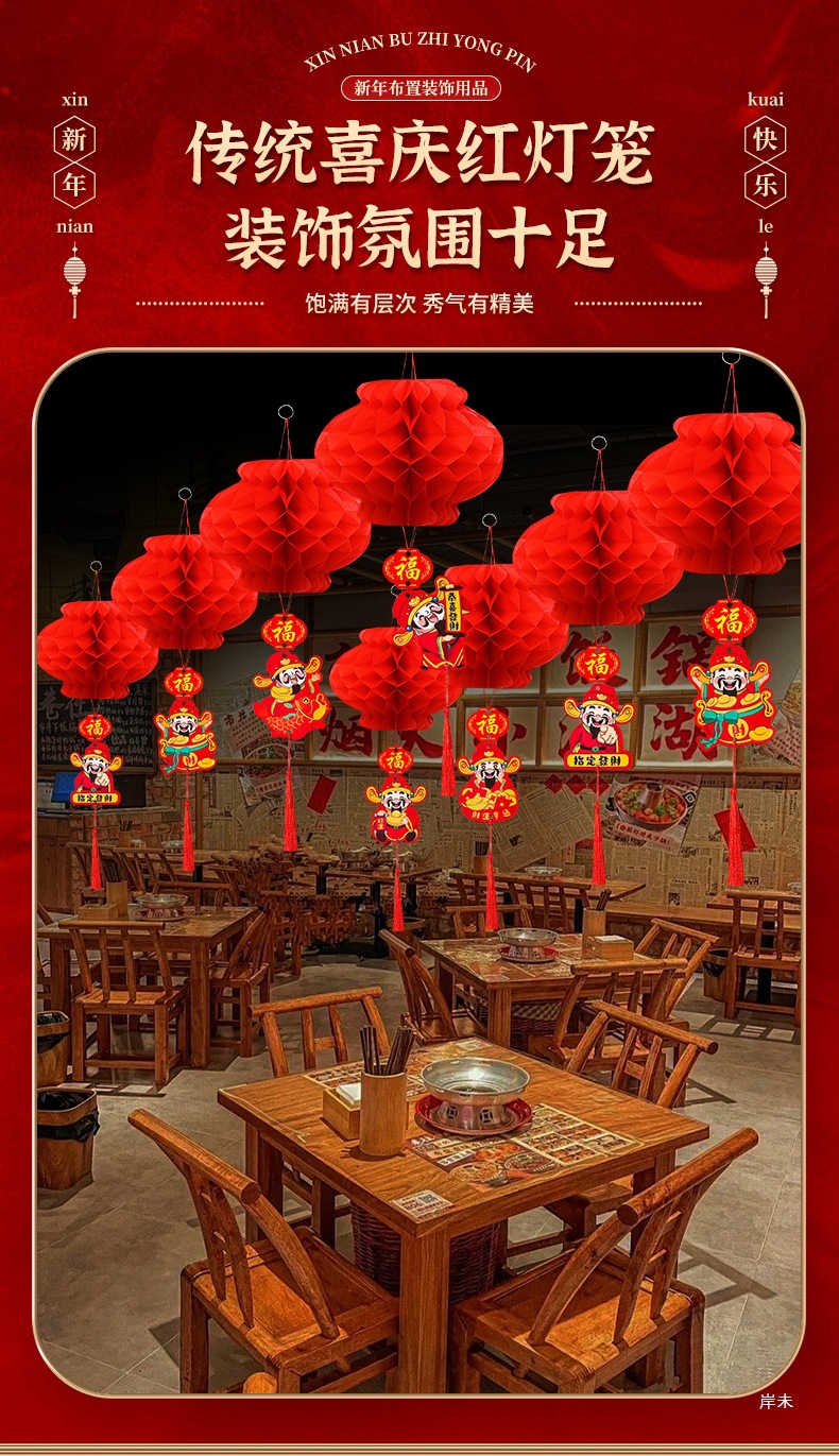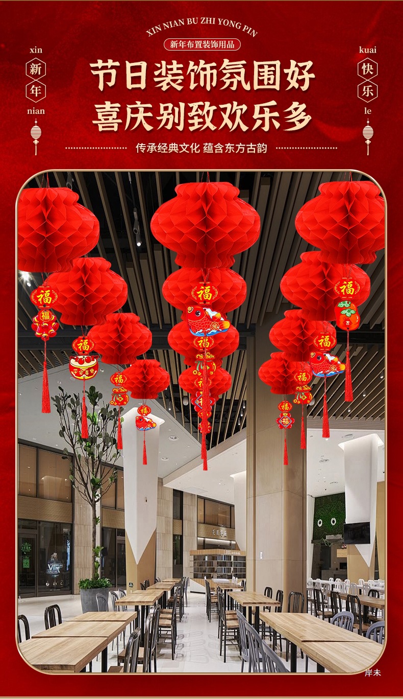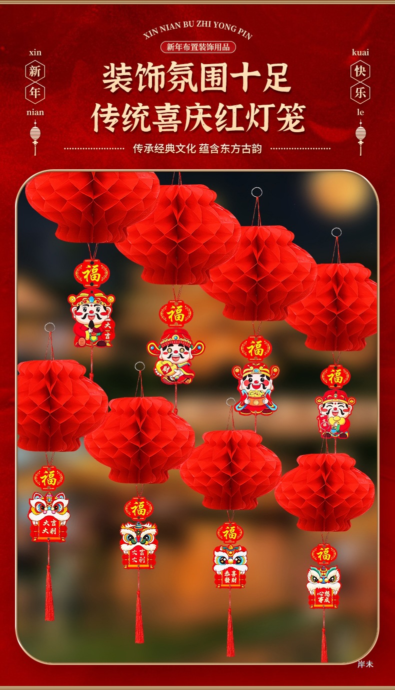 新年喜庆红色纸灯笼装饰2026新款结婚蜂窝挂饰装饰挂件小灯笼布置