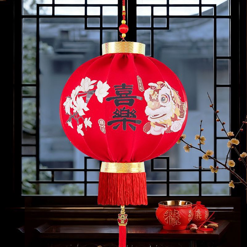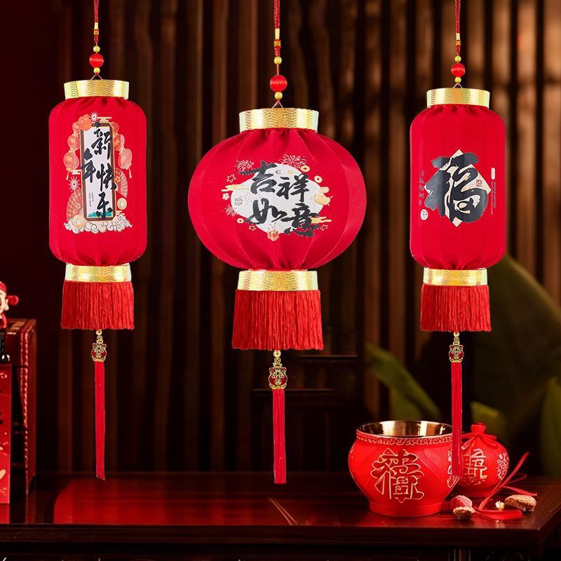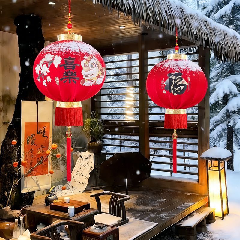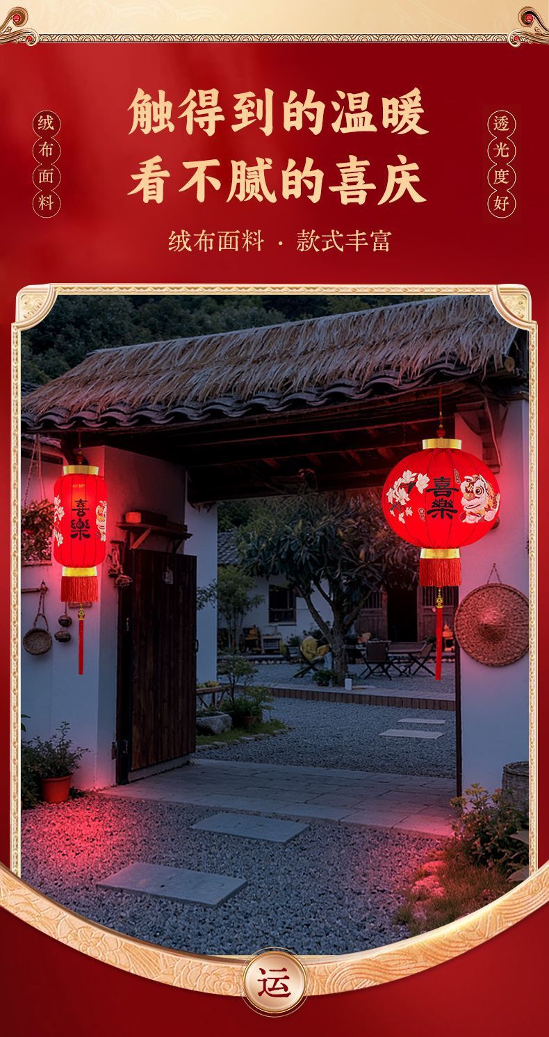 2026新年春节装饰灯笼新款植绒一对大门口阳台户外过年红灯笼