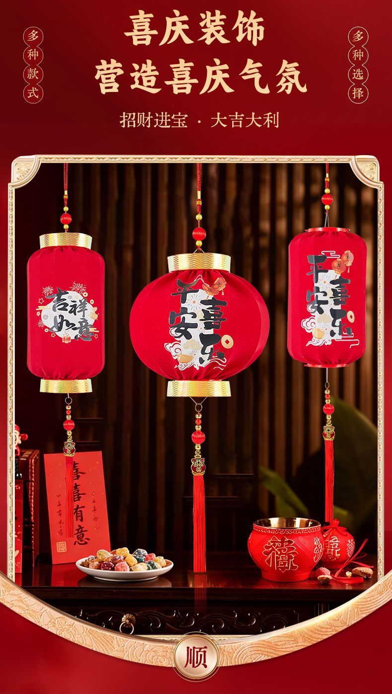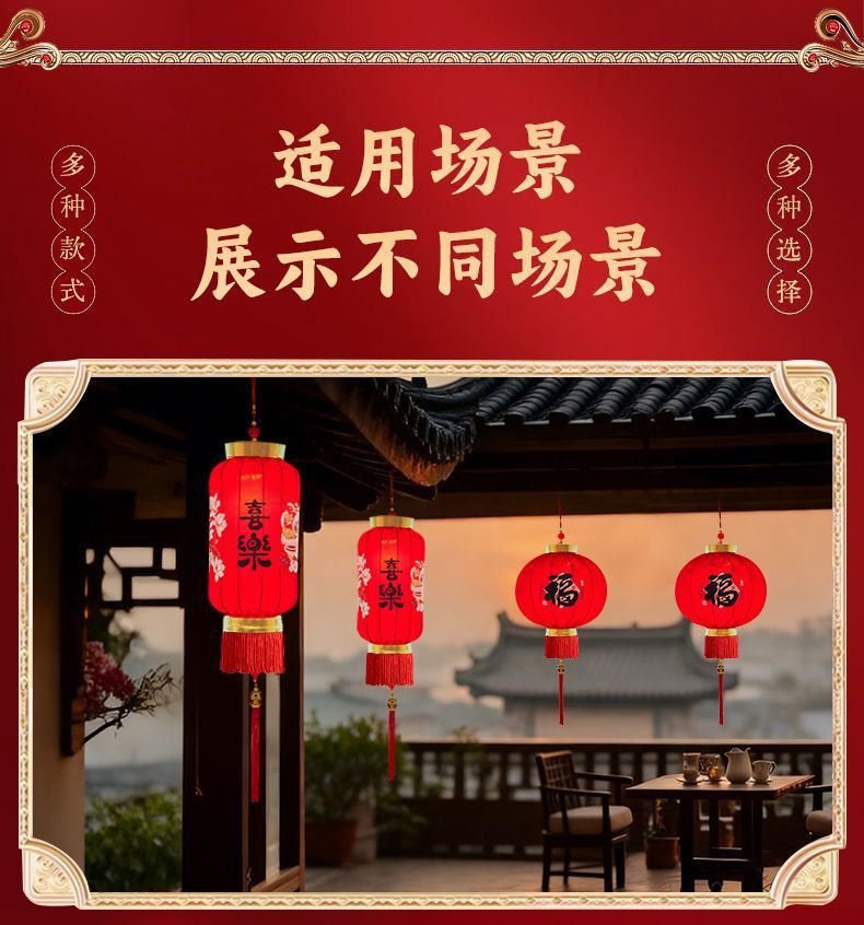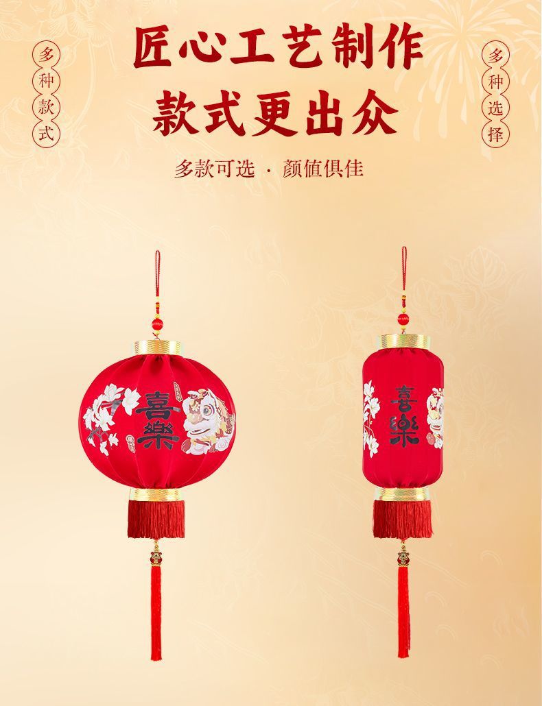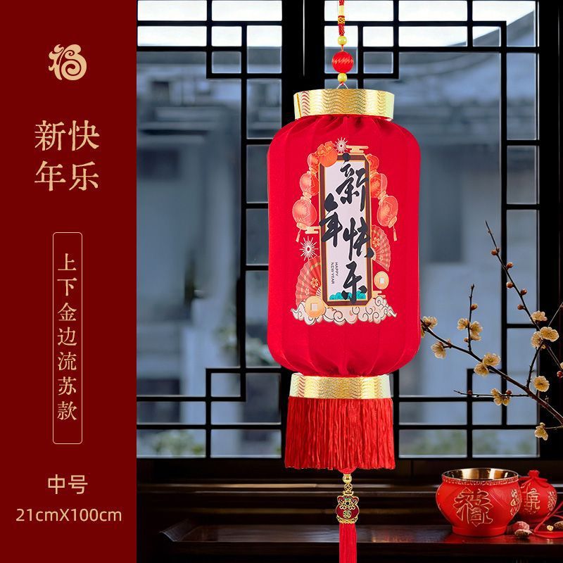 2026新年春节装饰灯笼新款植绒一对大门口阳台户外过年红灯笼
