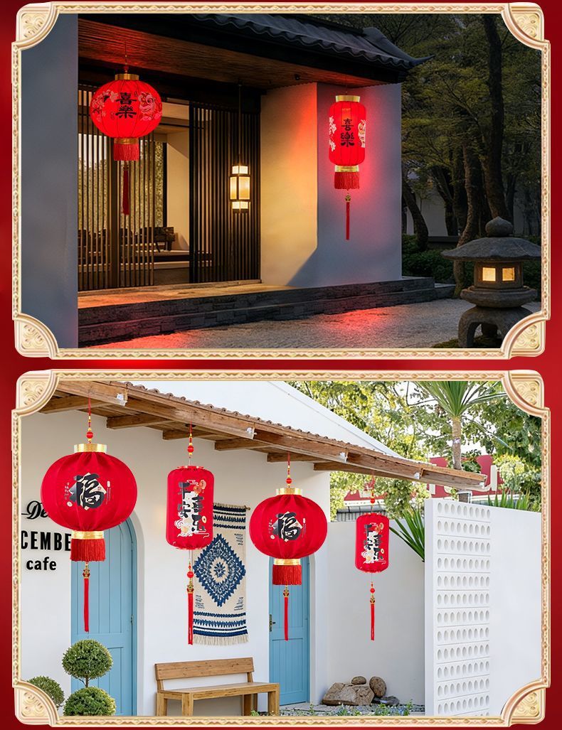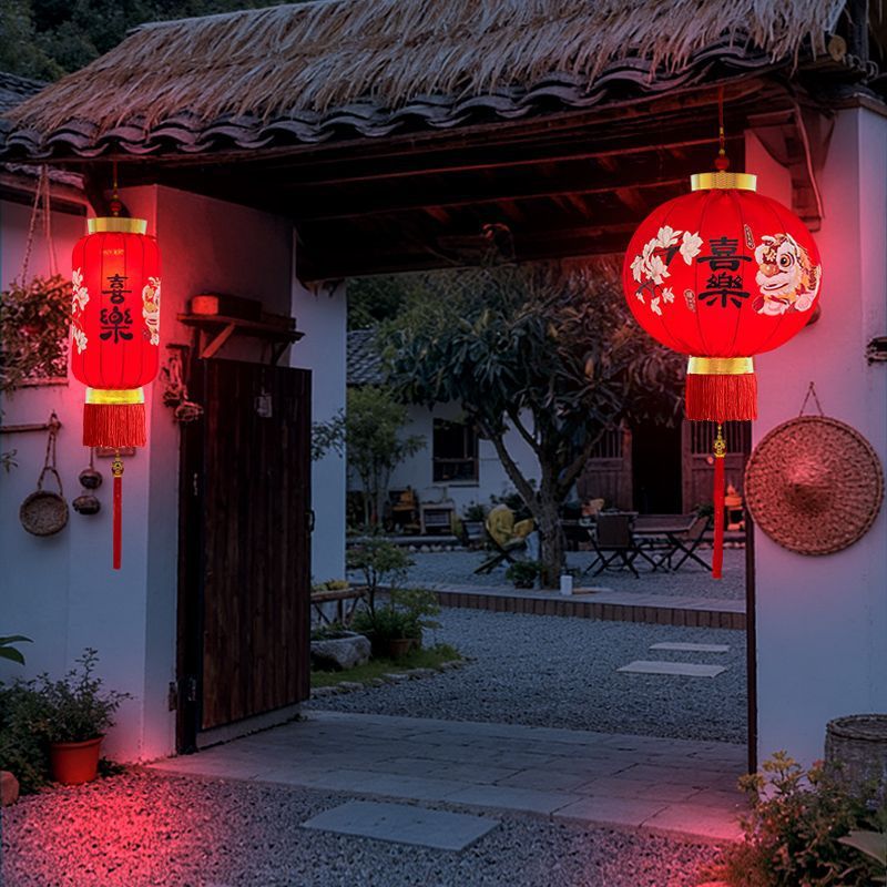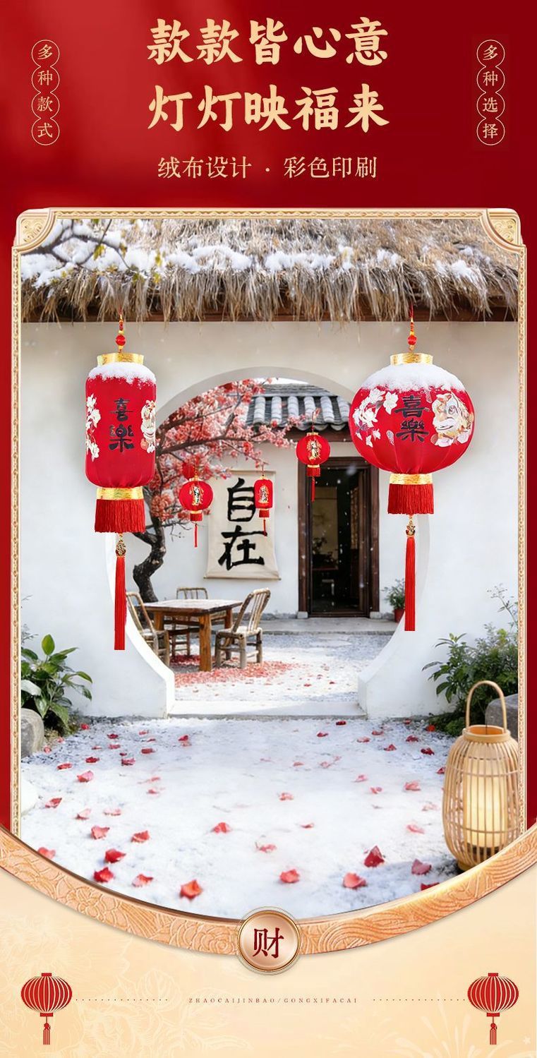 2026新年春节装饰灯笼新款植绒一对大门口阳台户外过年红灯笼