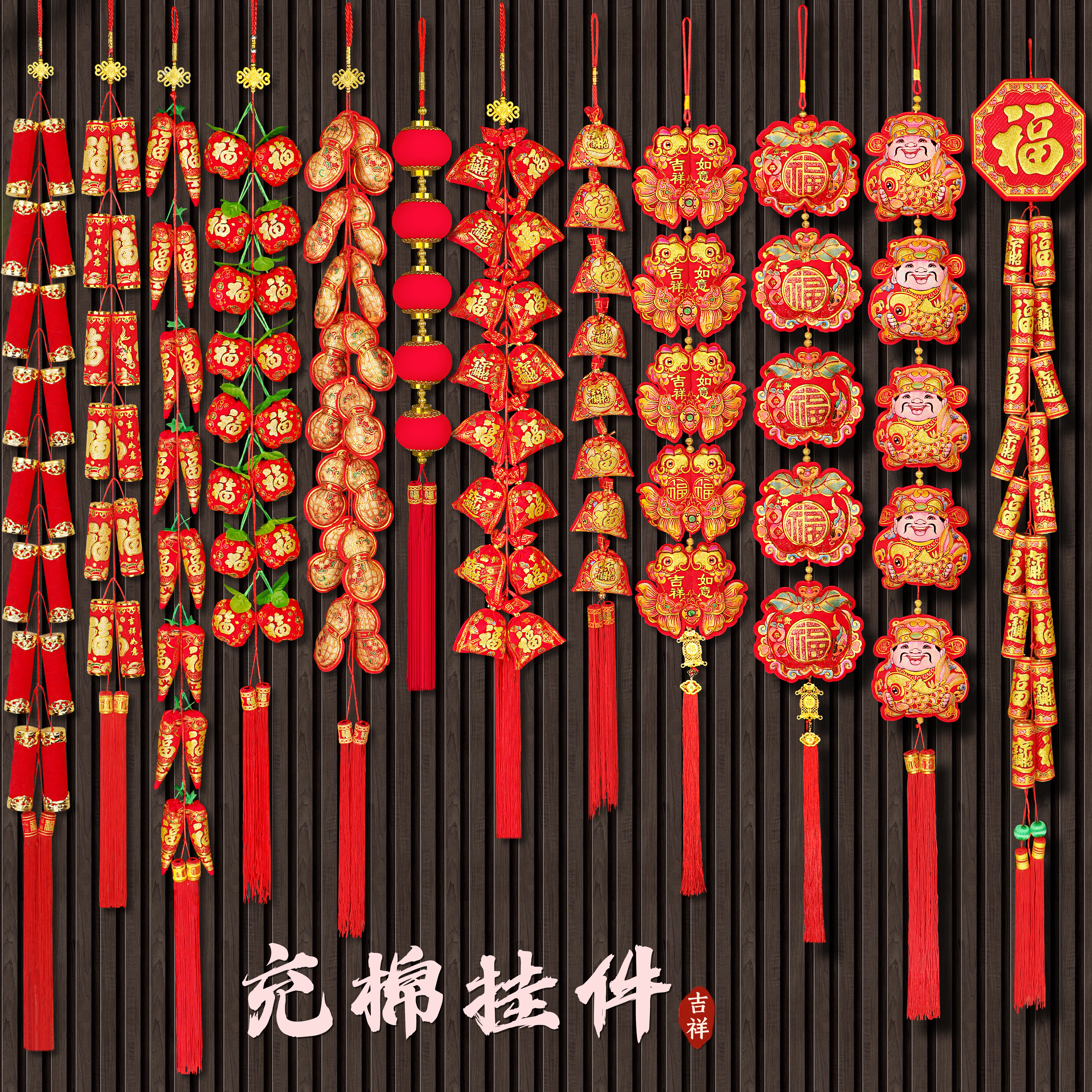 ✅新年挂件2026装饰用品春节喜庆过年鞭炮串福袋辣椒串灯笼客厅布
