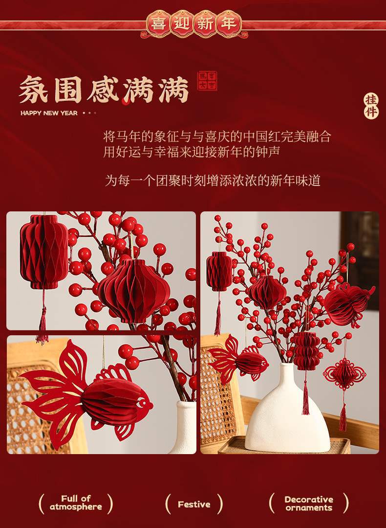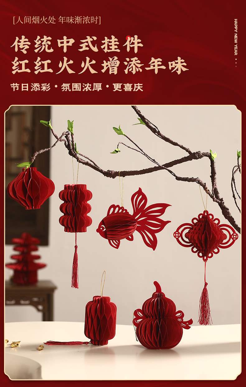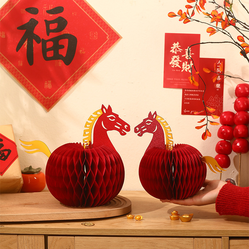 2026马年装饰蜂窝灯笼挂饰过年小挂件新年新款葫芦门挂春节布置