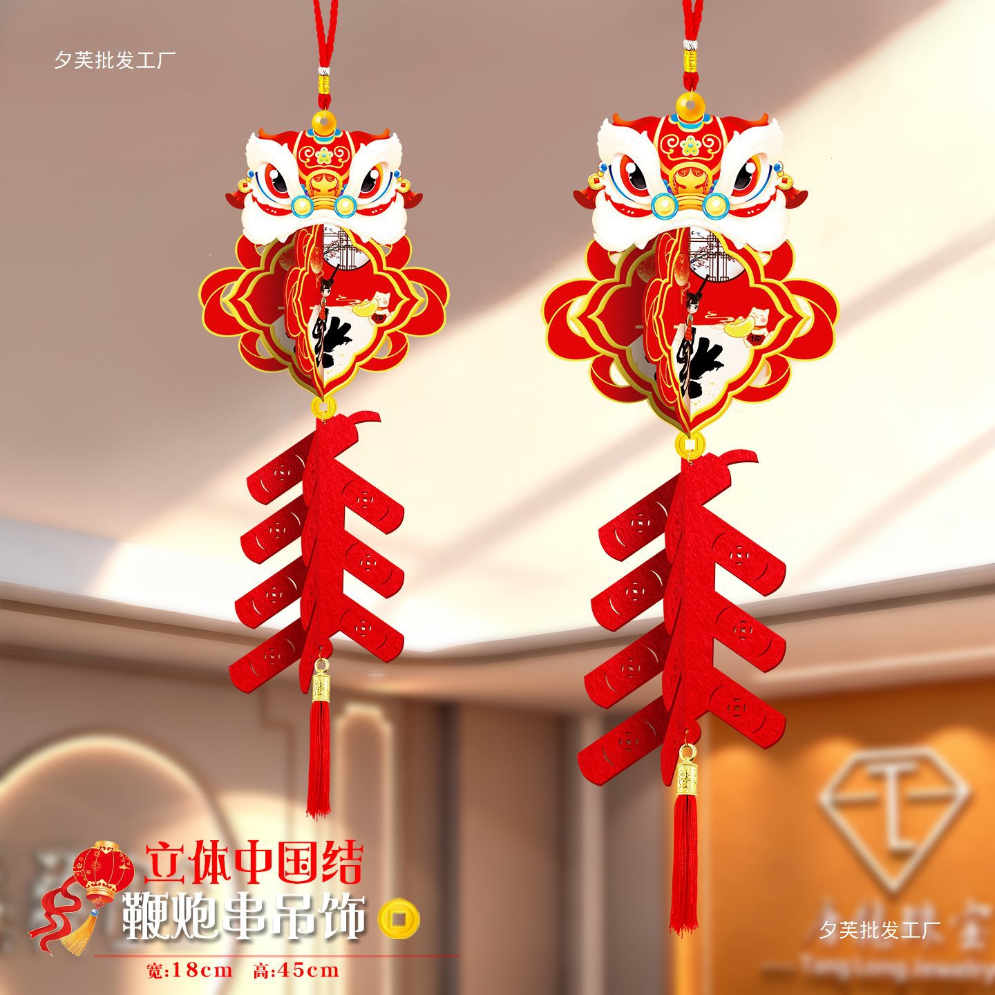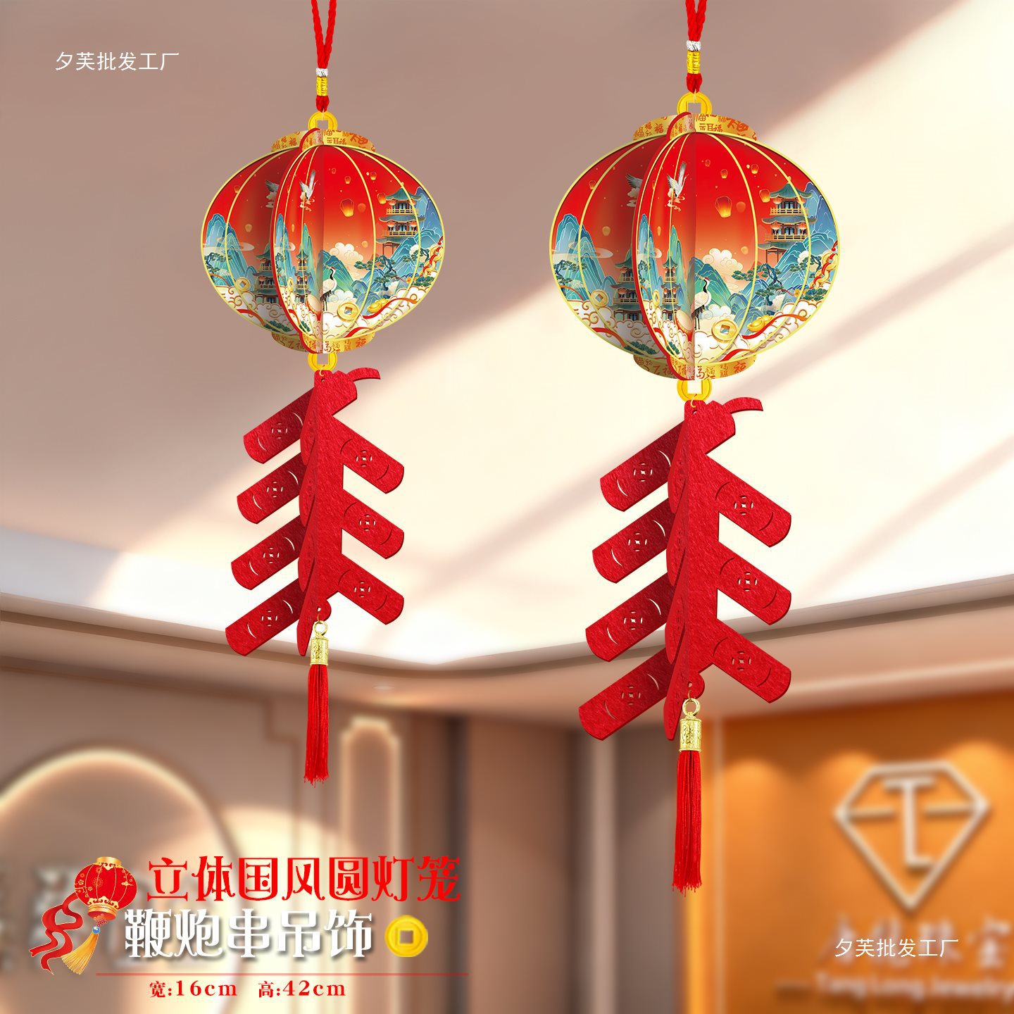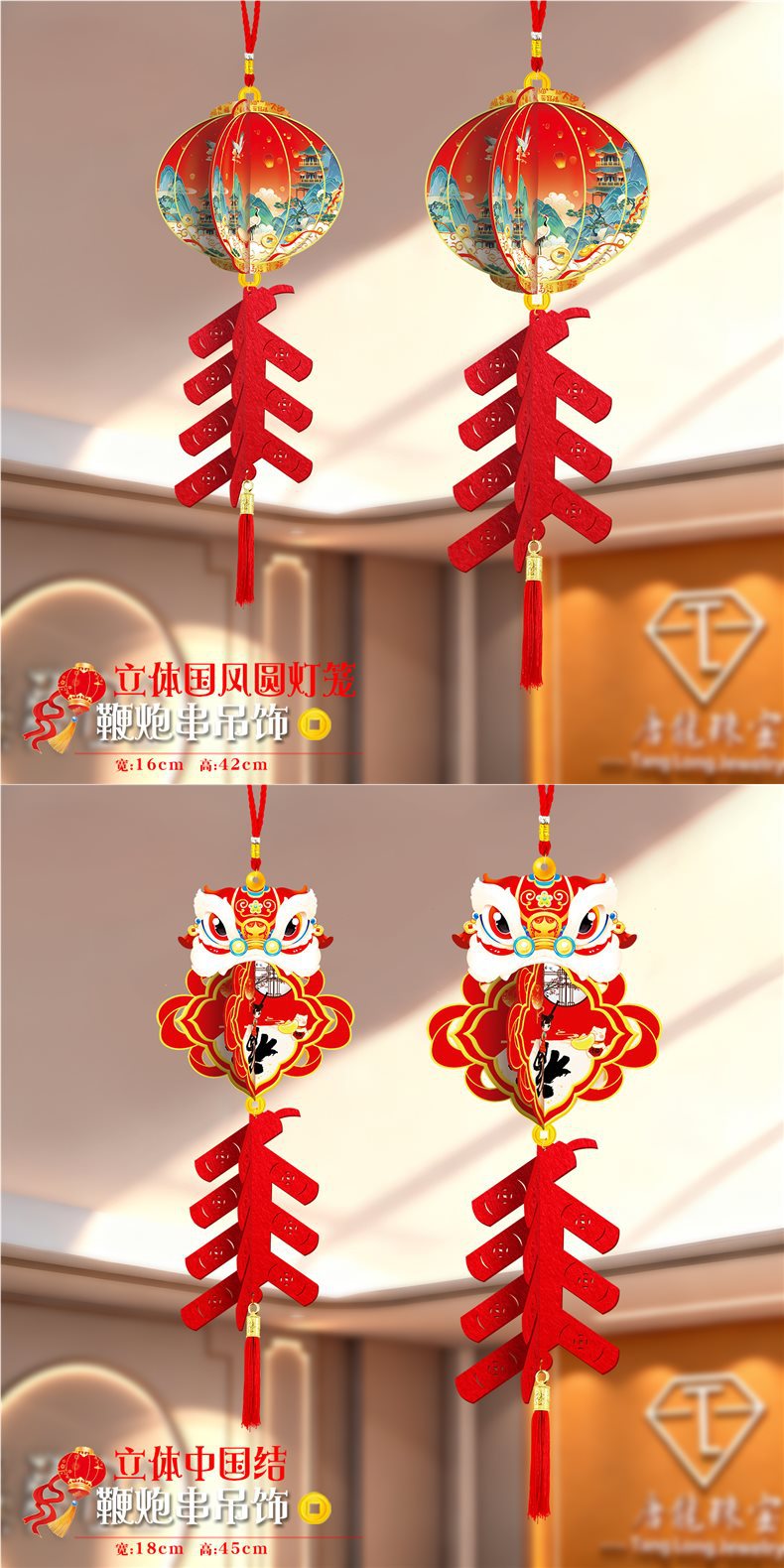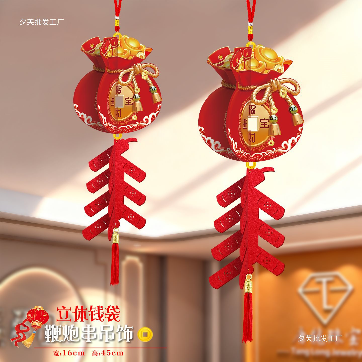 2026马年元旦新年鞭炮串灯笼吊饰开门红会场装饰春节商场吊顶挂件