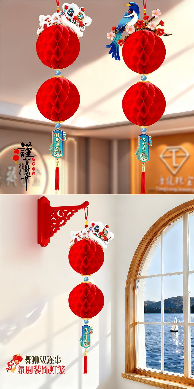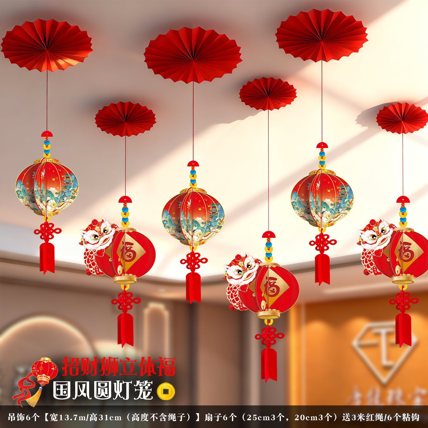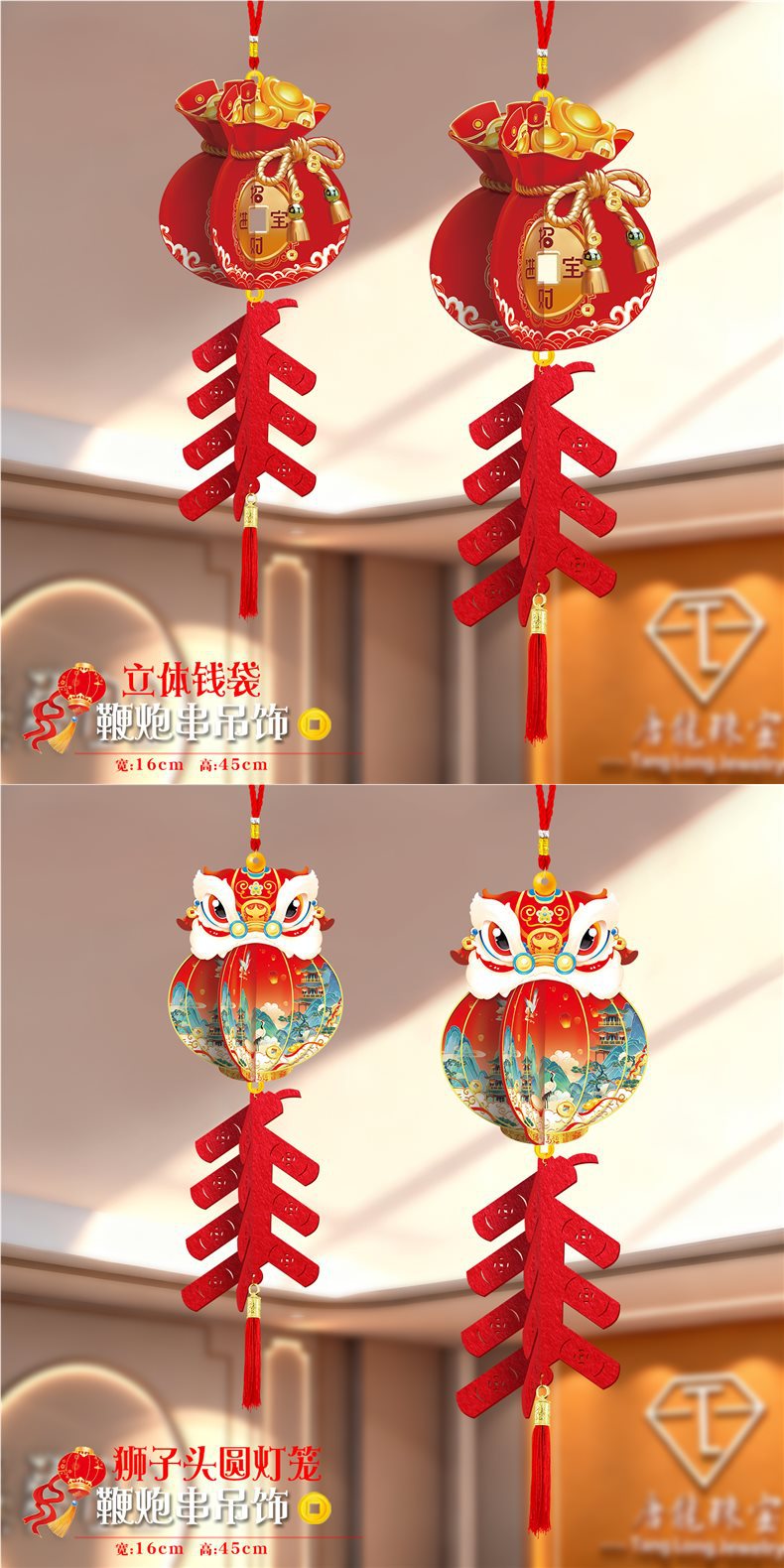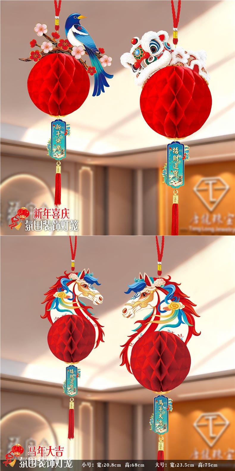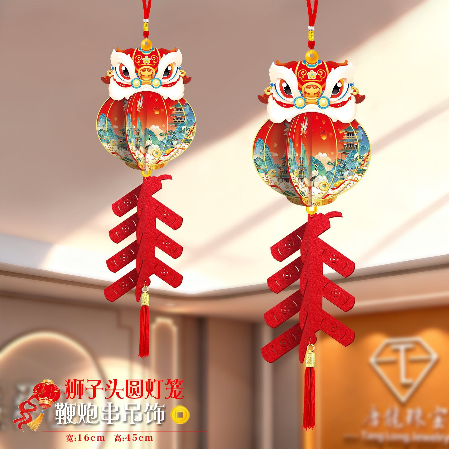 2026马年元旦新年鞭炮串灯笼吊饰开门红会场装饰春节商场吊顶挂件