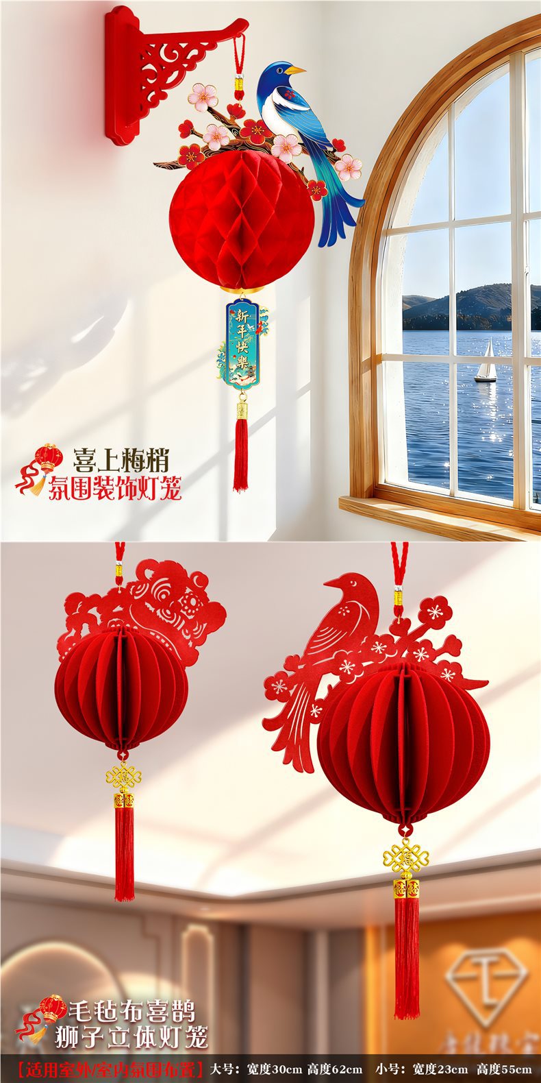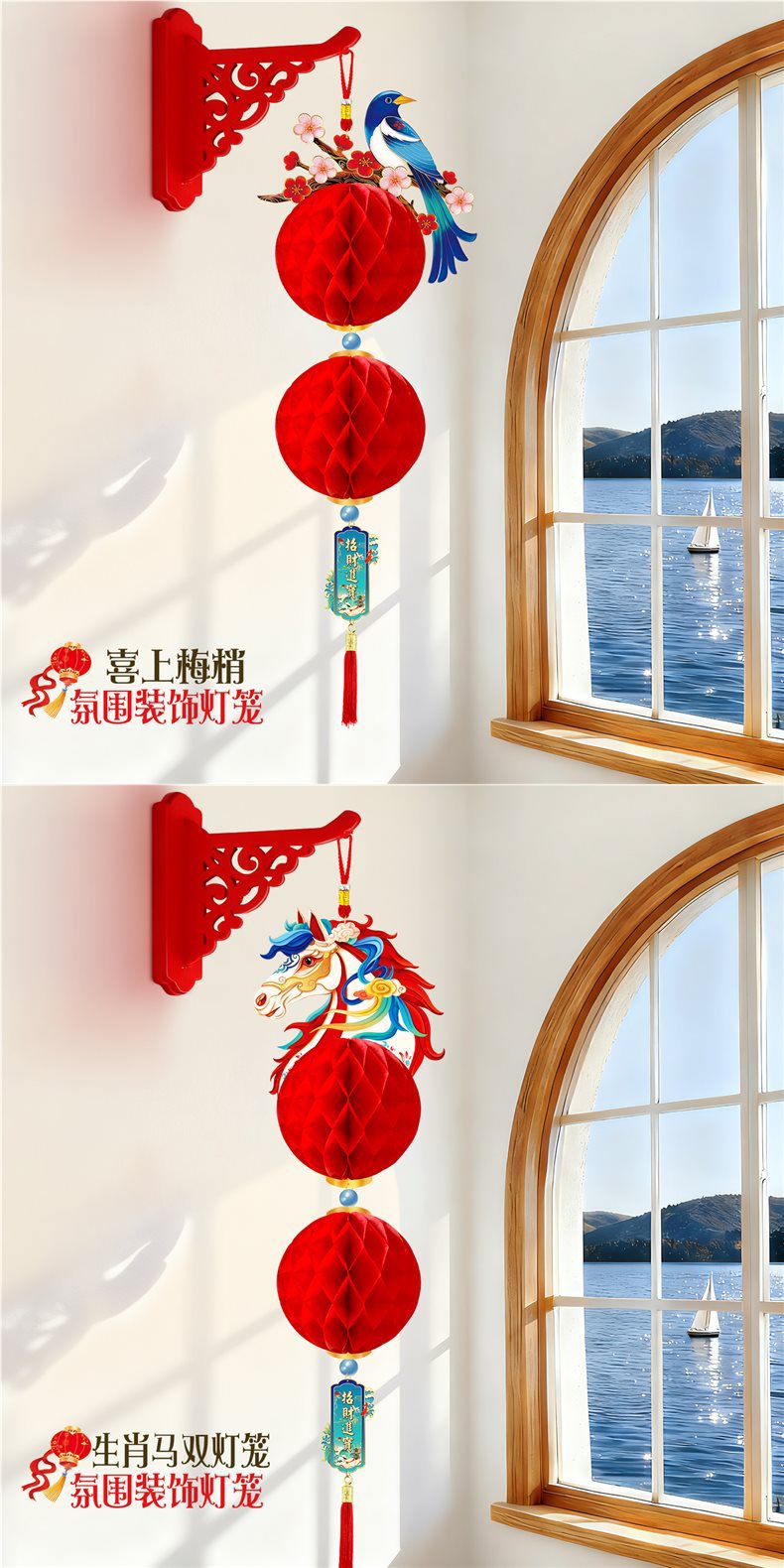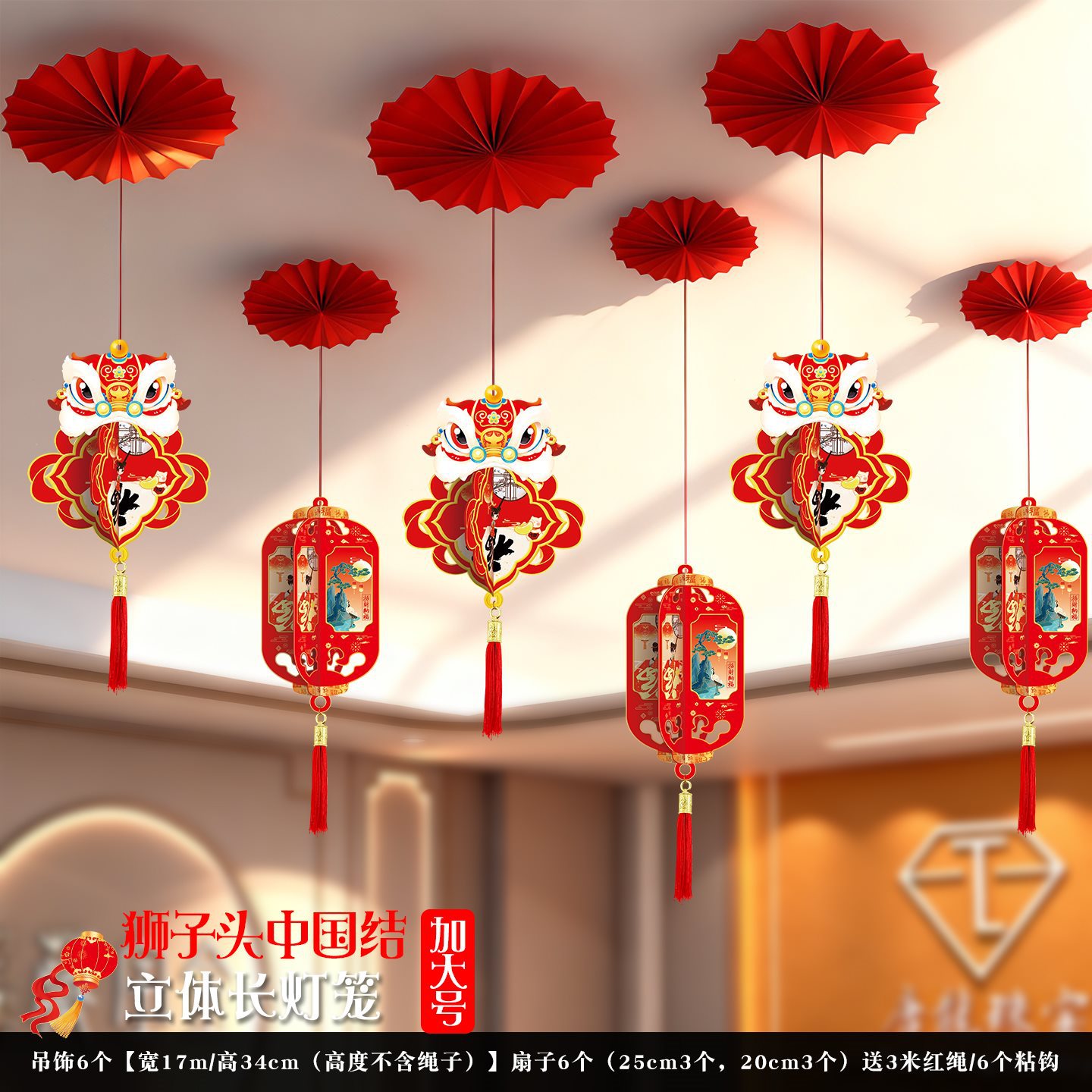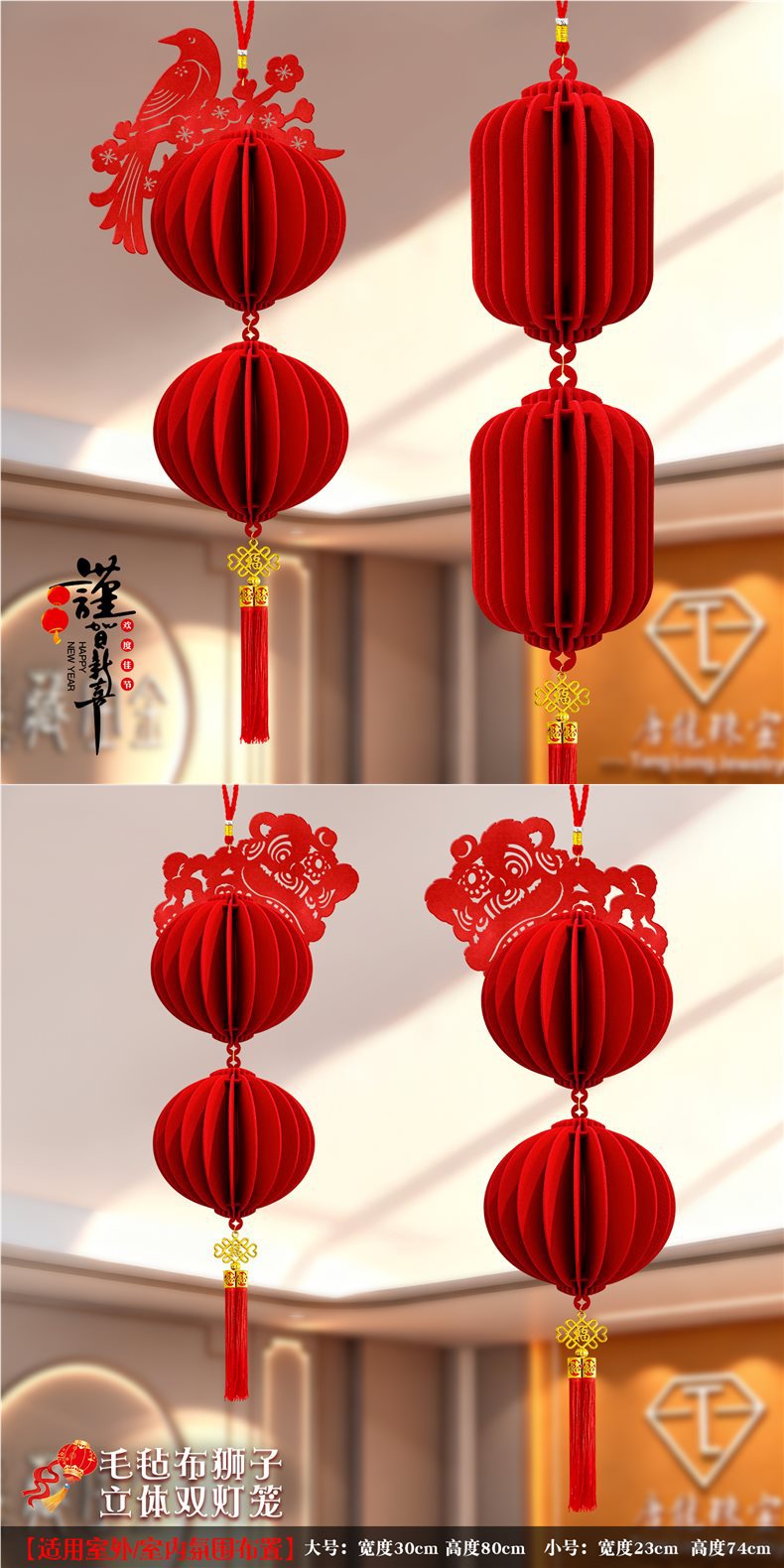 2026马年元旦新年鞭炮串灯笼吊饰开门红会场装饰春节商场吊顶挂件