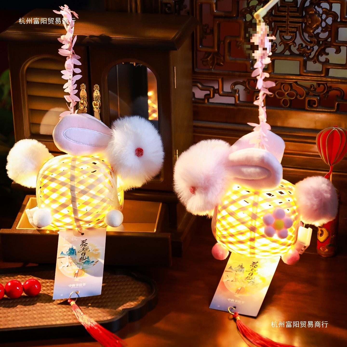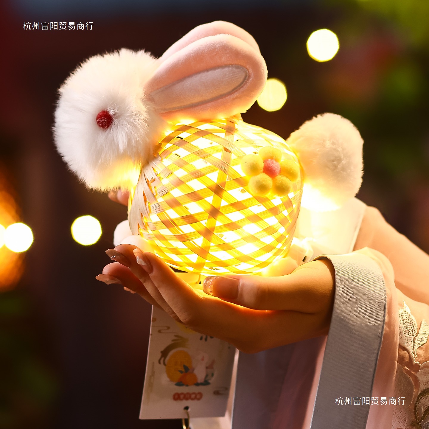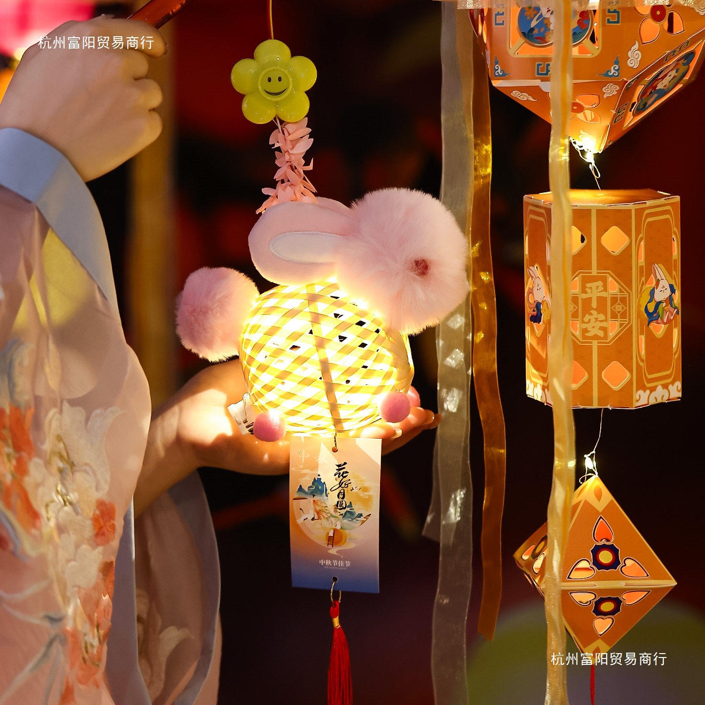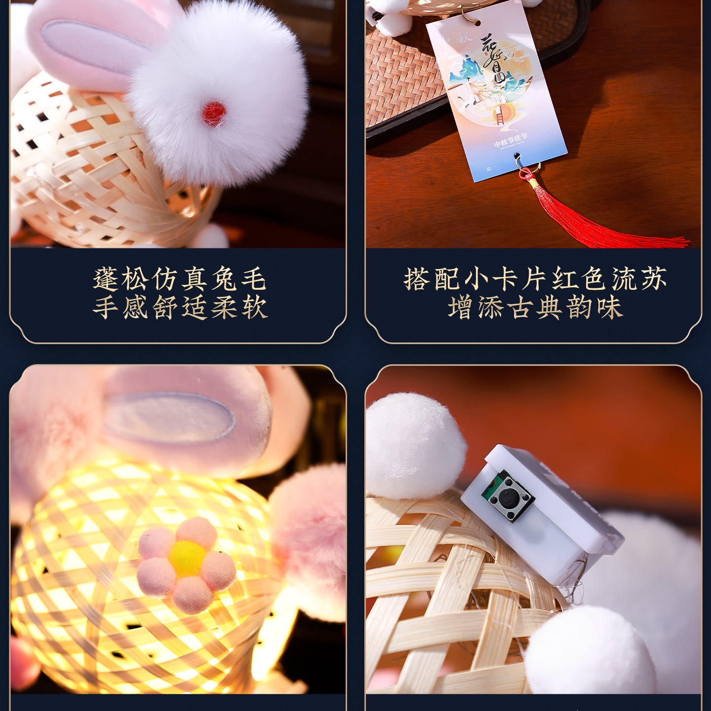 2025新款中秋节竹编灯笼手工幼儿园儿童户外手提发光兔子花灯