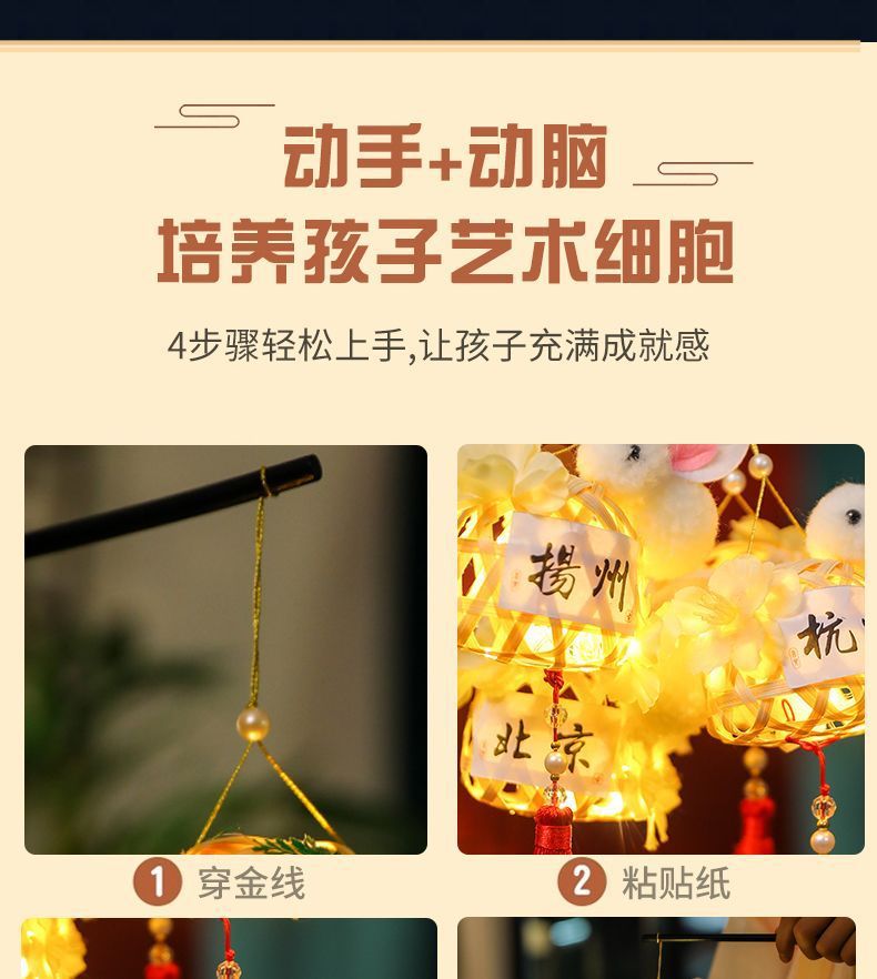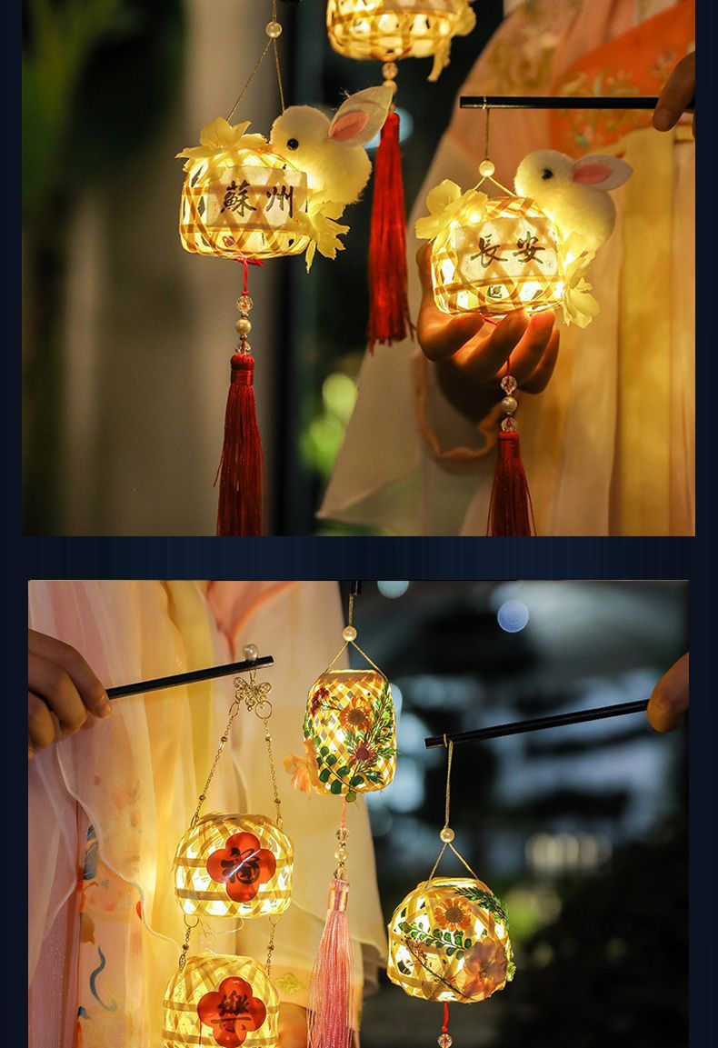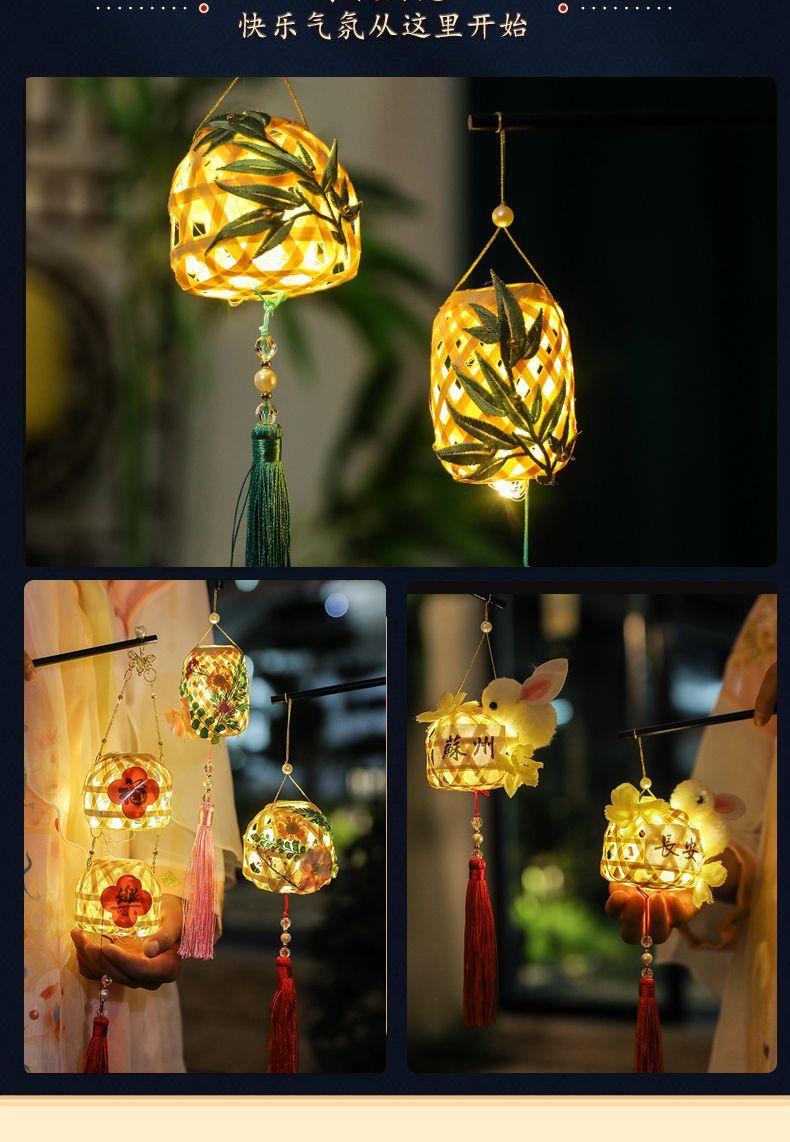 2025新年diy儿童手提灯笼古风新款潮汕竹编古风道具发光花灯手工