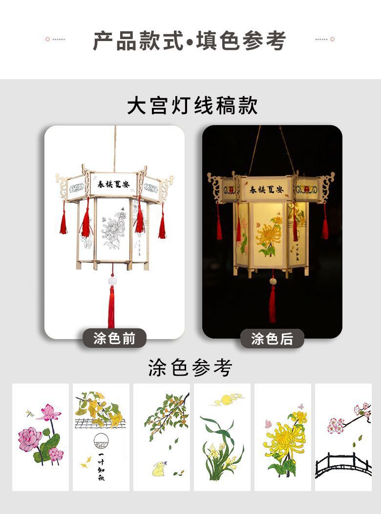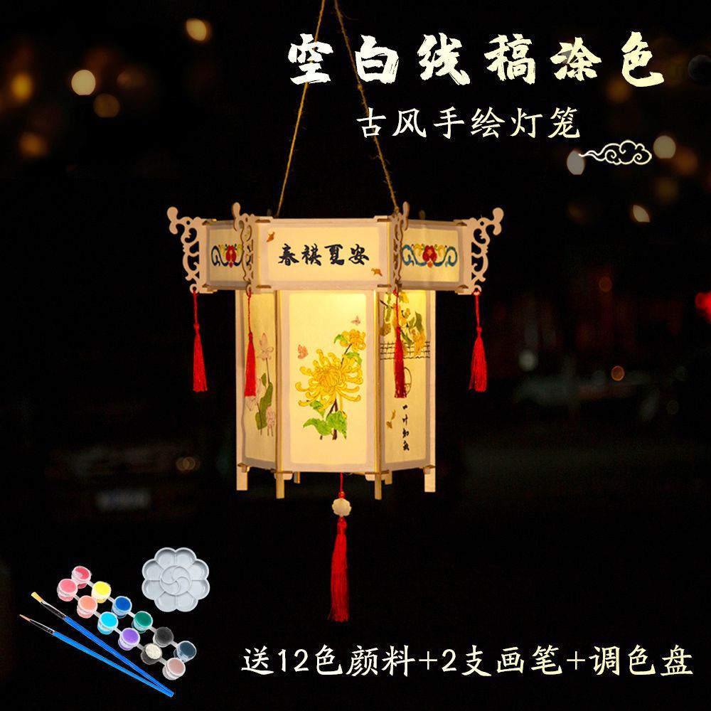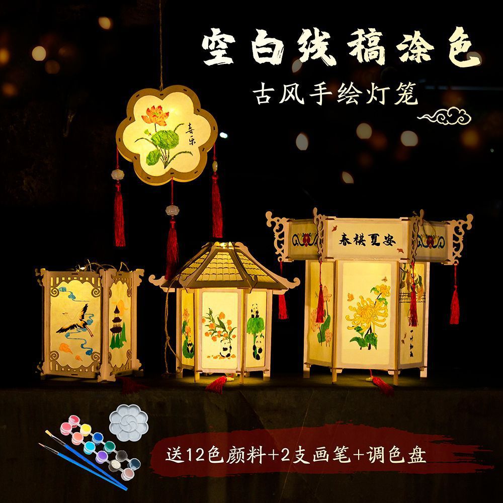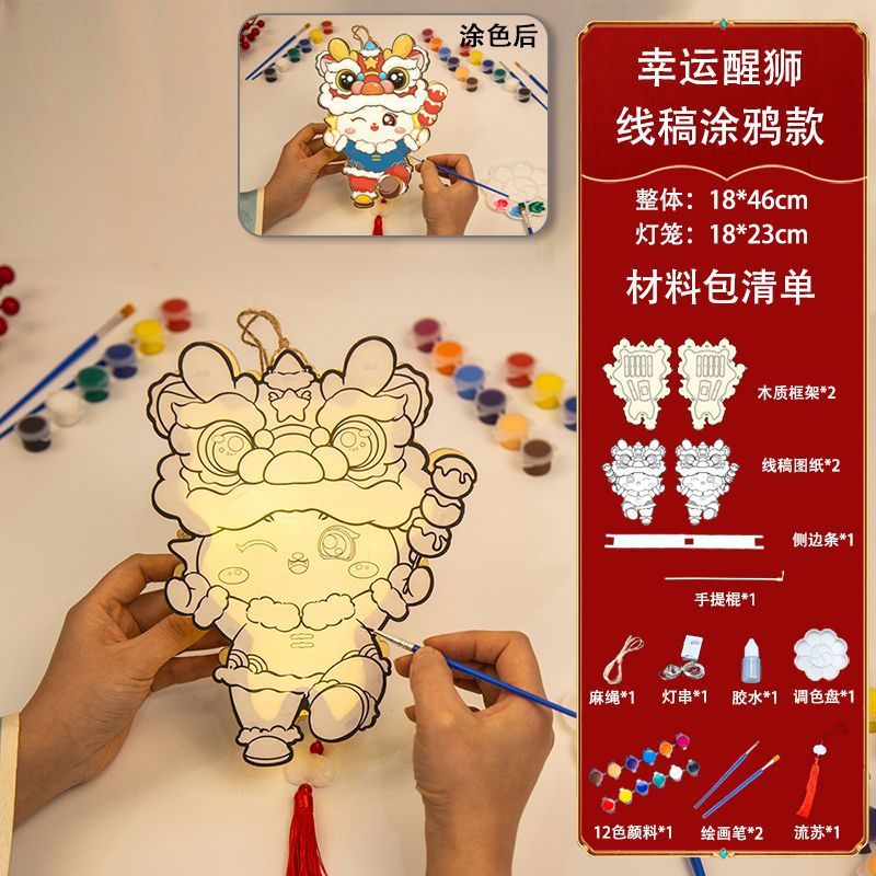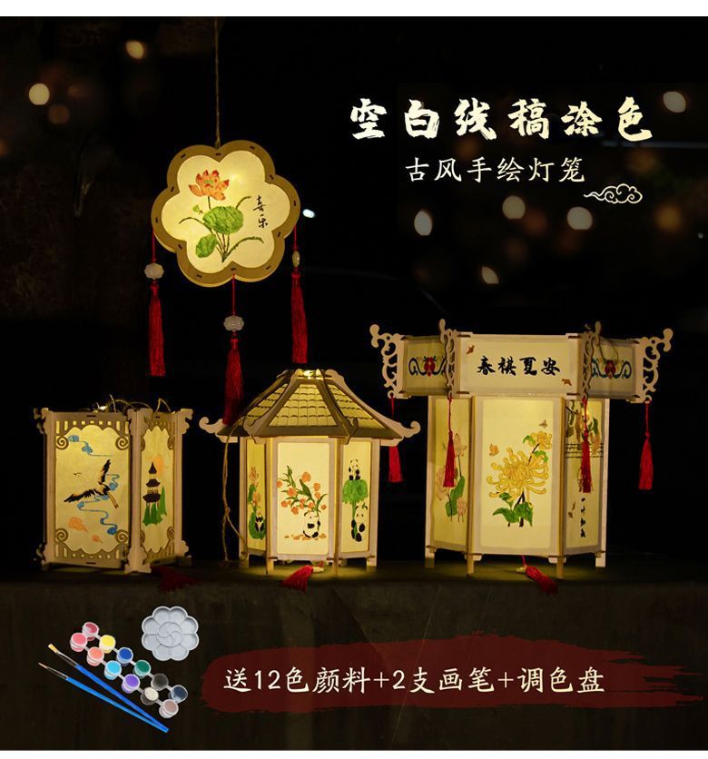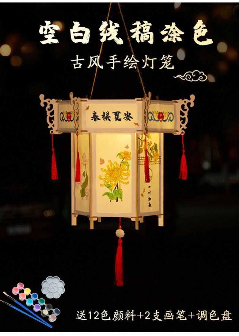 新款元宵节灯笼手工diy材料儿童绘画涂色蛇年非遗手提发光小花灯