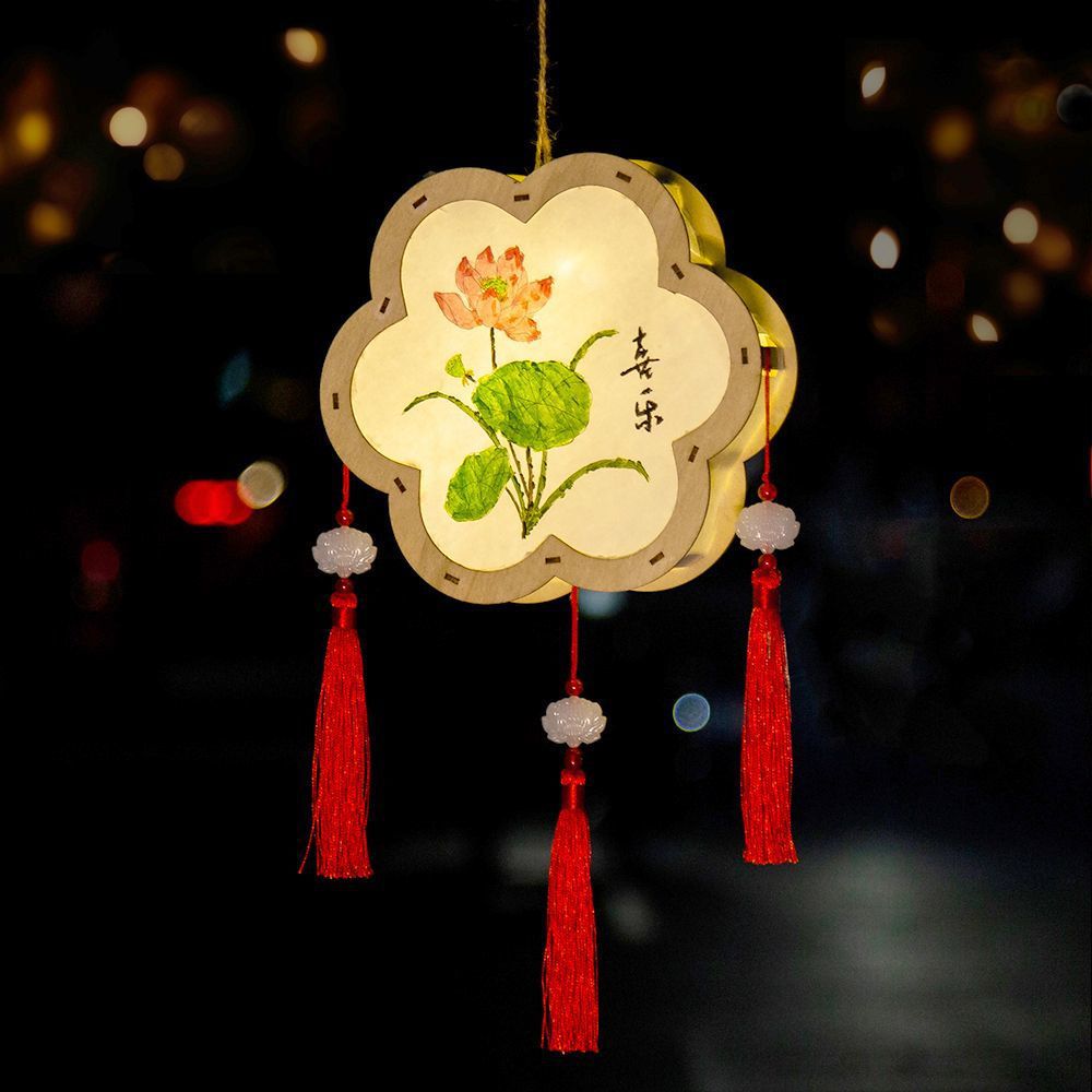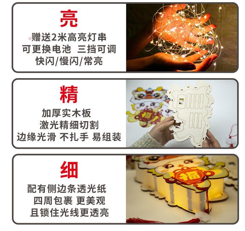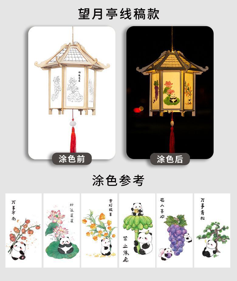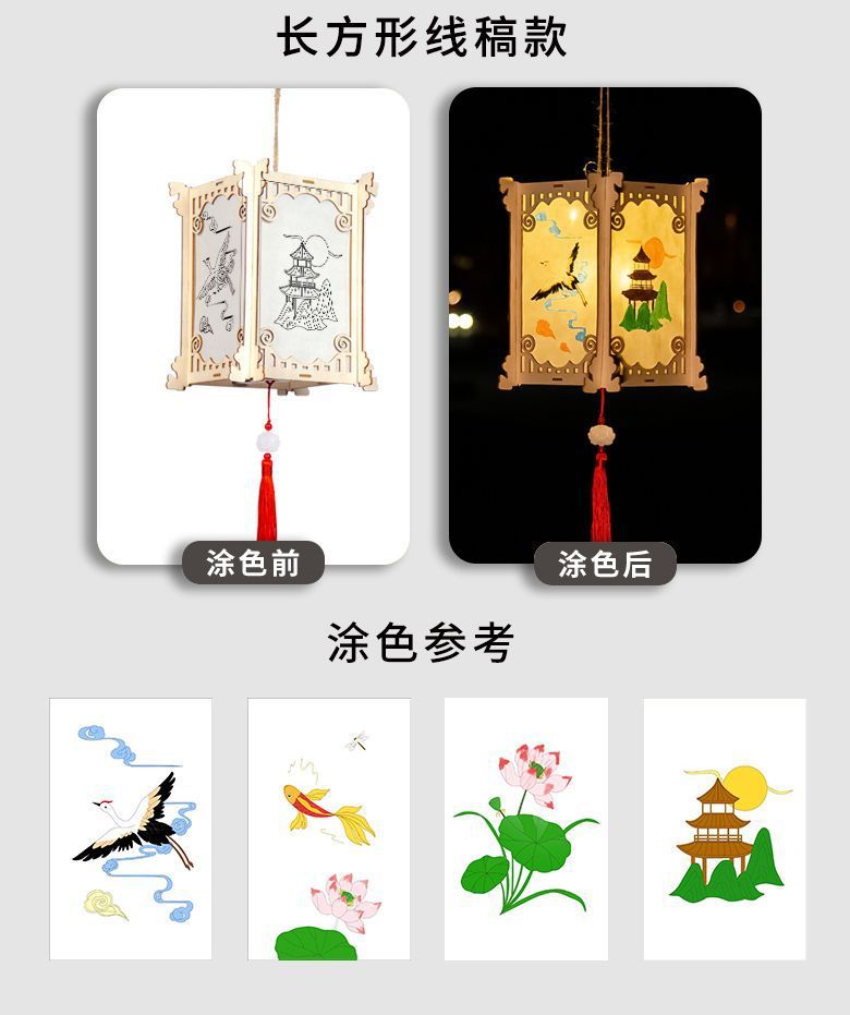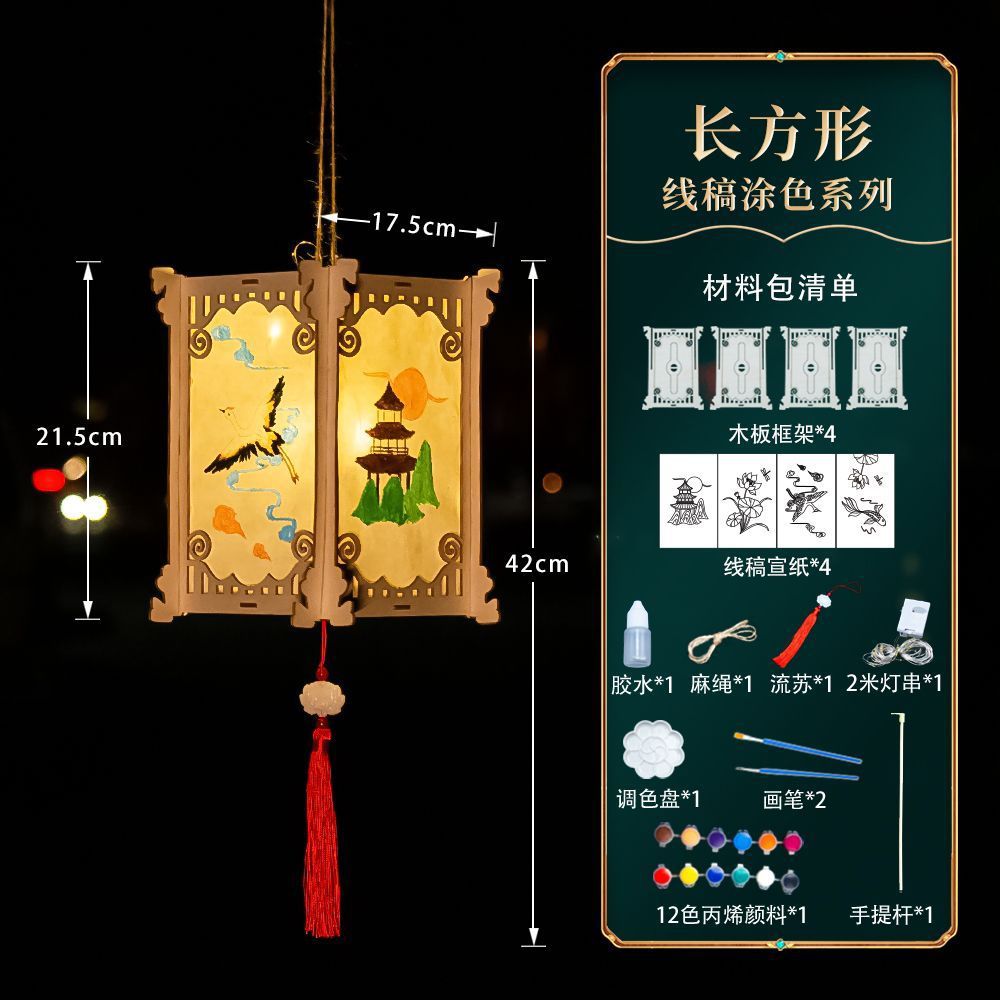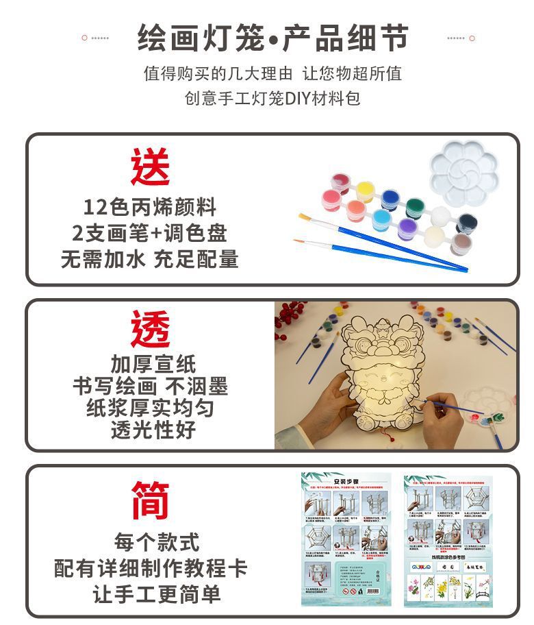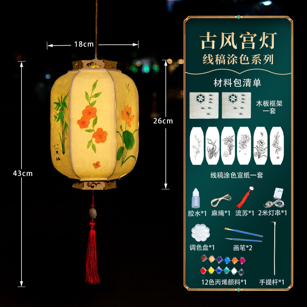 新款元宵节灯笼手工diy材料儿童绘画涂色蛇年非遗手提发光小花灯