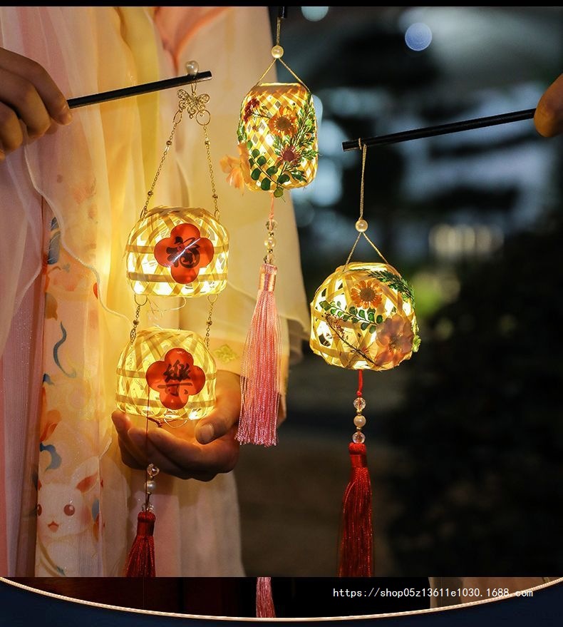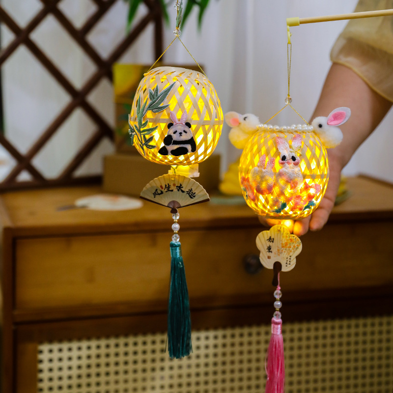 2025端午节刺绣竹叶竹编灯笼古风手持儿童手提发光花灯diy材料包
