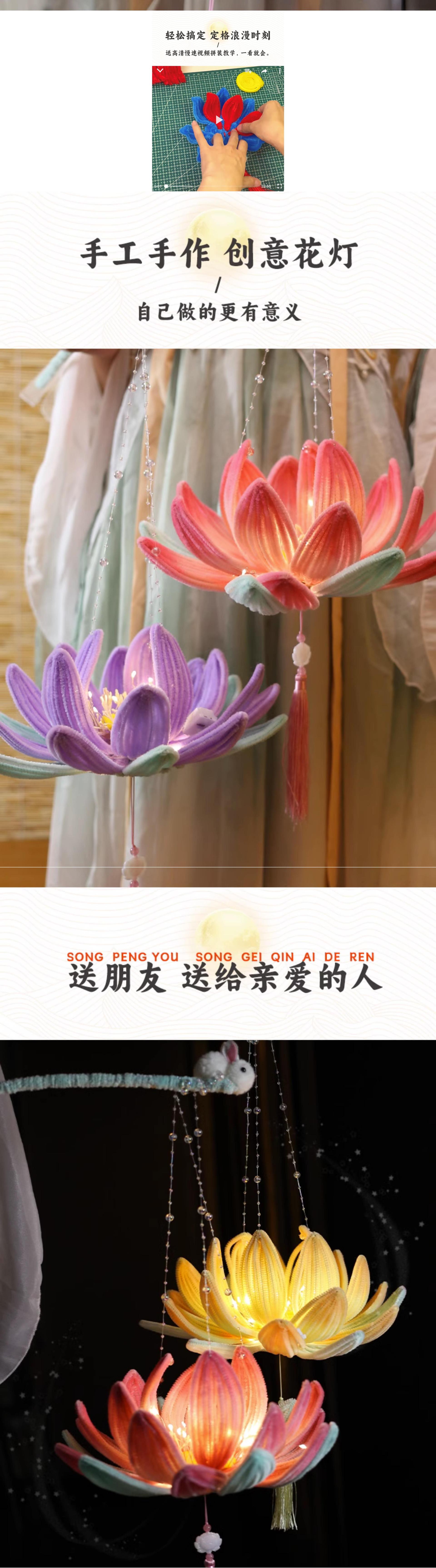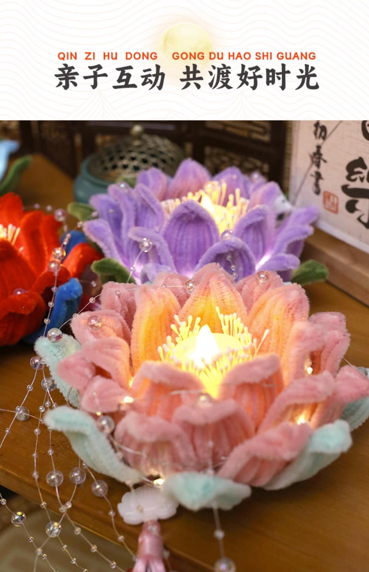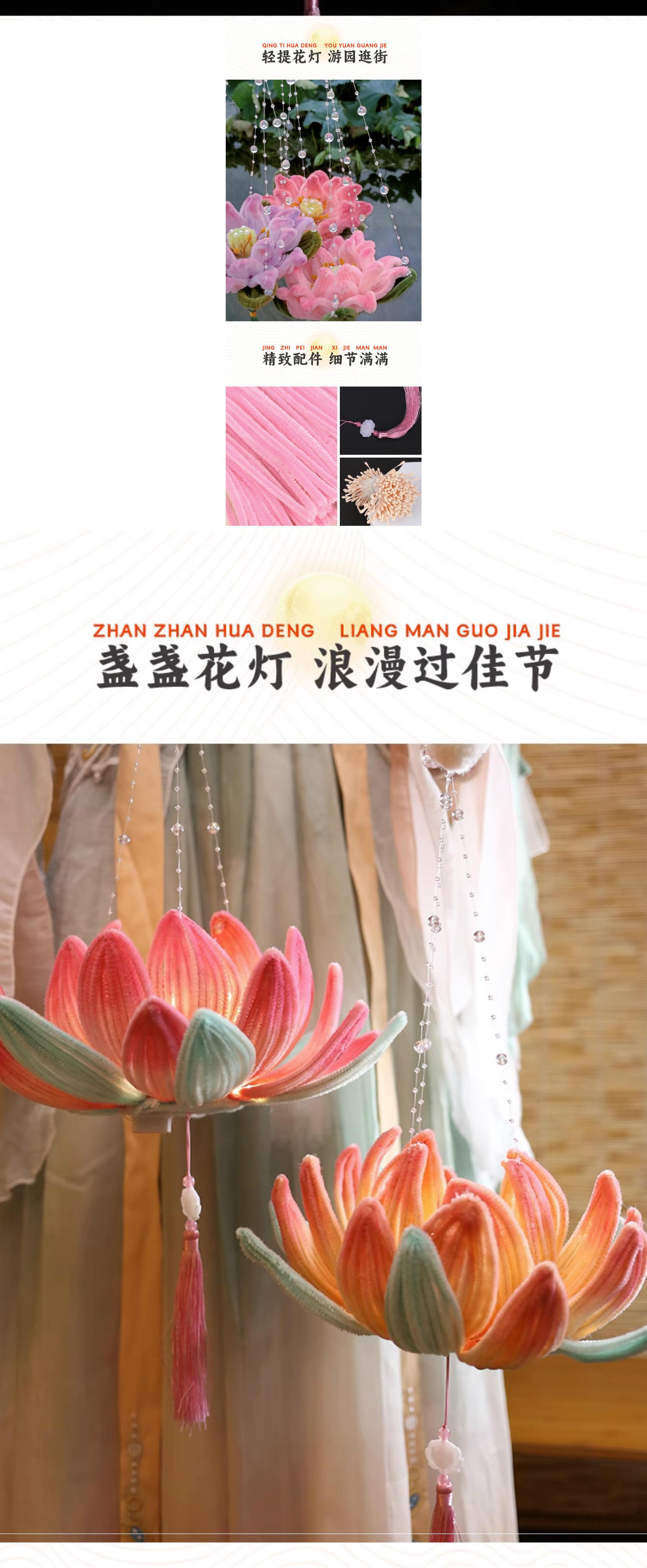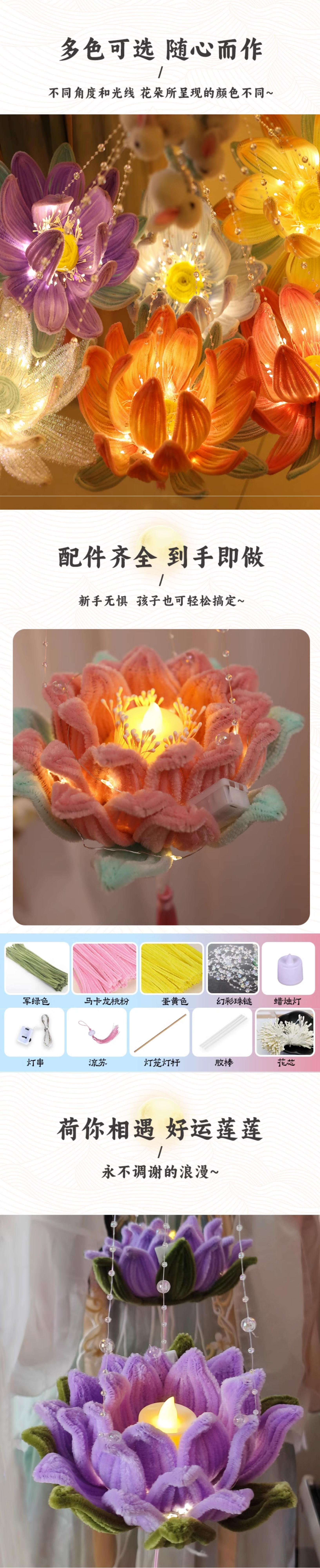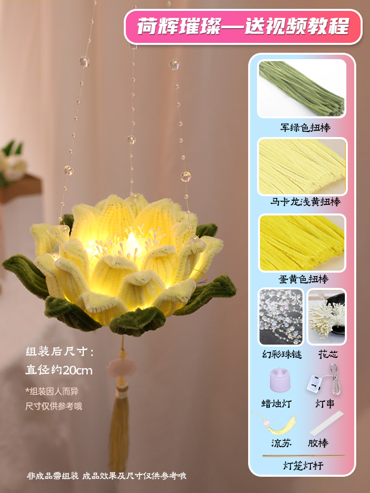 春节元宵节扭扭棒莲花灯灯笼diy手工材料包儿童自制手提大荷花灯