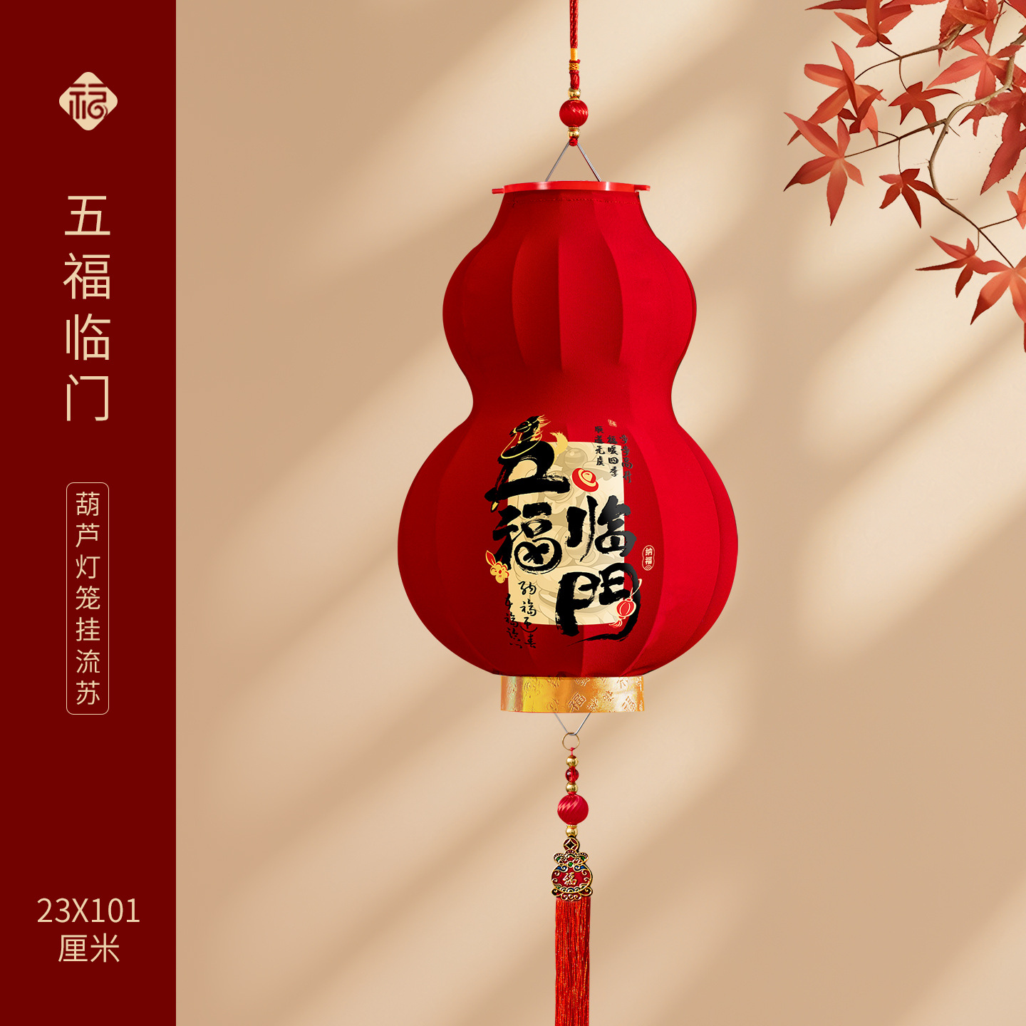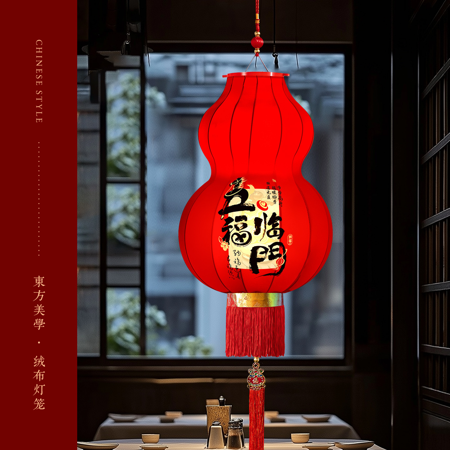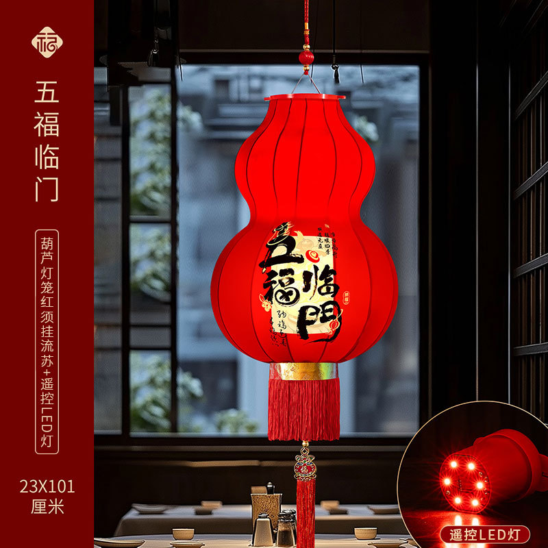 2026马年新款醒狮大红灯笼过年挂饰喜庆国风装饰绒布阳台灯笼一对