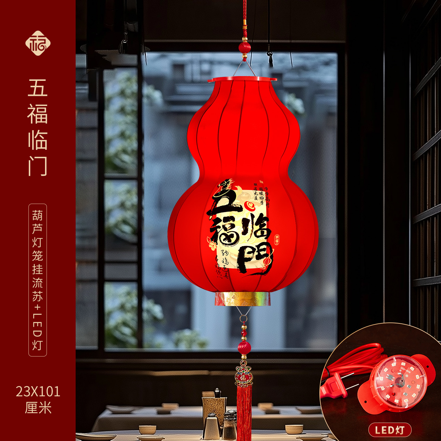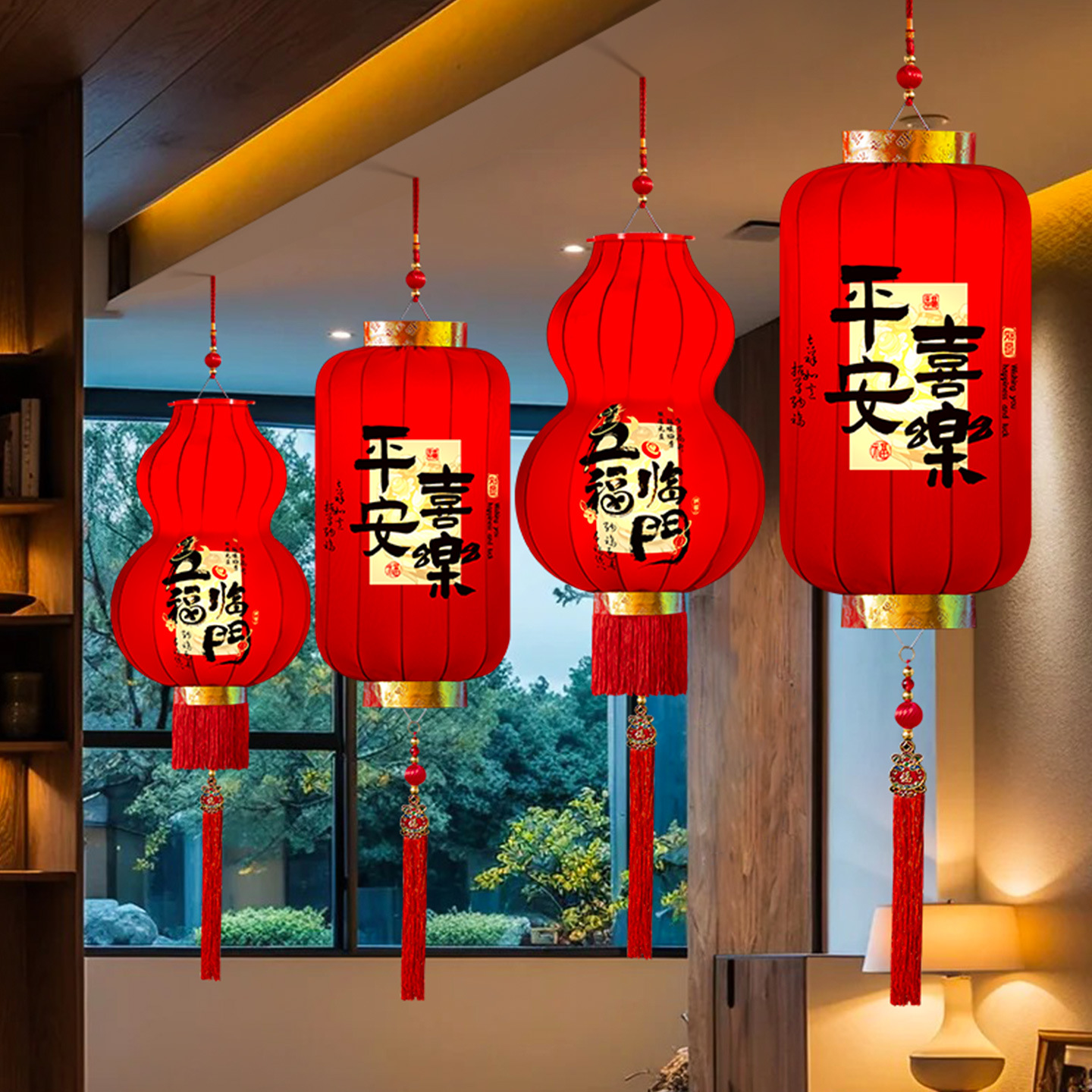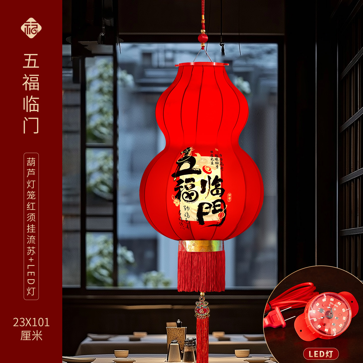 2026马年新款醒狮大红灯笼过年挂饰喜庆国风装饰绒布阳台灯笼一对