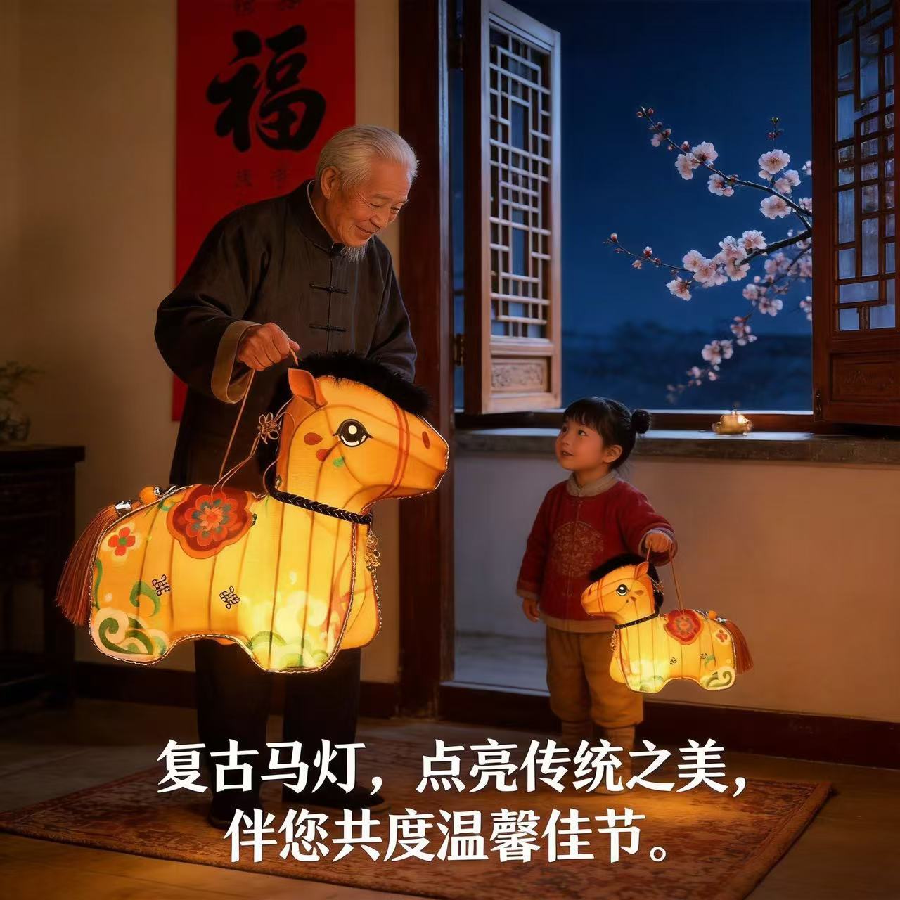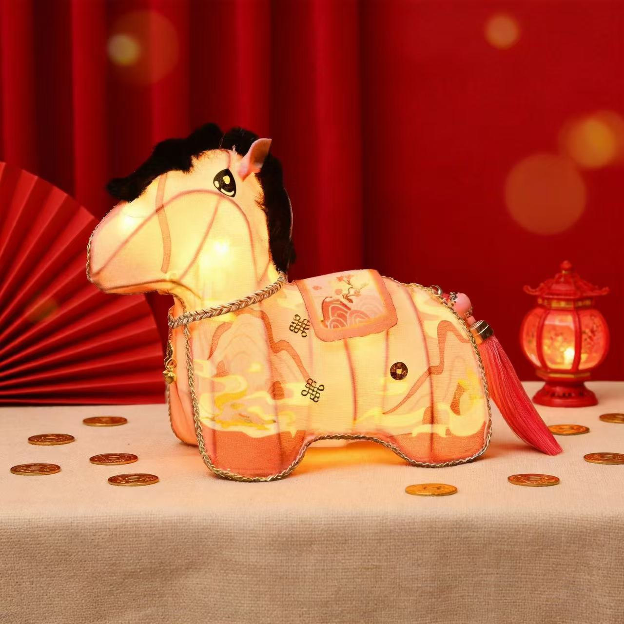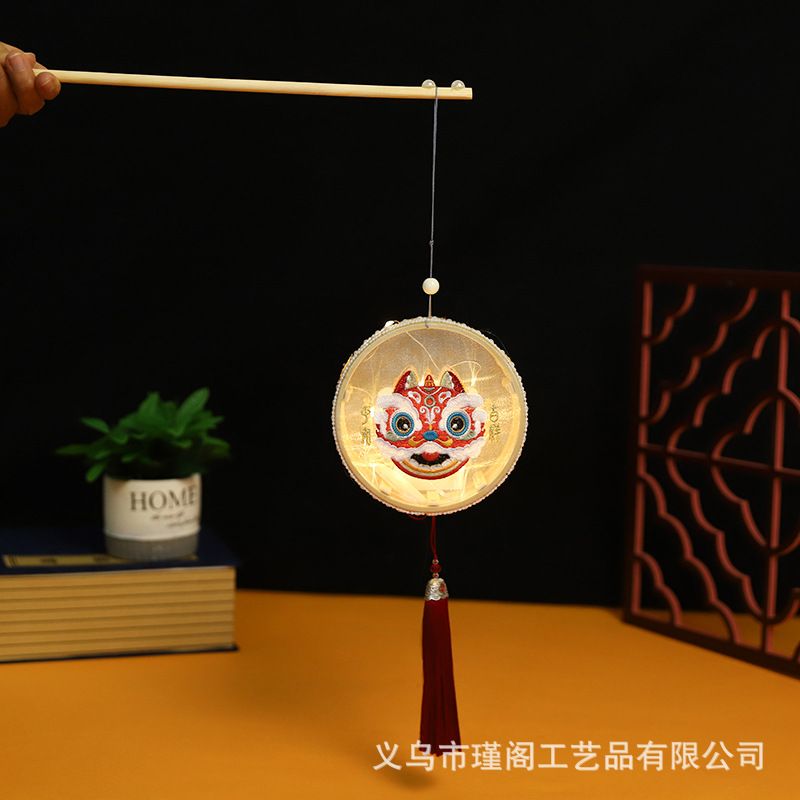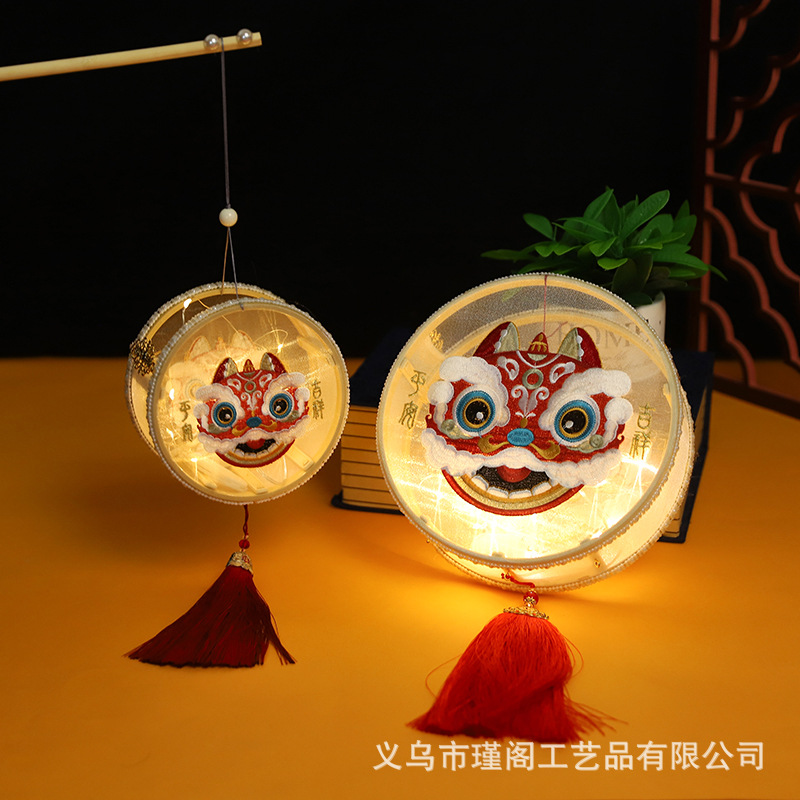 新年元宵灯 古风手提宫灯花灯 绣花醒狮宫马年宫灯年兽款