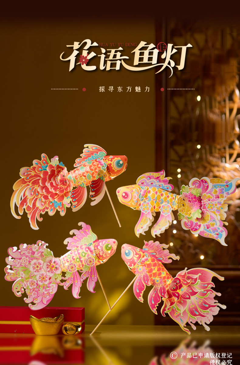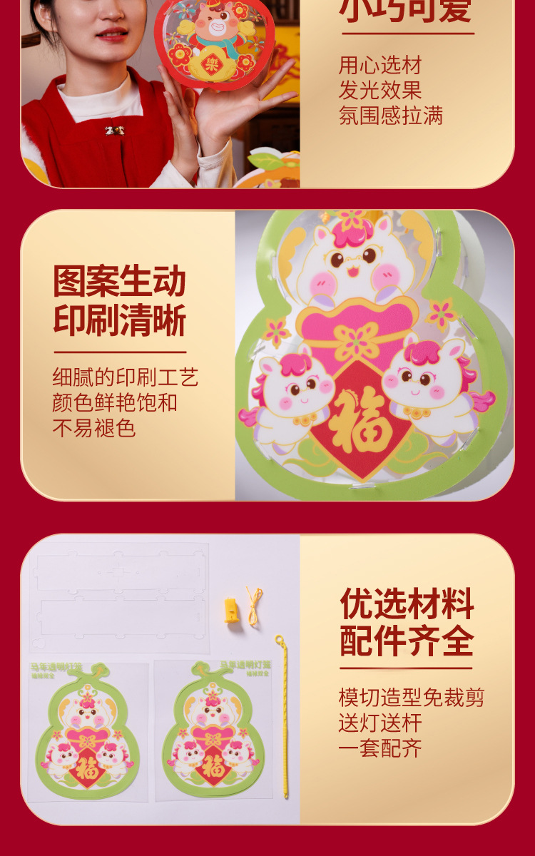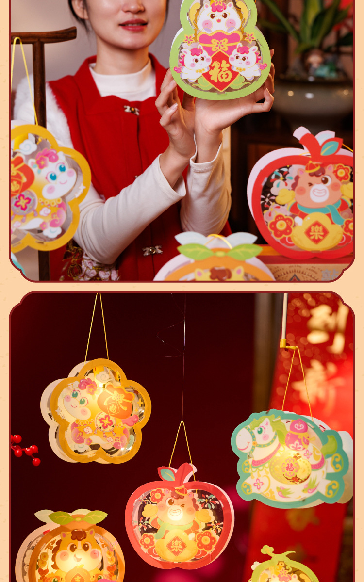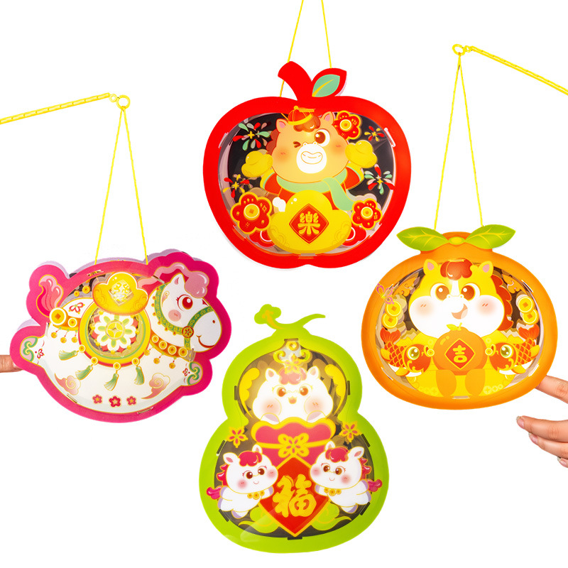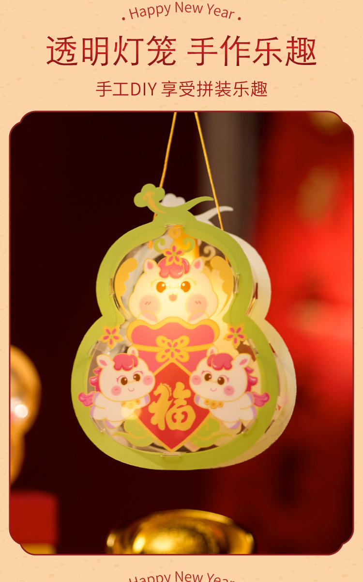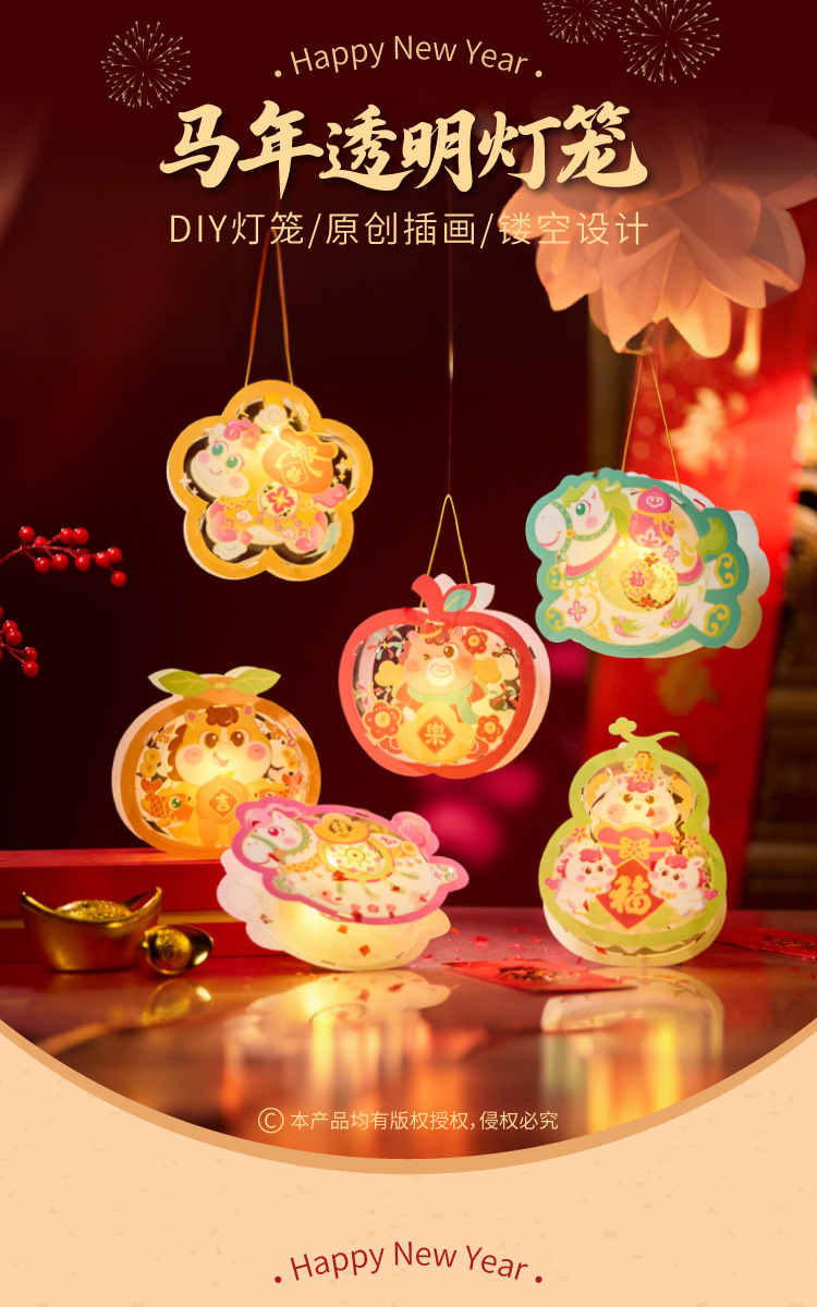 马年透明手提灯笼新春纳福鱼灯儿童手工材料国潮醒狮兔子花灯批发