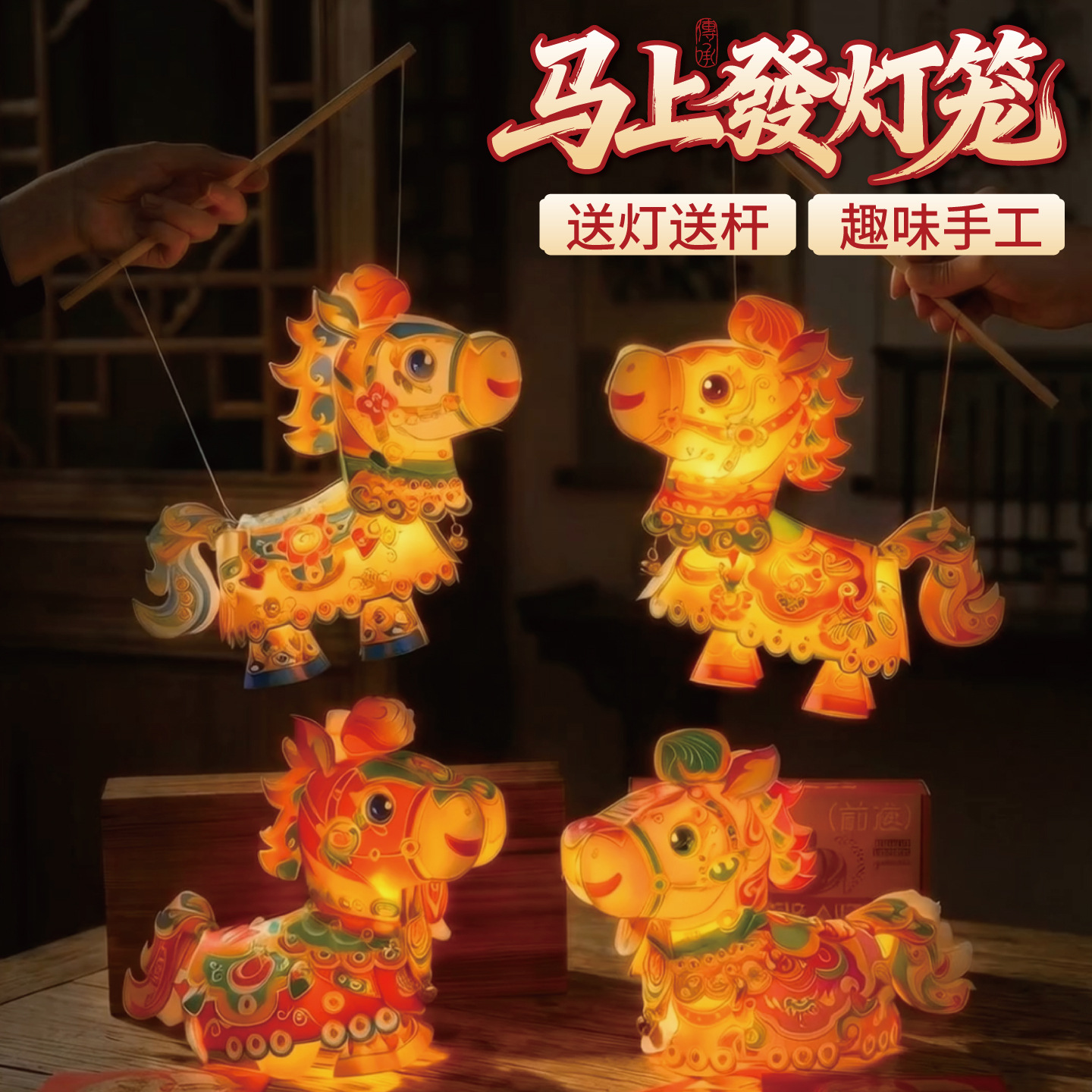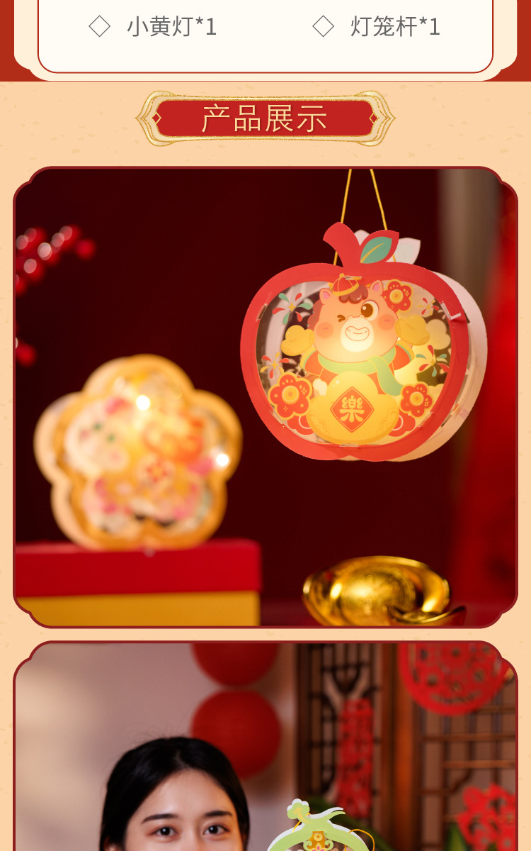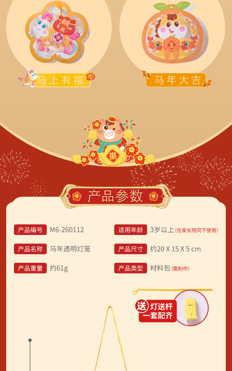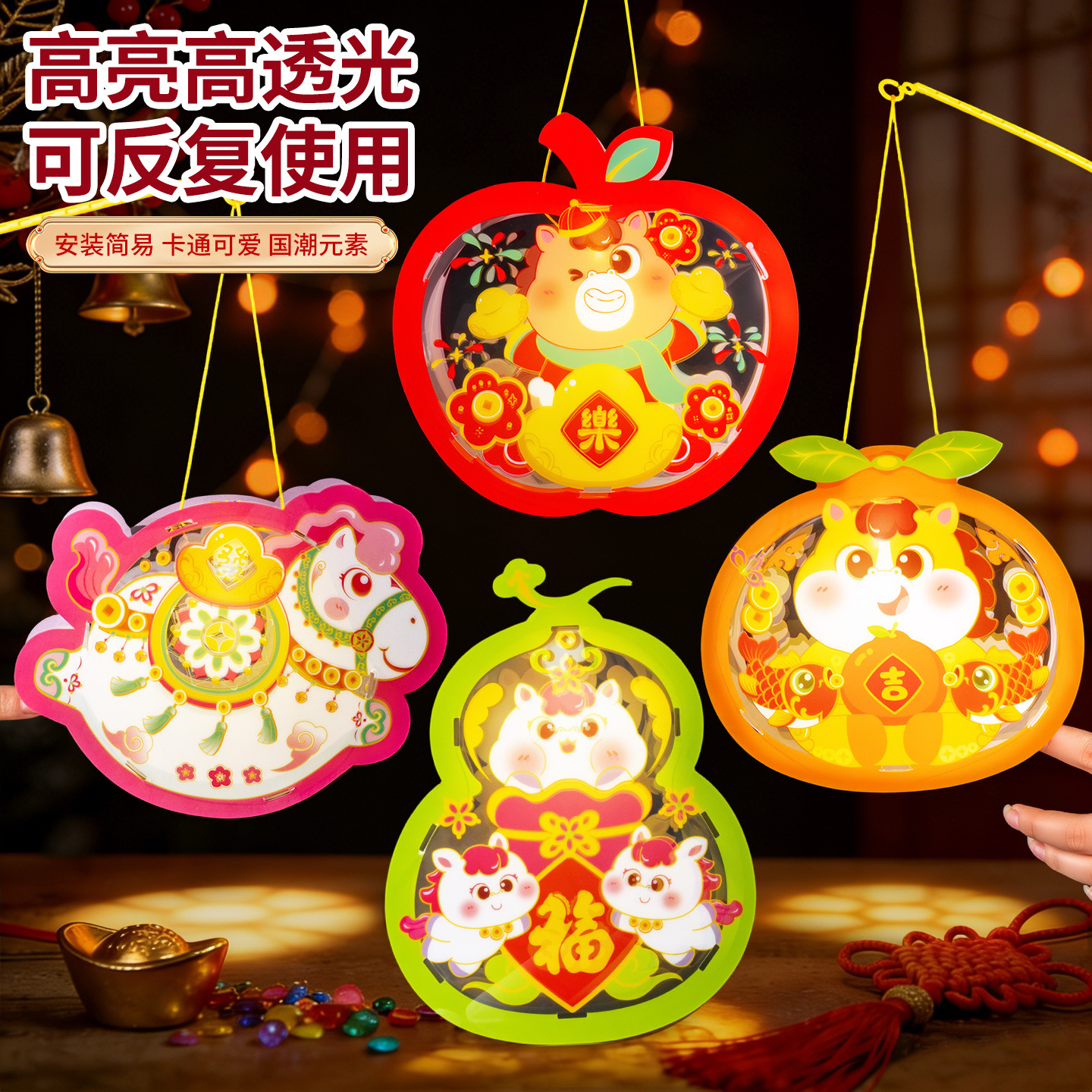 马年透明手提灯笼新春纳福鱼灯儿童手工材料国潮醒狮兔子花灯批发
