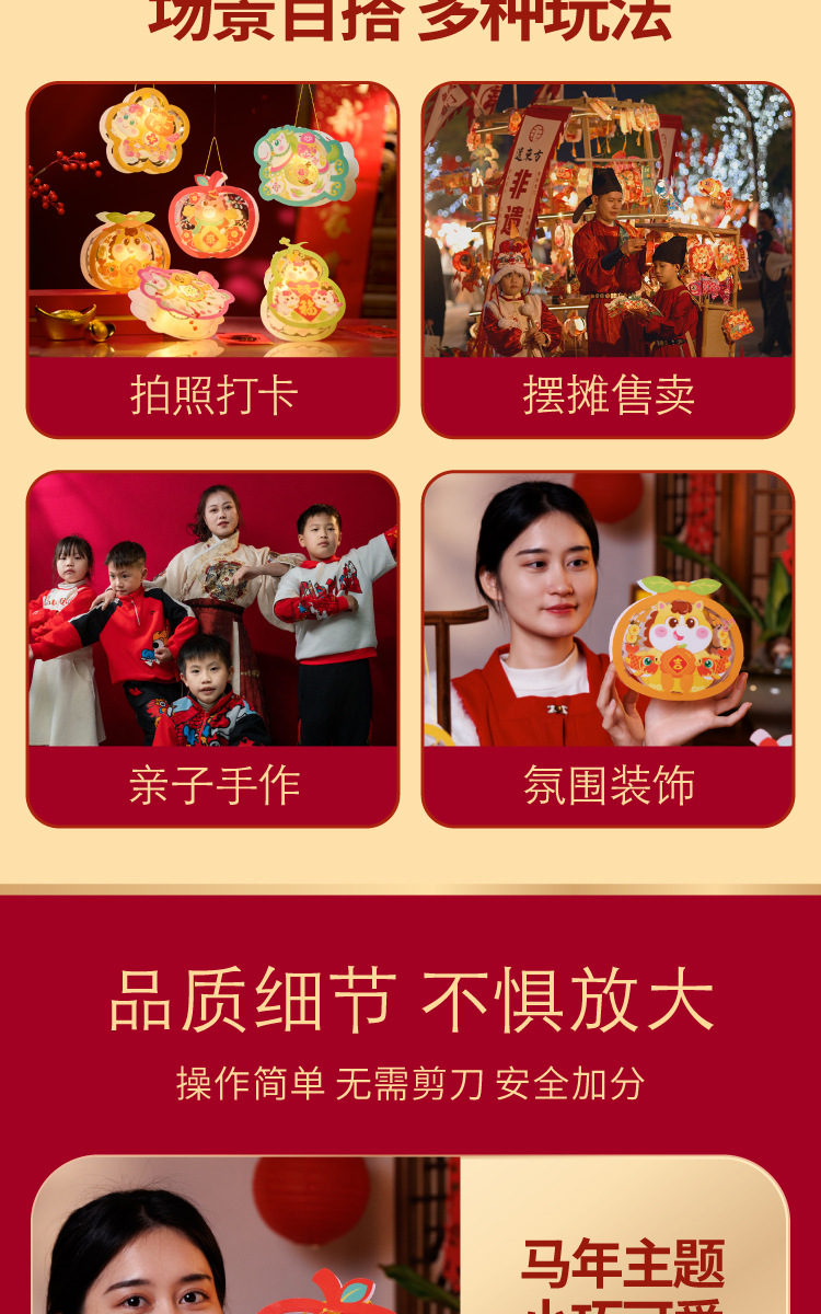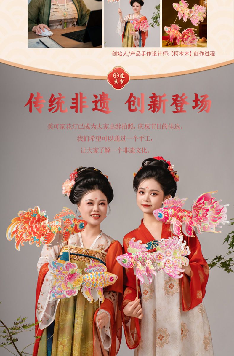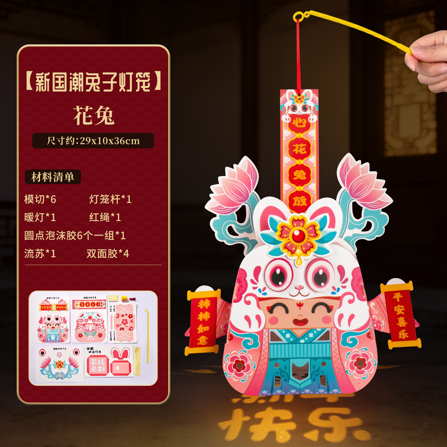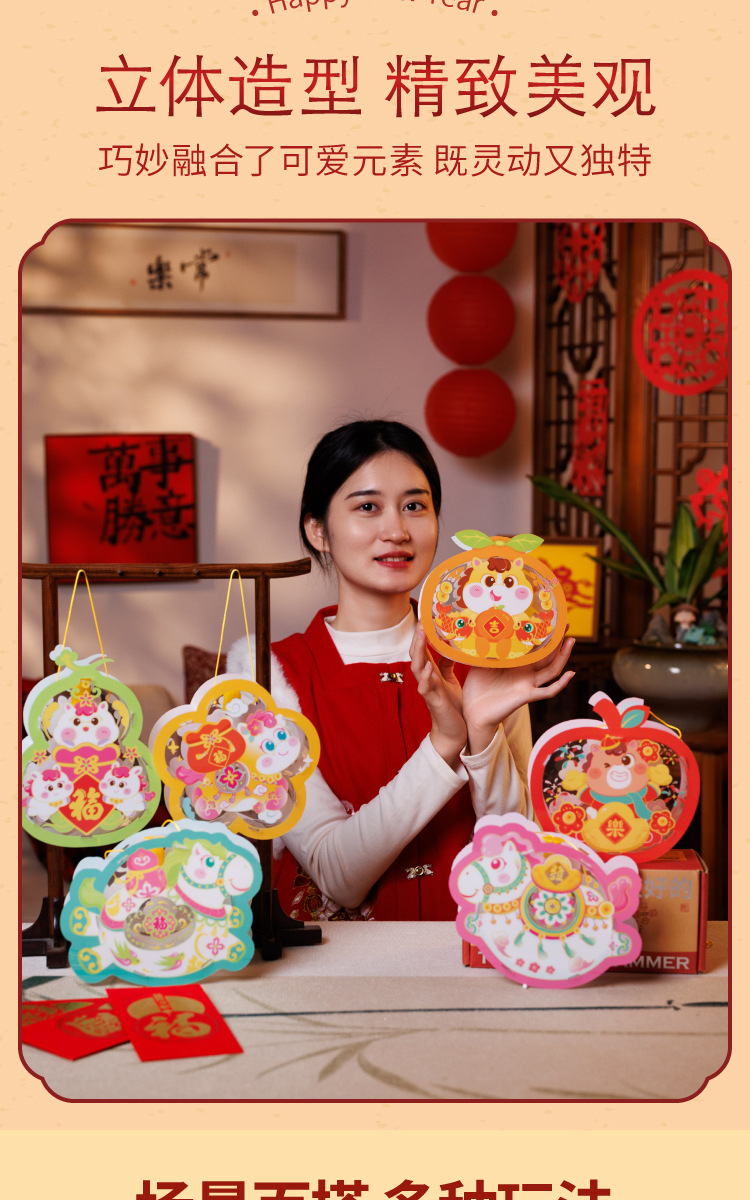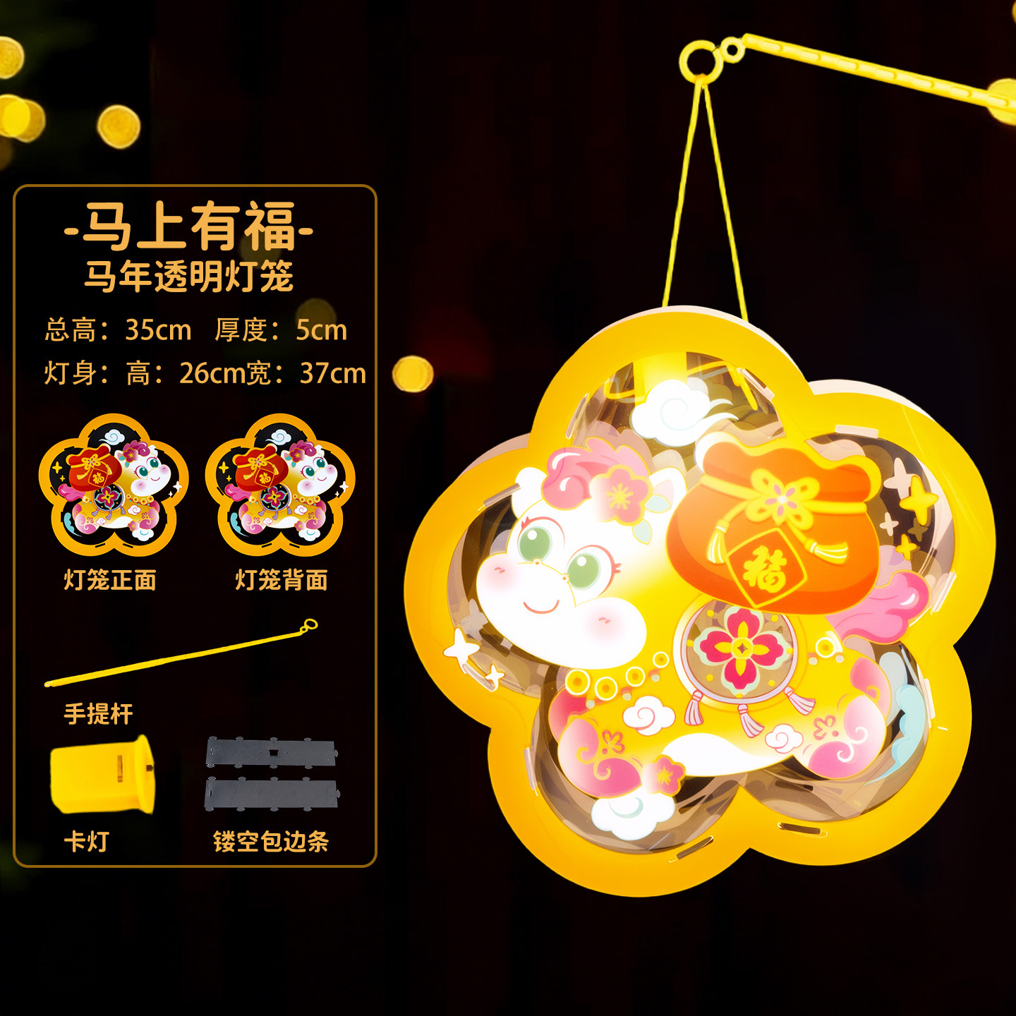 马年透明手提灯笼新春纳福鱼灯儿童手工材料国潮醒狮兔子花灯批发