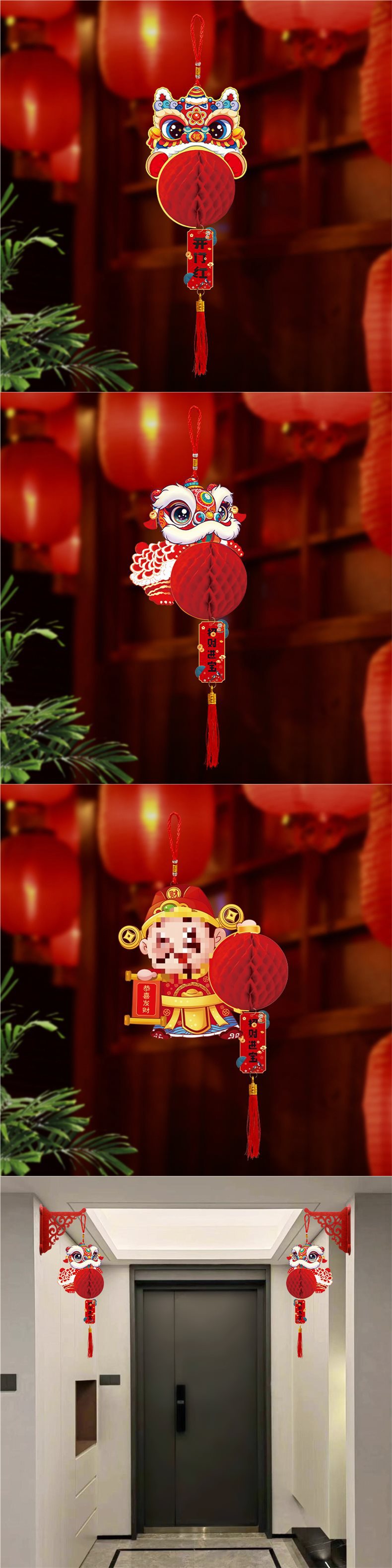 2026新年醒狮小挂饰灯笼吊饰春节开门红商场门店马年场景布置装饰