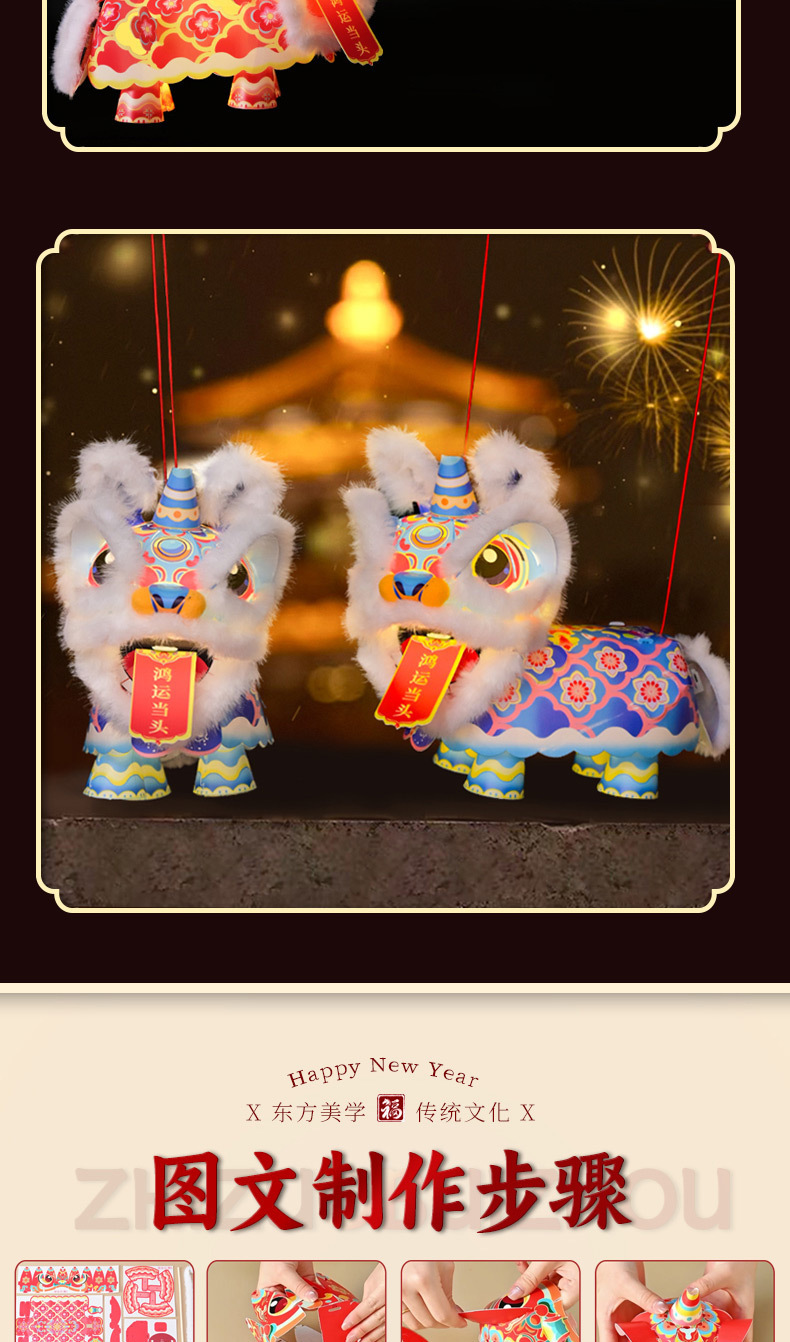 2026新年马年醒狮灯笼发光儿童手工diy材料过年手提花灯春节礼品