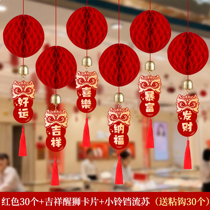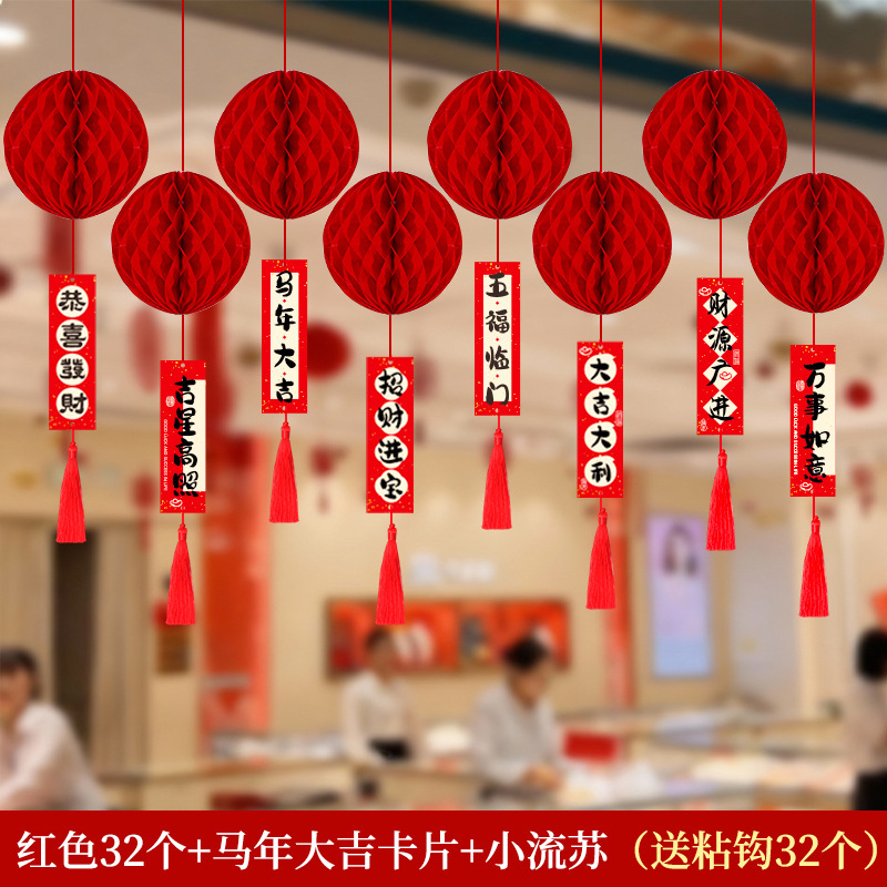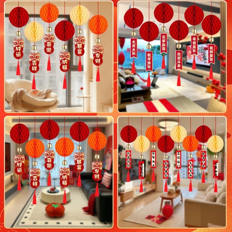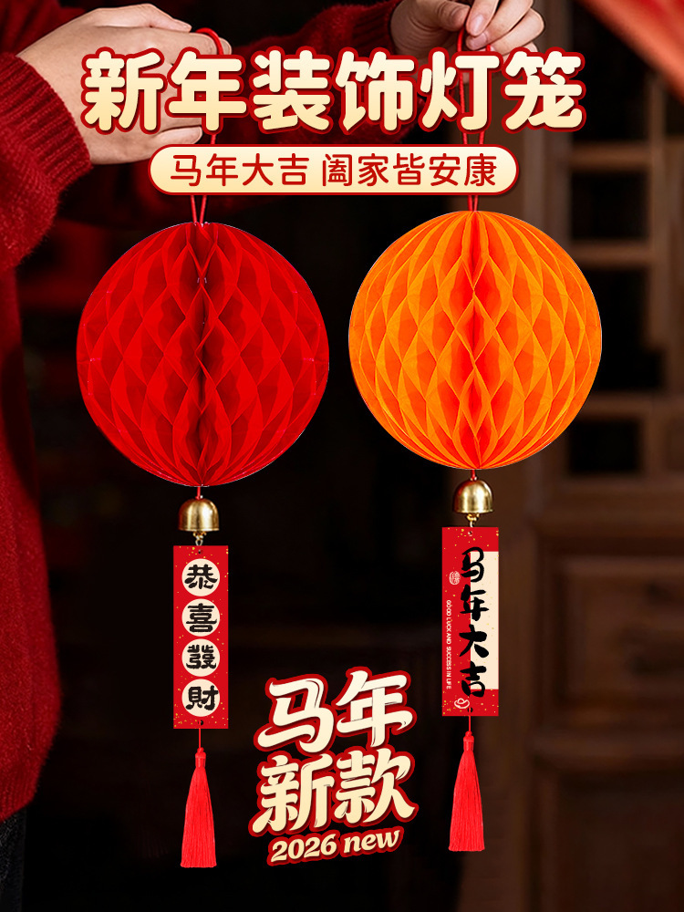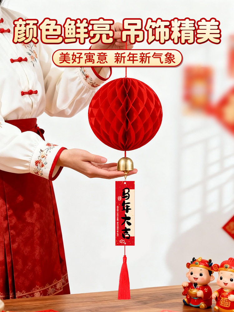 元旦灯笼挂饰2026马年教室装饰幼儿园班级迎新布置红色蜂窝球挂件