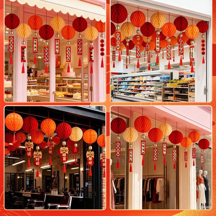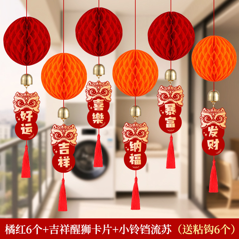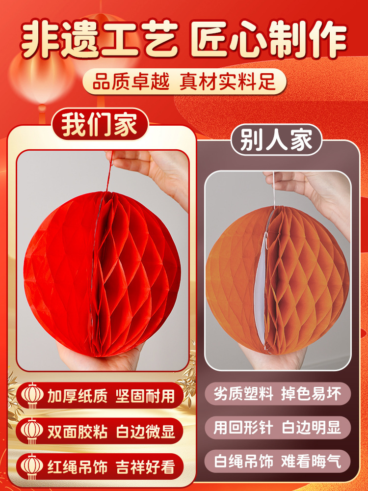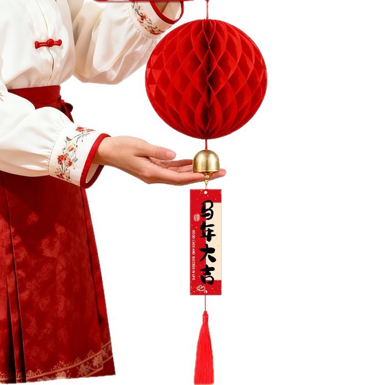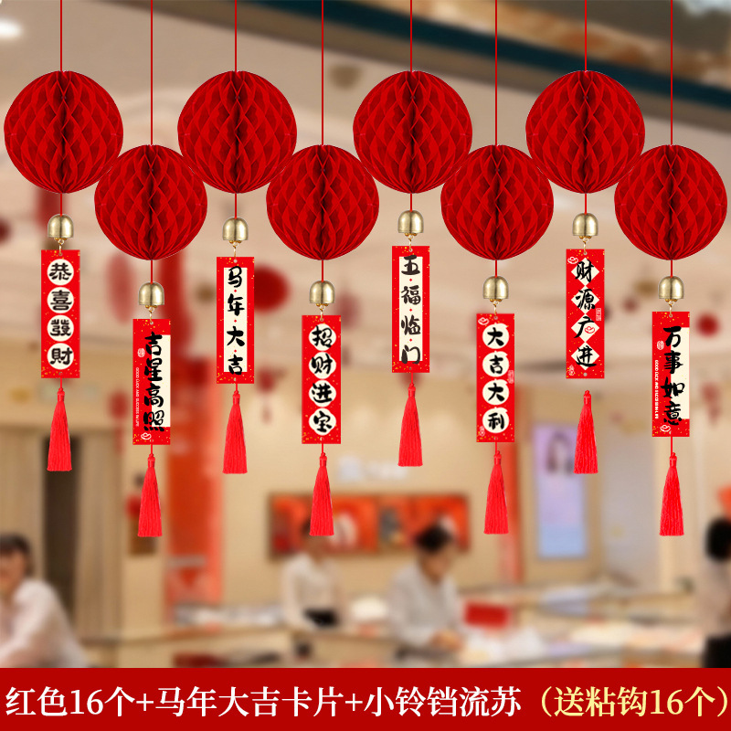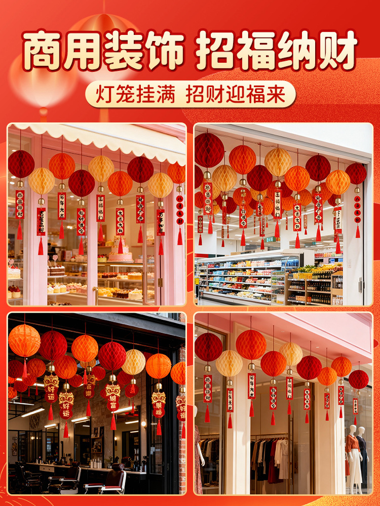 元旦灯笼挂饰2026马年教室装饰幼儿园班级迎新布置红色蜂窝球挂件